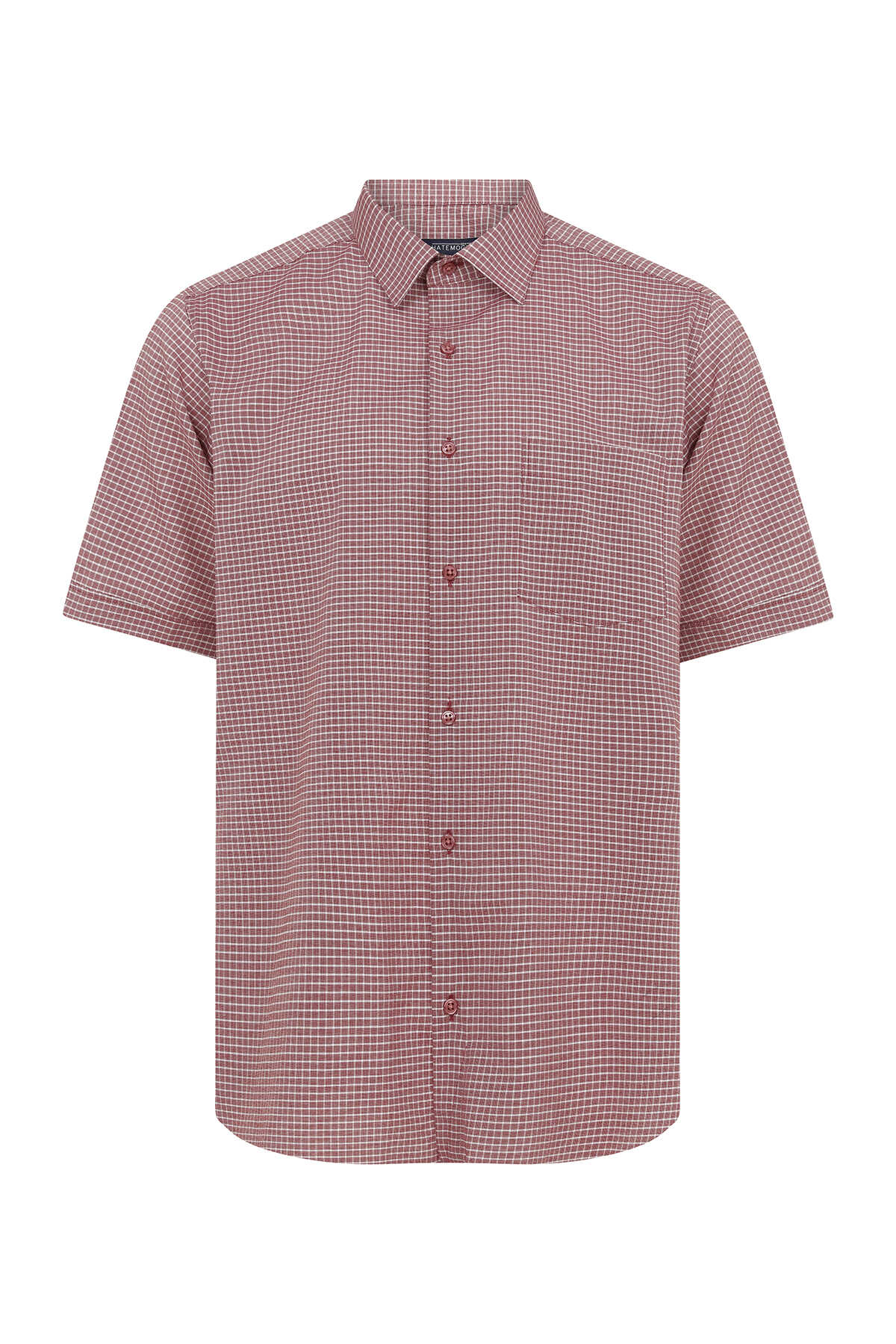 Bordo Kareli Kısa Kol Klasik Gömlek
