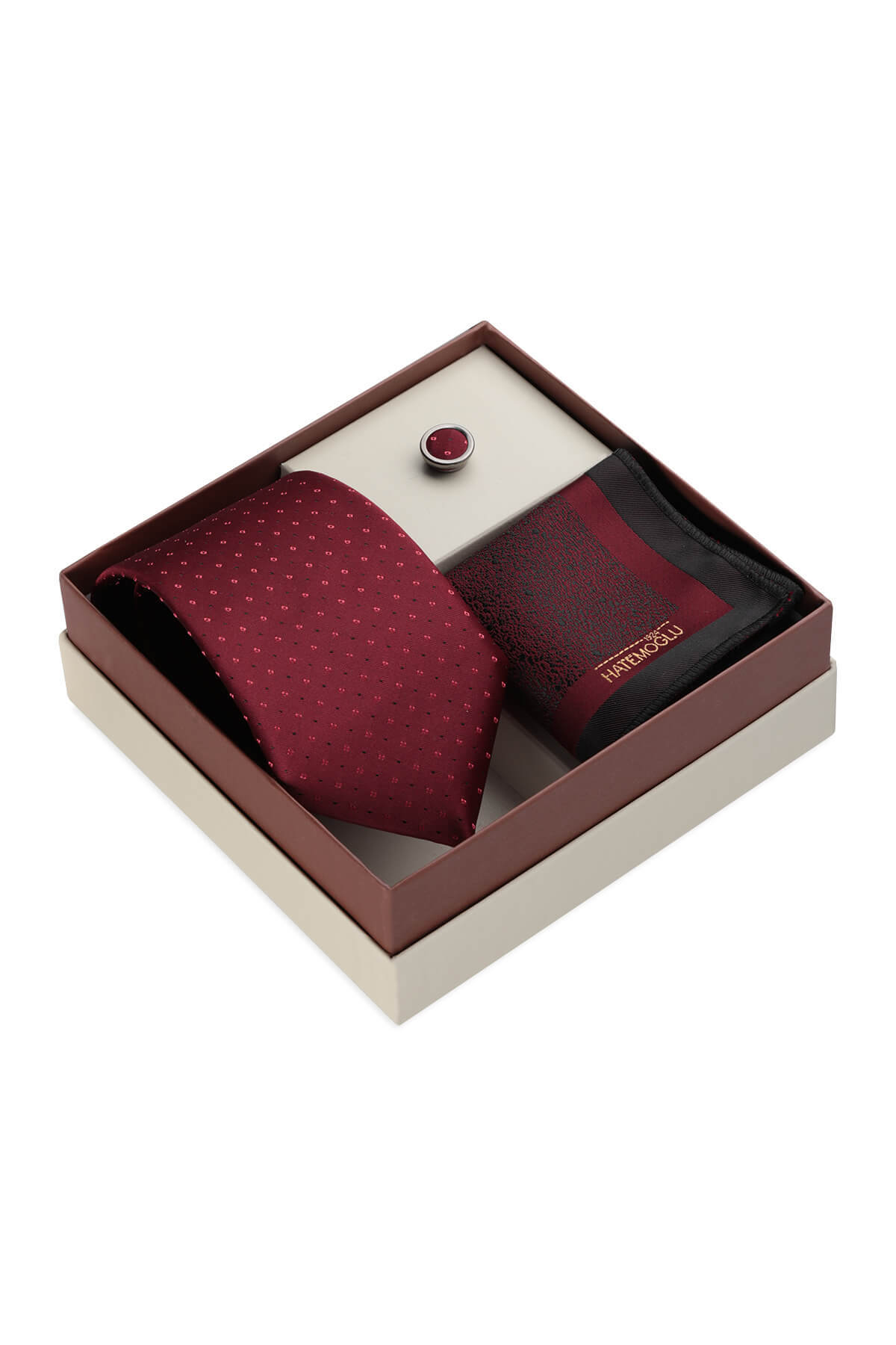 Bordo Kravat Mendil ve Yaka Rozeti 3'lü Set