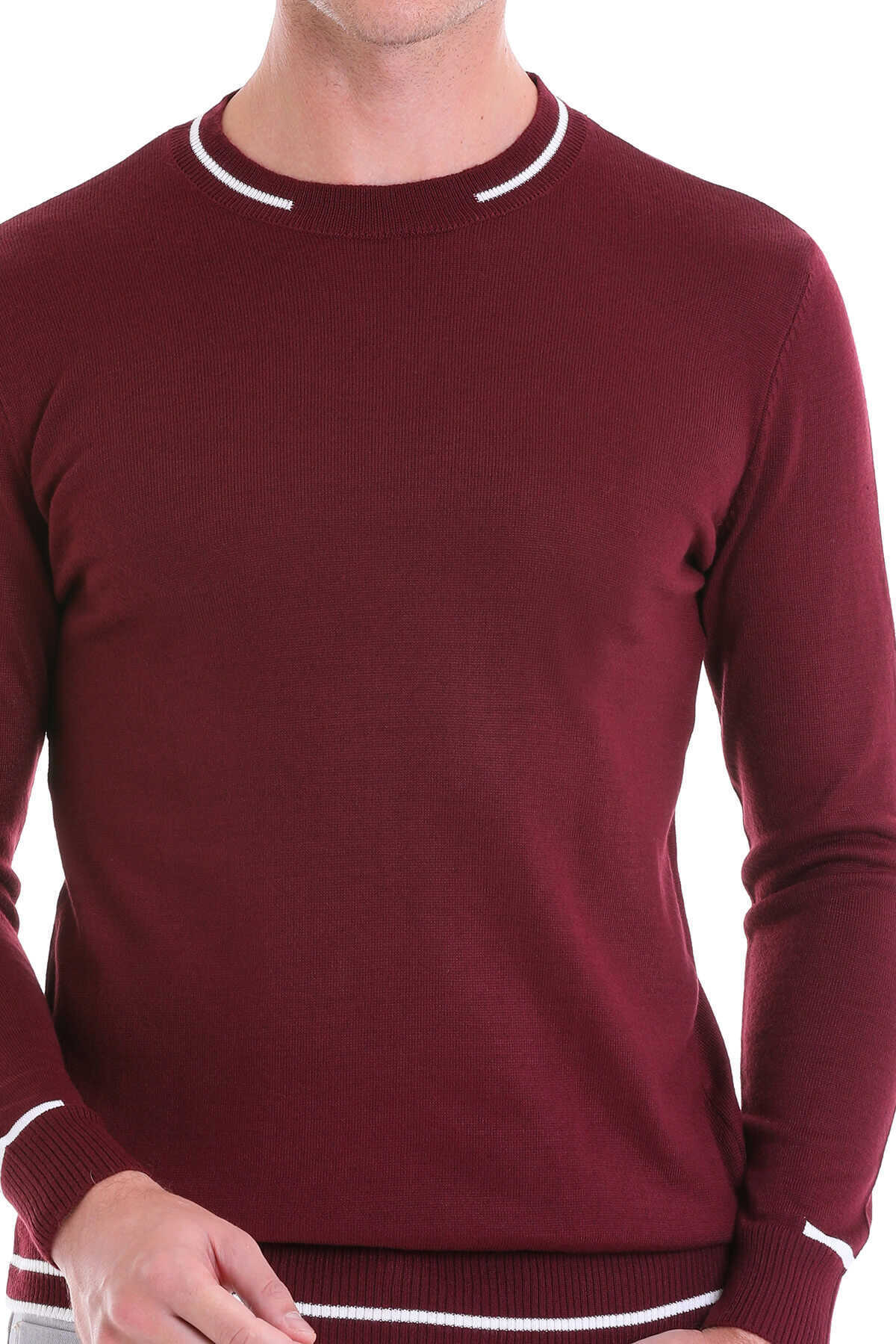 Bordo Comfort Fit Desenli Bisiklet Yaka Yünlü Kazak - 6