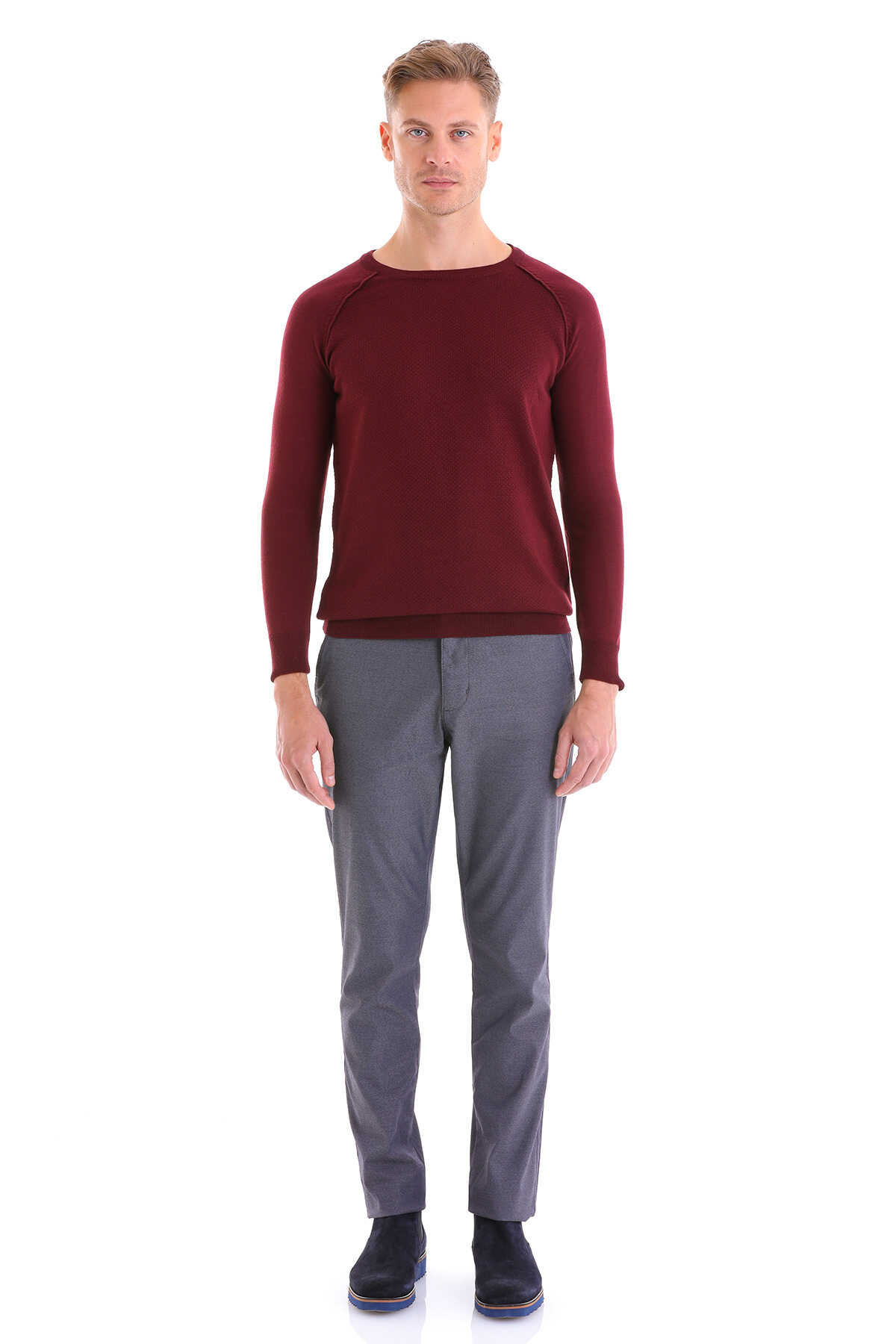 Bordo Regular Fit Desenli Bisiklet Yaka Yünlü Triko Kazak - 12