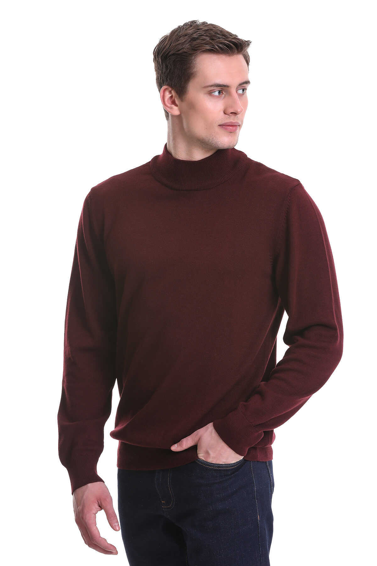 Bordo Regular Fit Desenli Pamuklu Yarım Balıkçı Yaka Triko Kazak