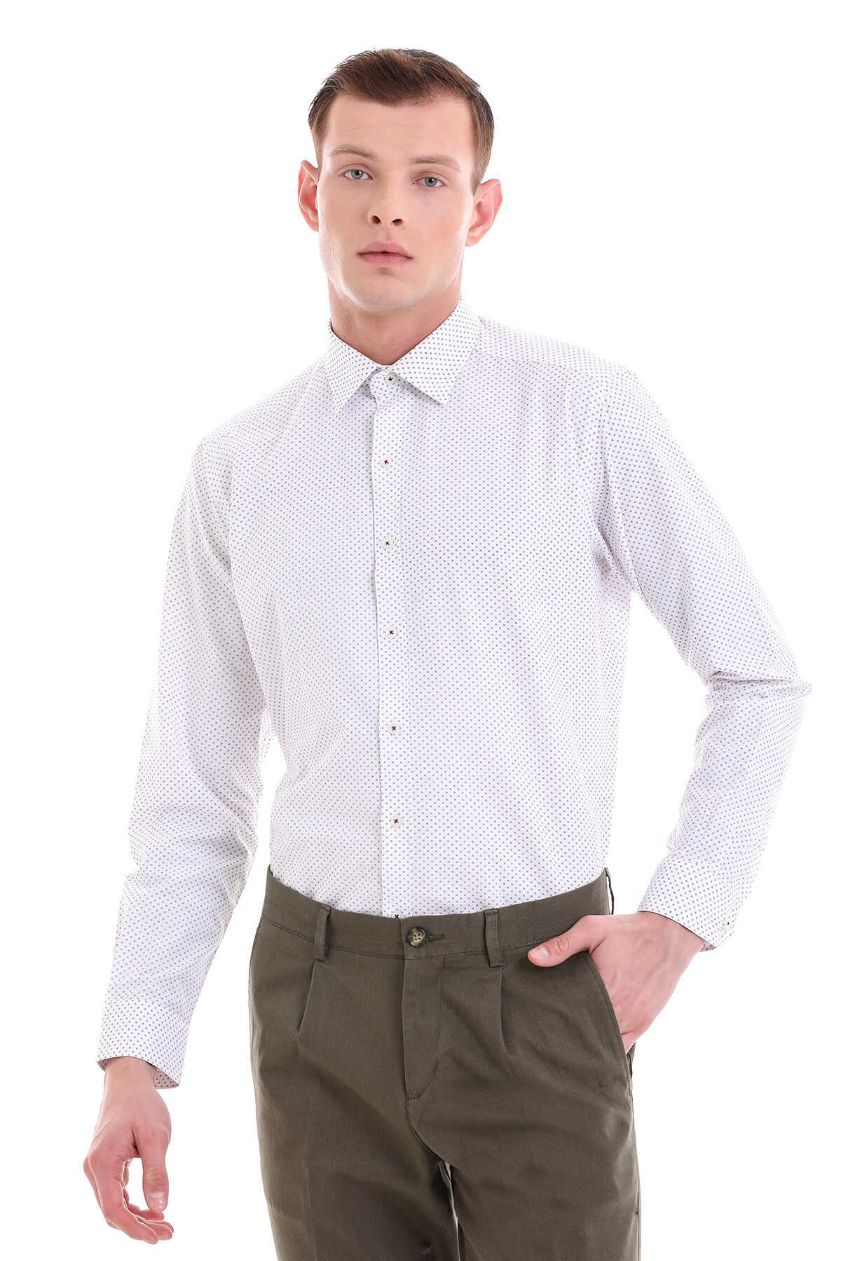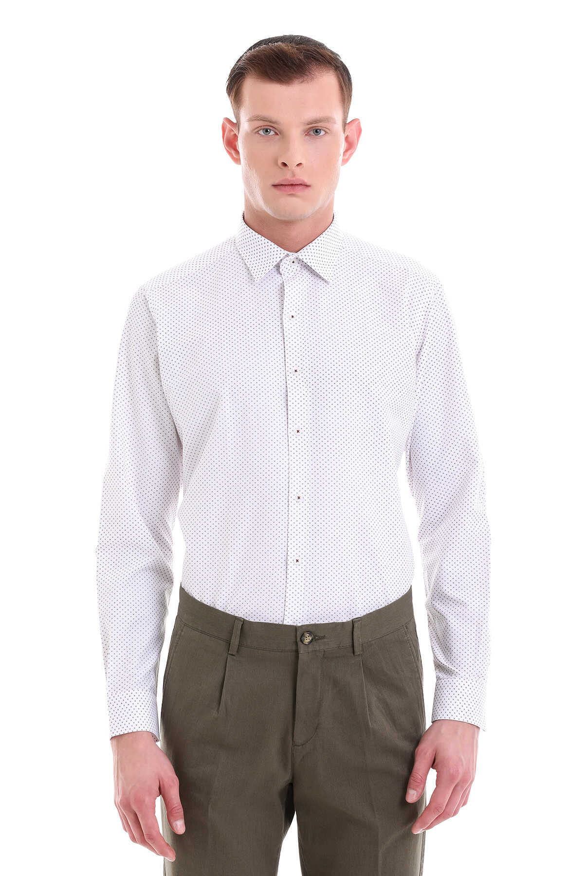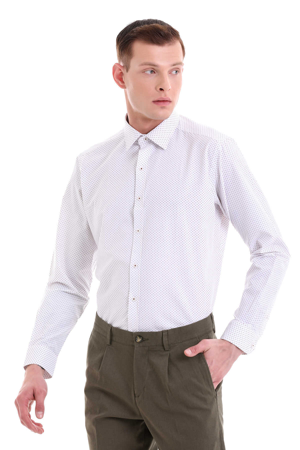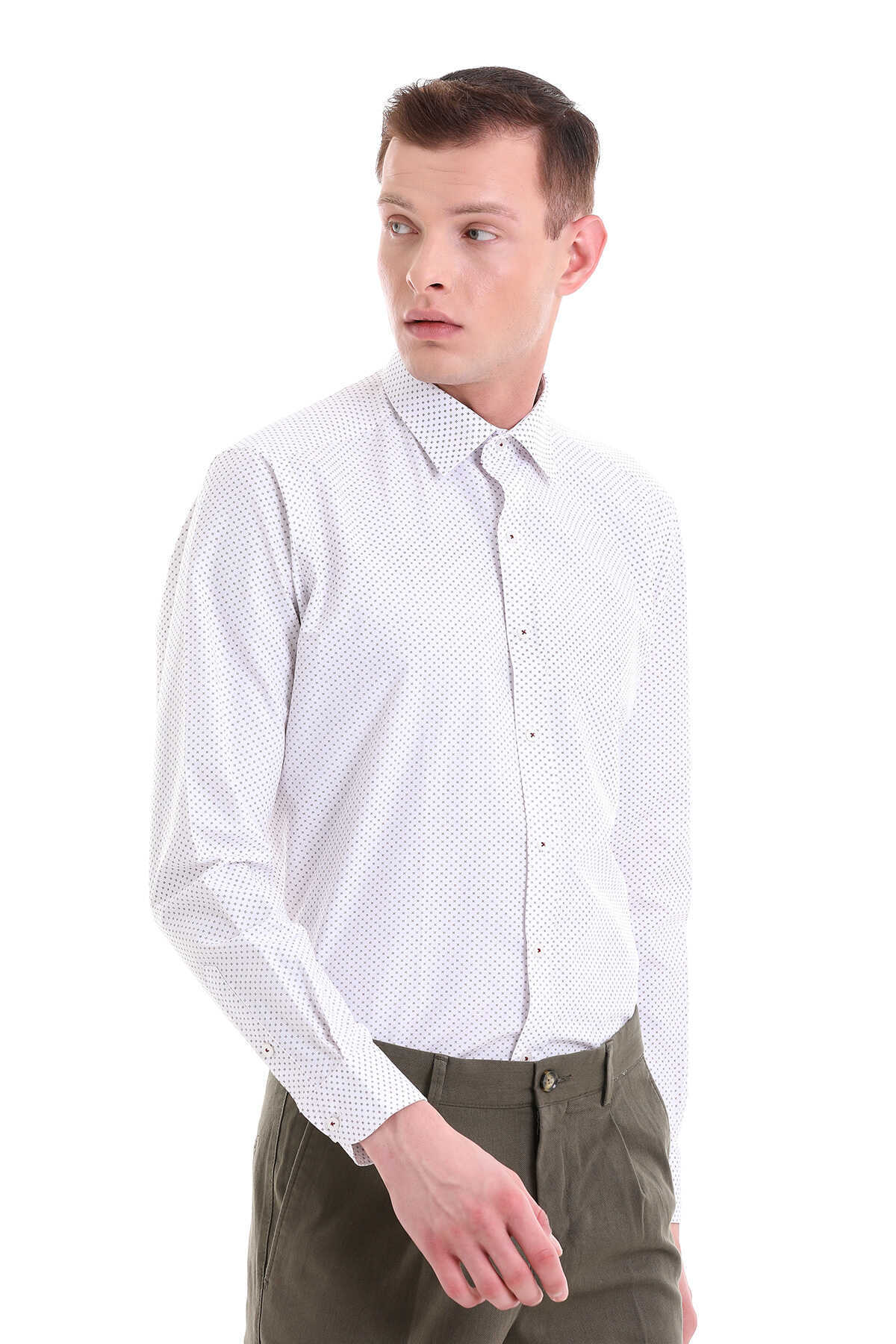 Bordo Slim Fit Baskılı Pamuklu Slim Yaka Uzun Kollu Klasik Gömlek - 7