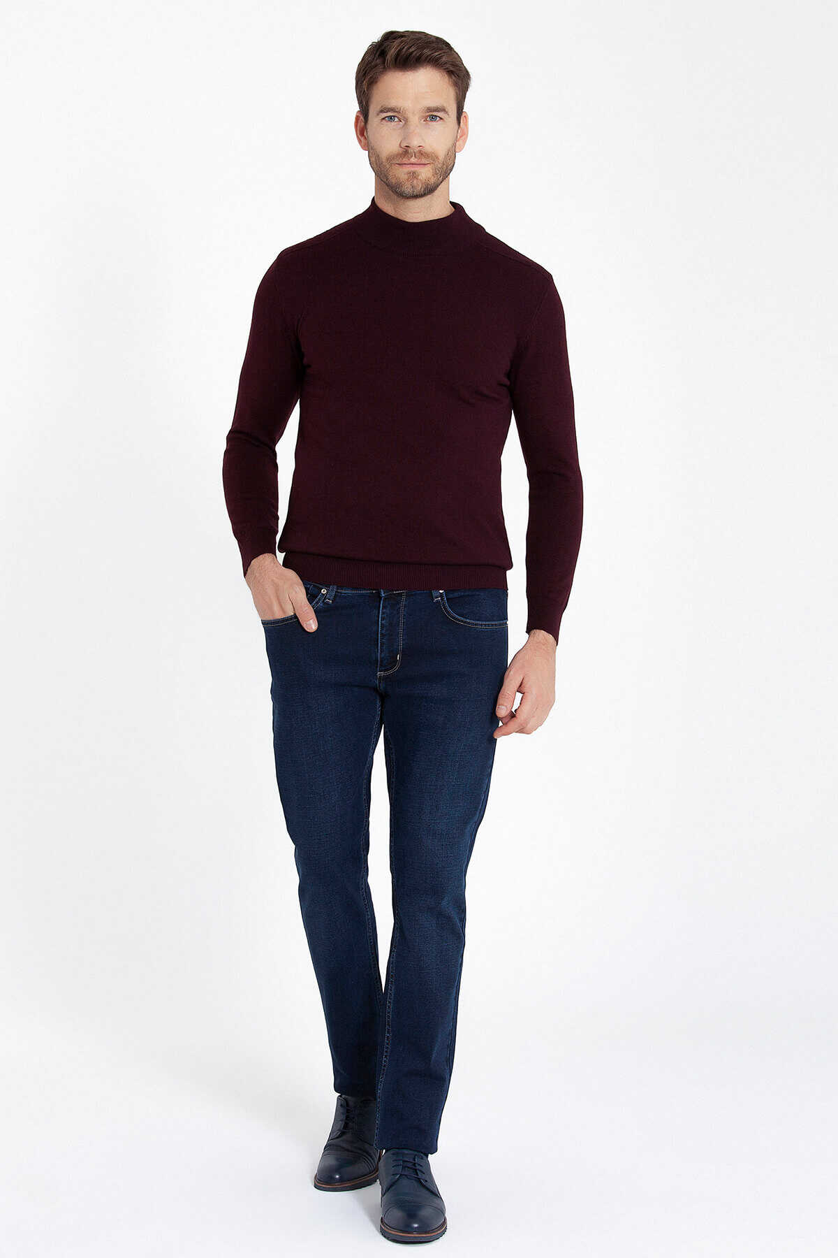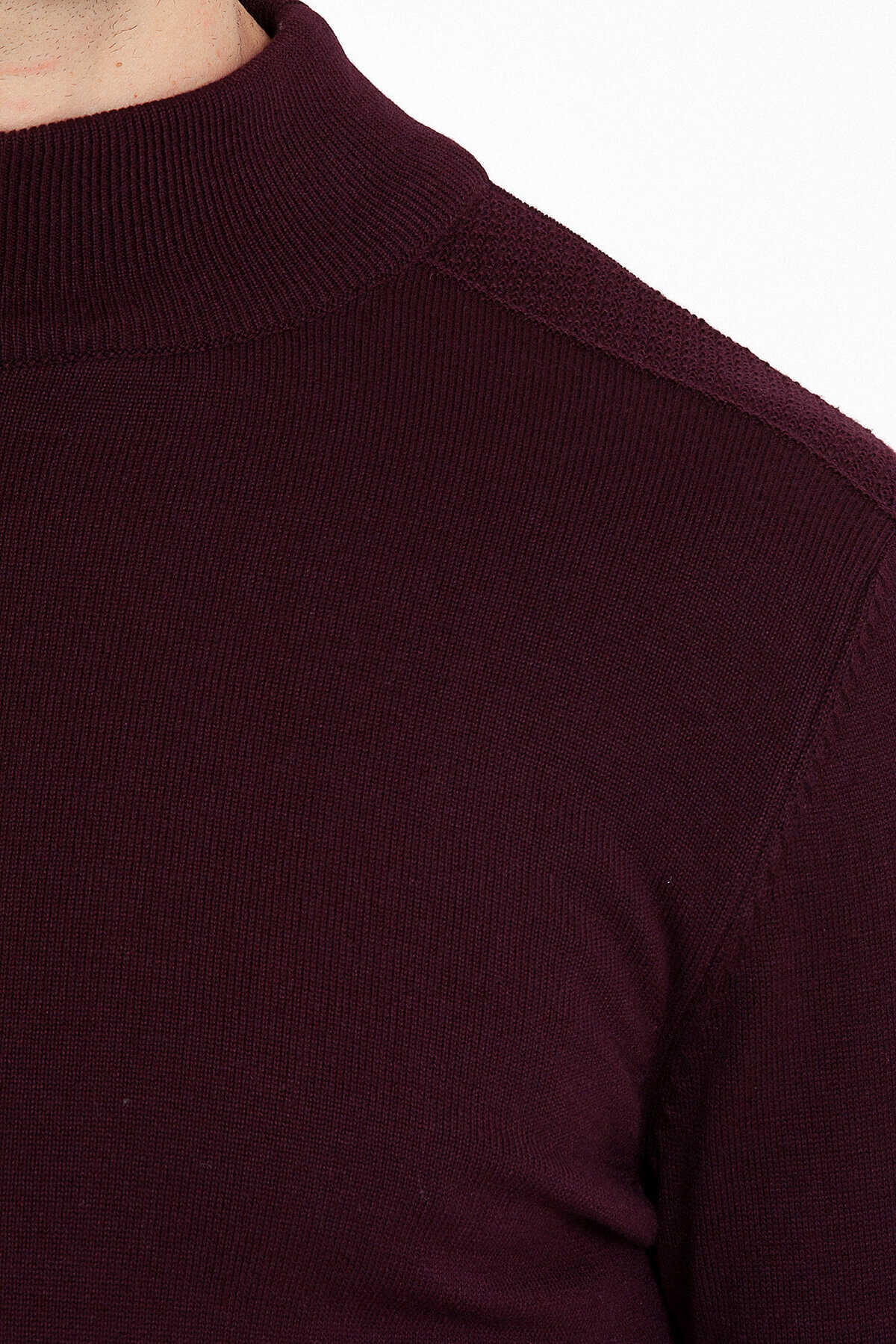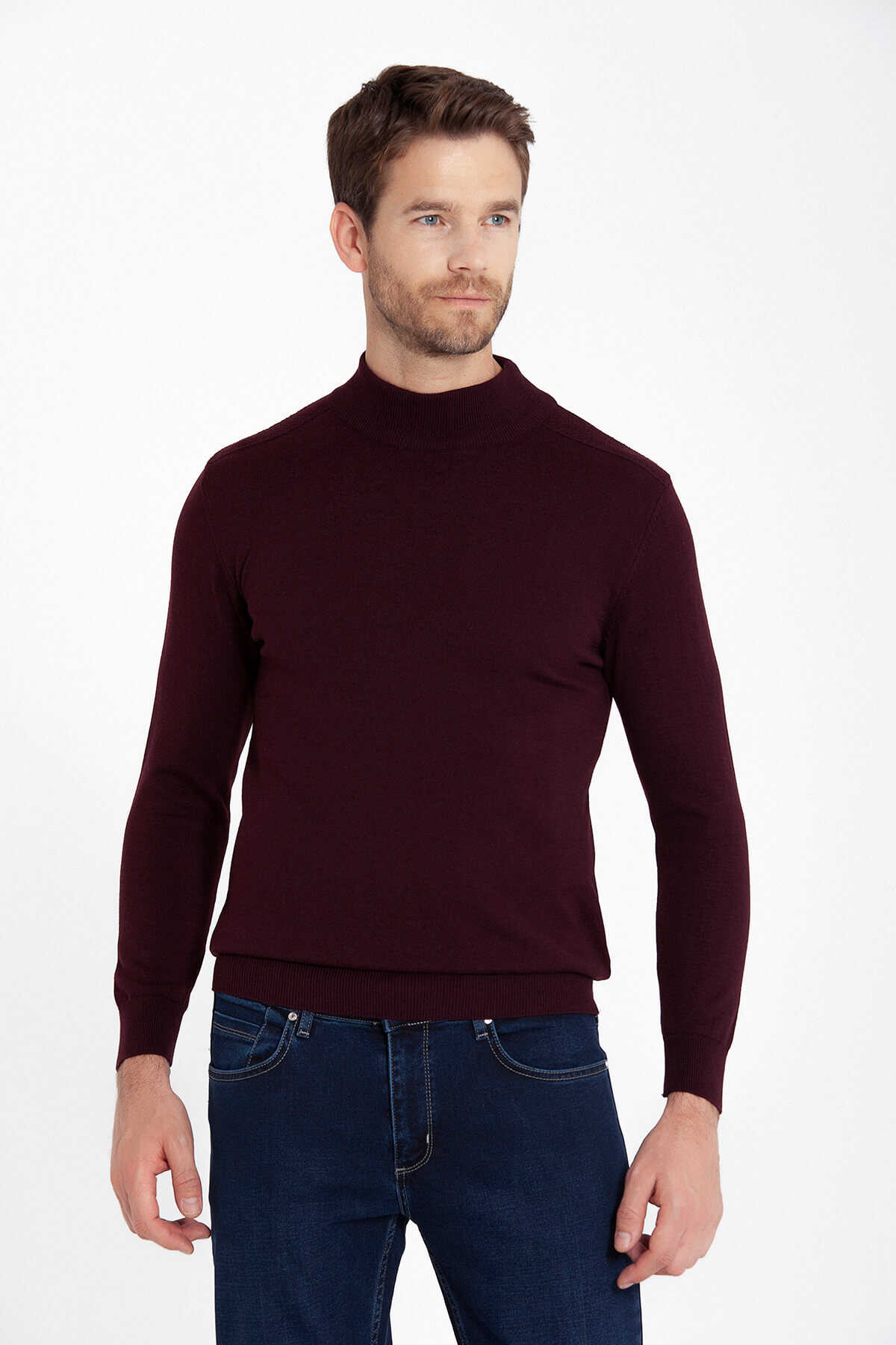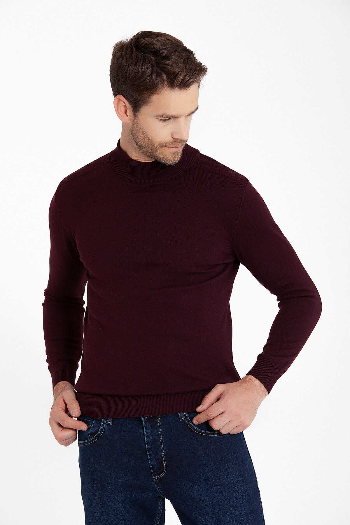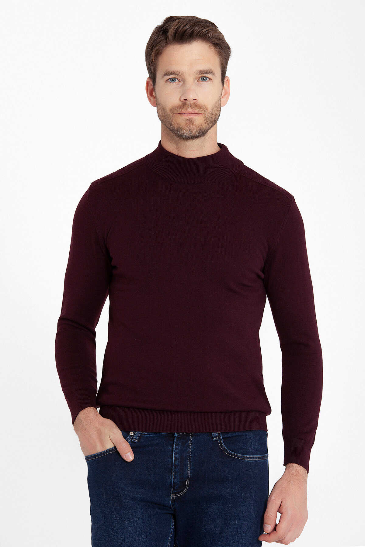 Bordo Regular Fit Yarım Balıkçı Yaka Pamuklu Triko Kazak