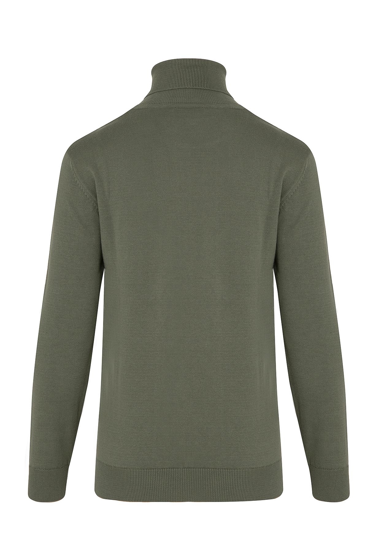 Yeşil Regular Fit Desenli Pamuklu Balıkçı Yaka Triko Kazak