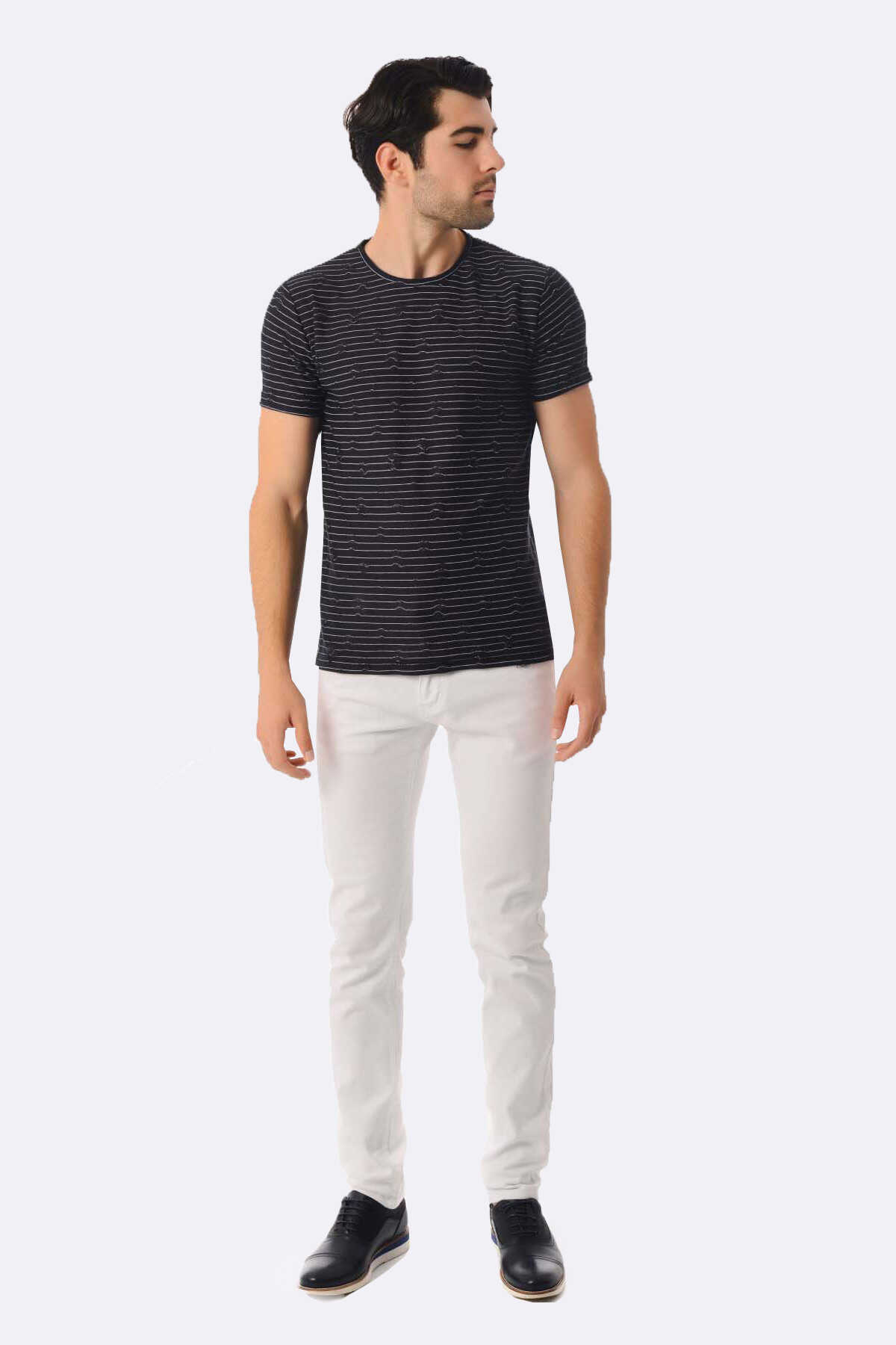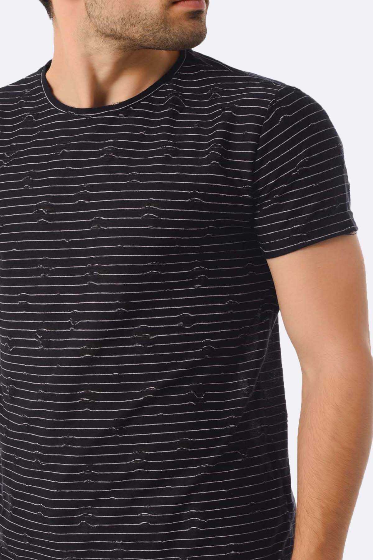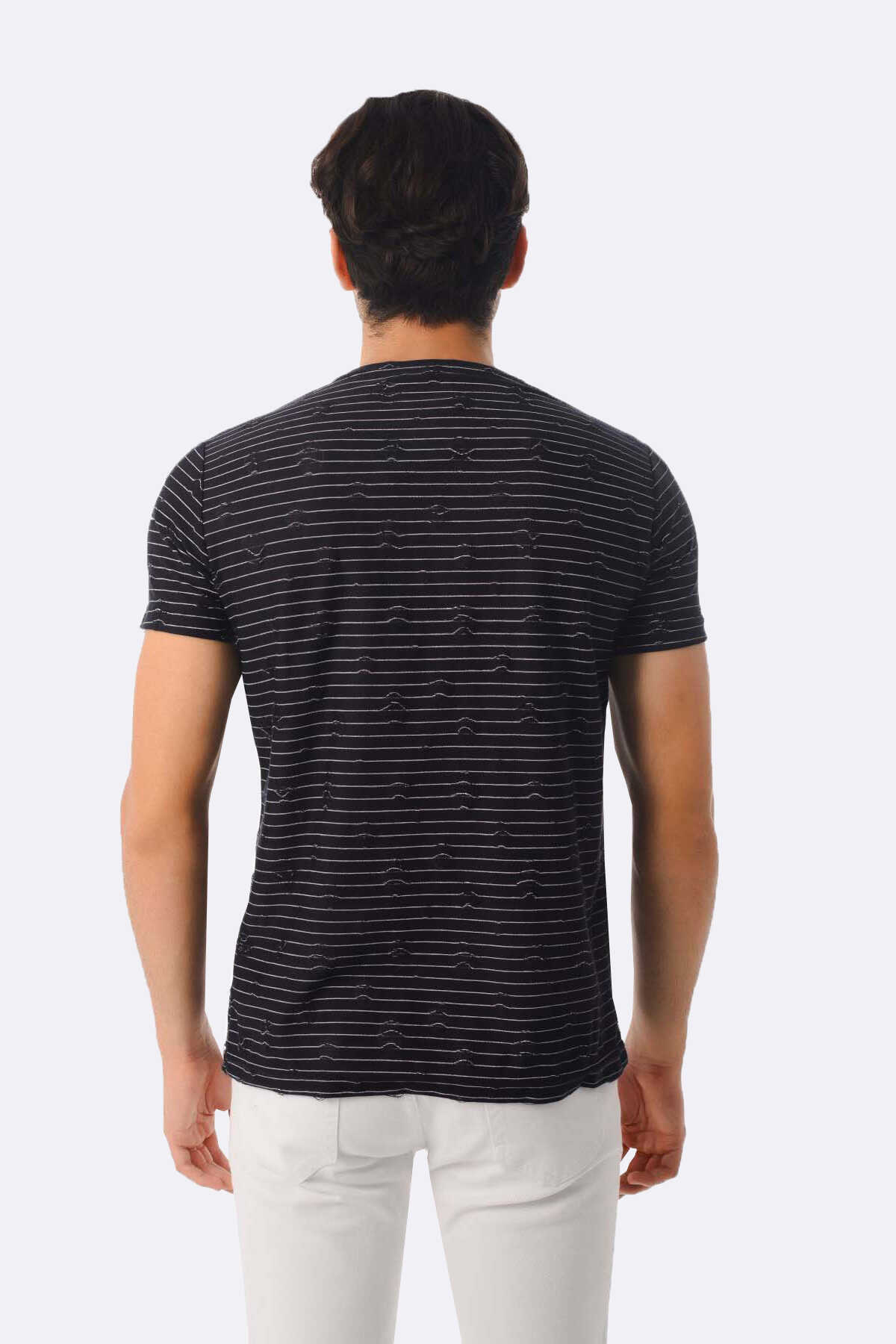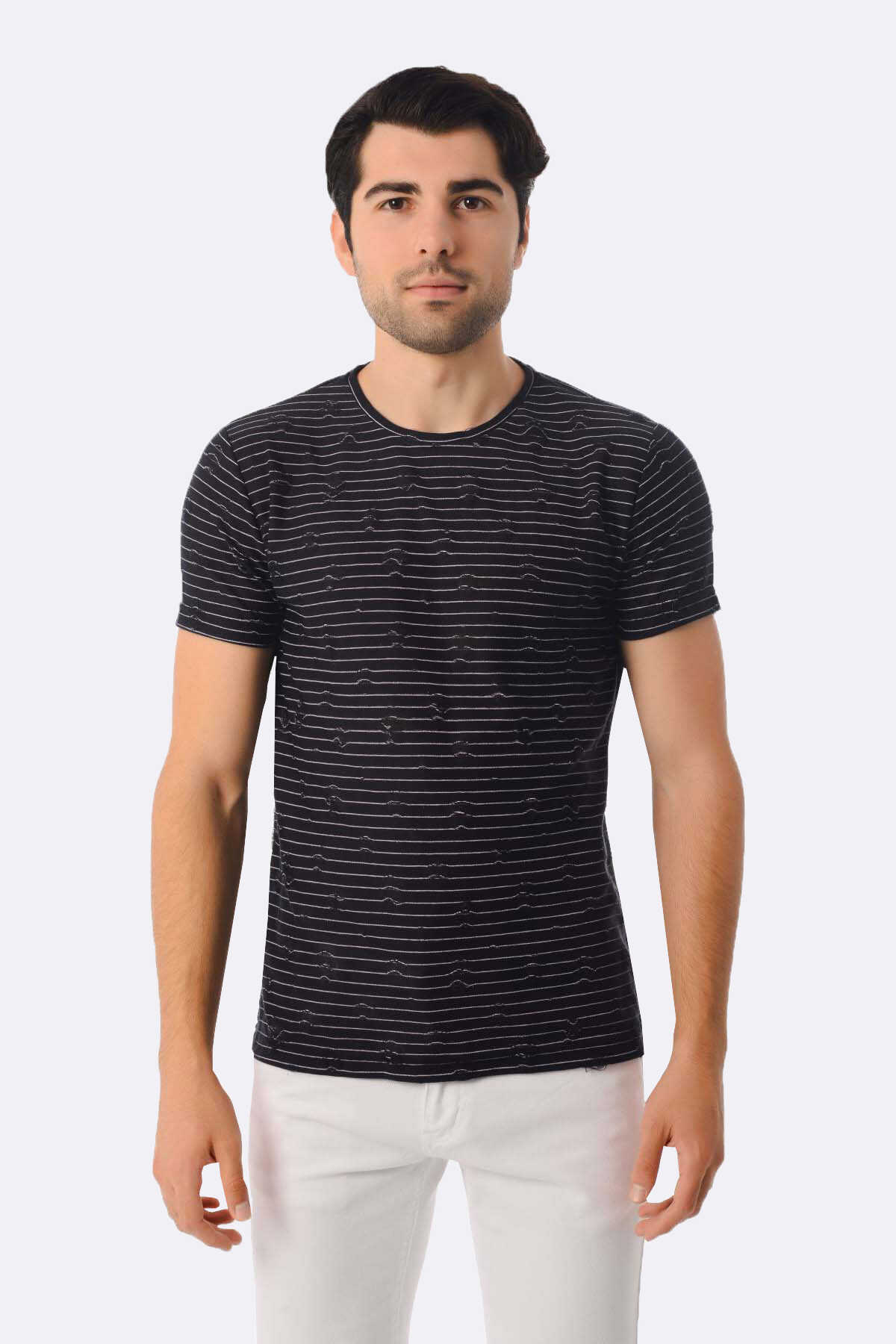 Lacivert Çizgili Bisiklet Yaka Tişört