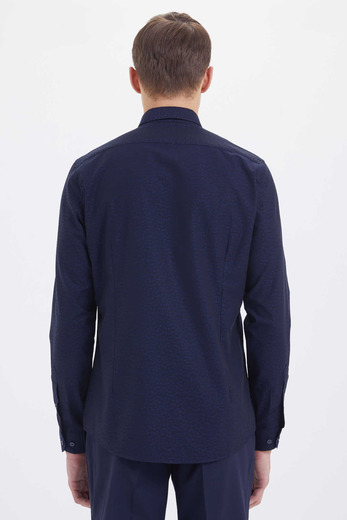 Çizgili Slim Fit Lacivert Gömlek