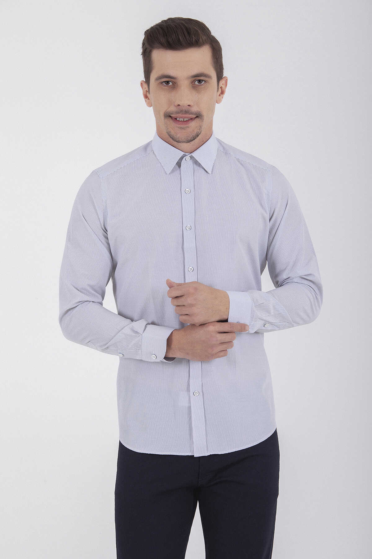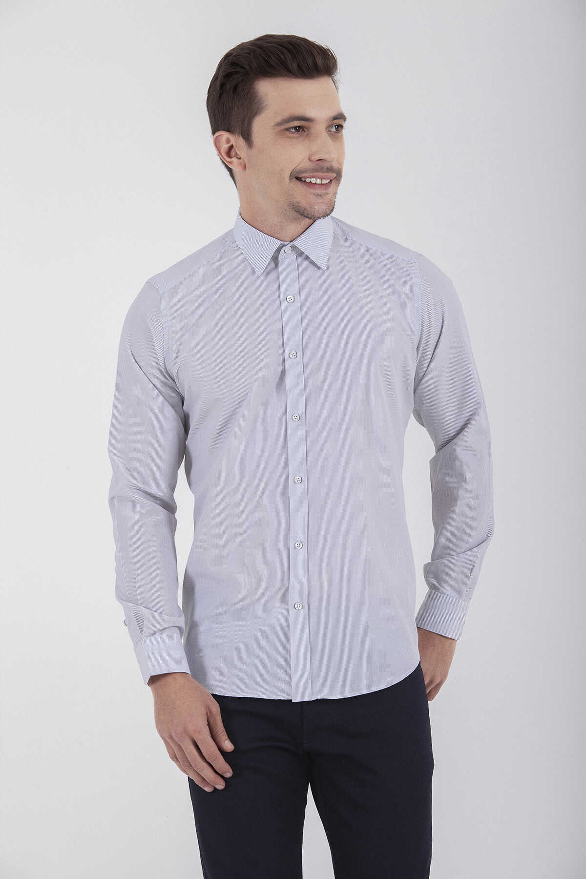 Siyah Çizgili Slim Fit Gömlek
