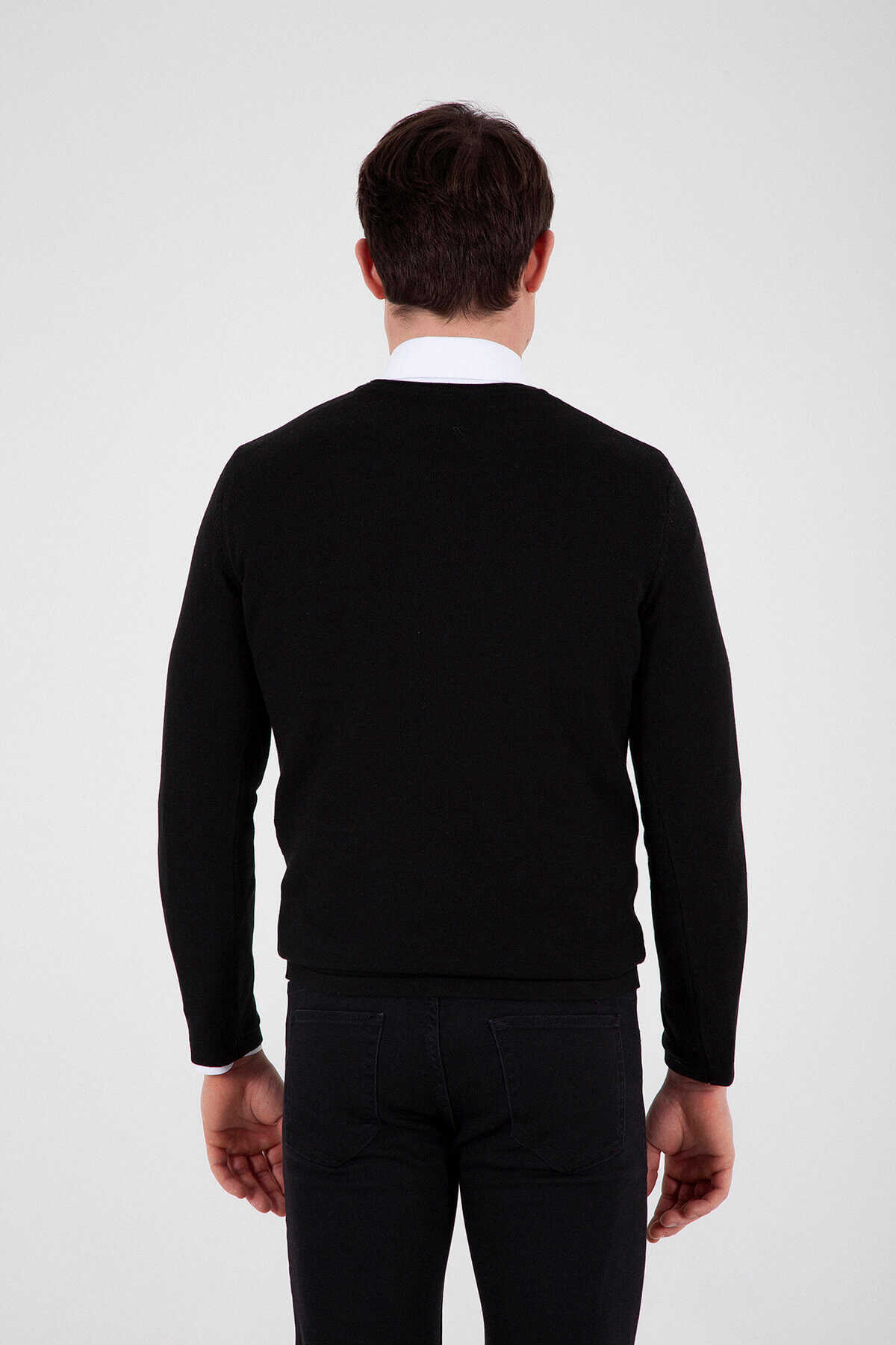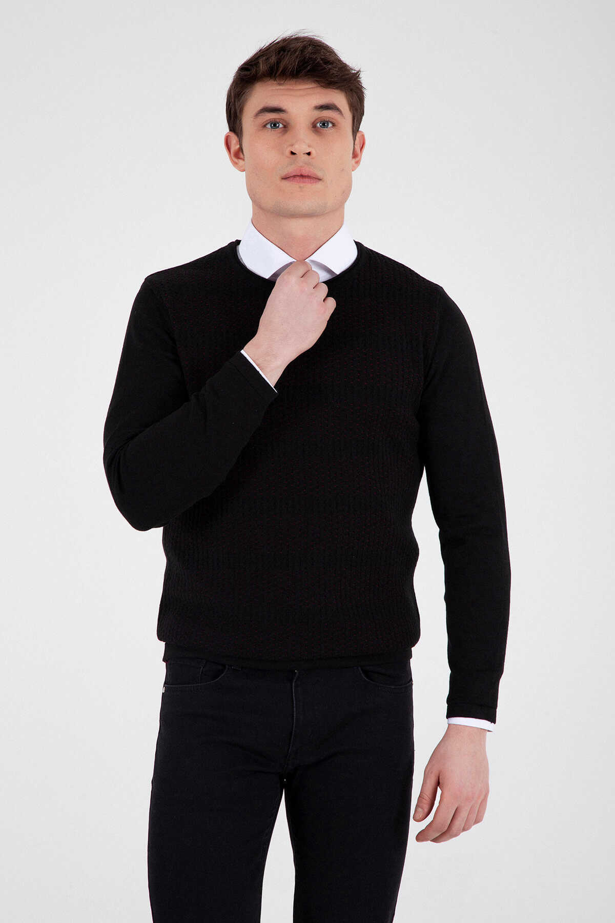 Siyah Desenli Bisiklet Yaka Pamuklu Kazak