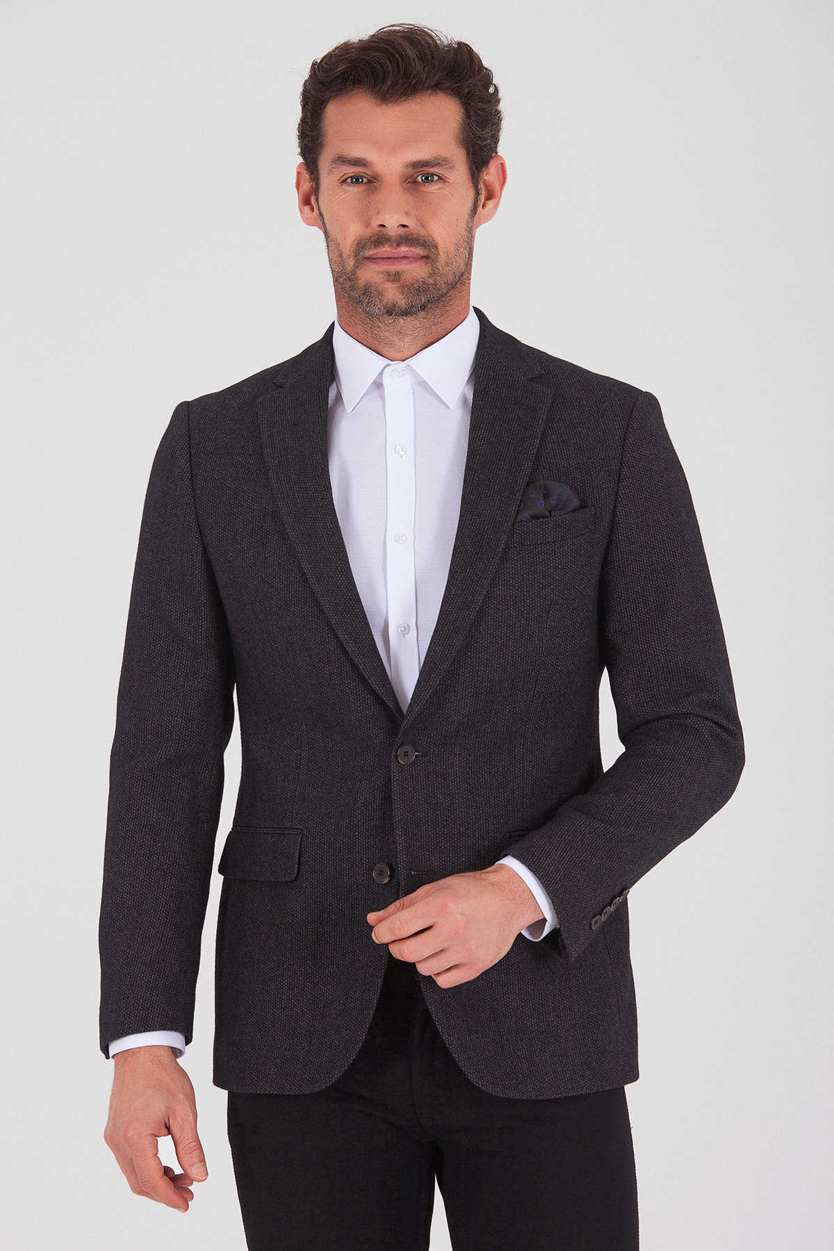 Kahverengi Slim Fit Desenli Ceket