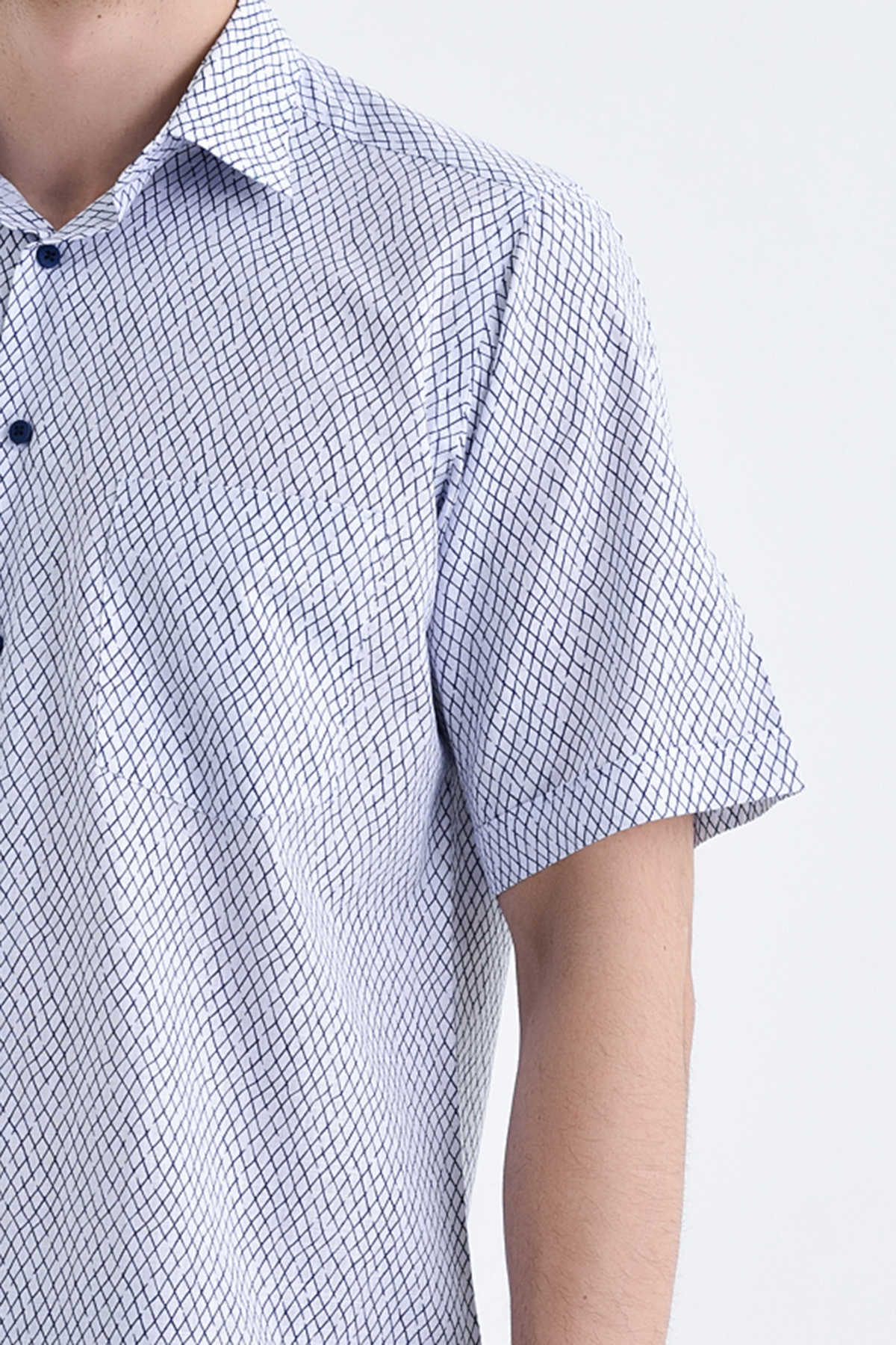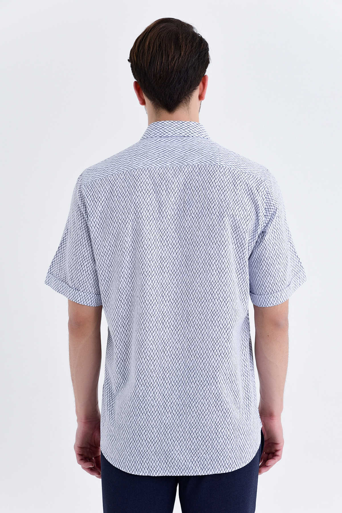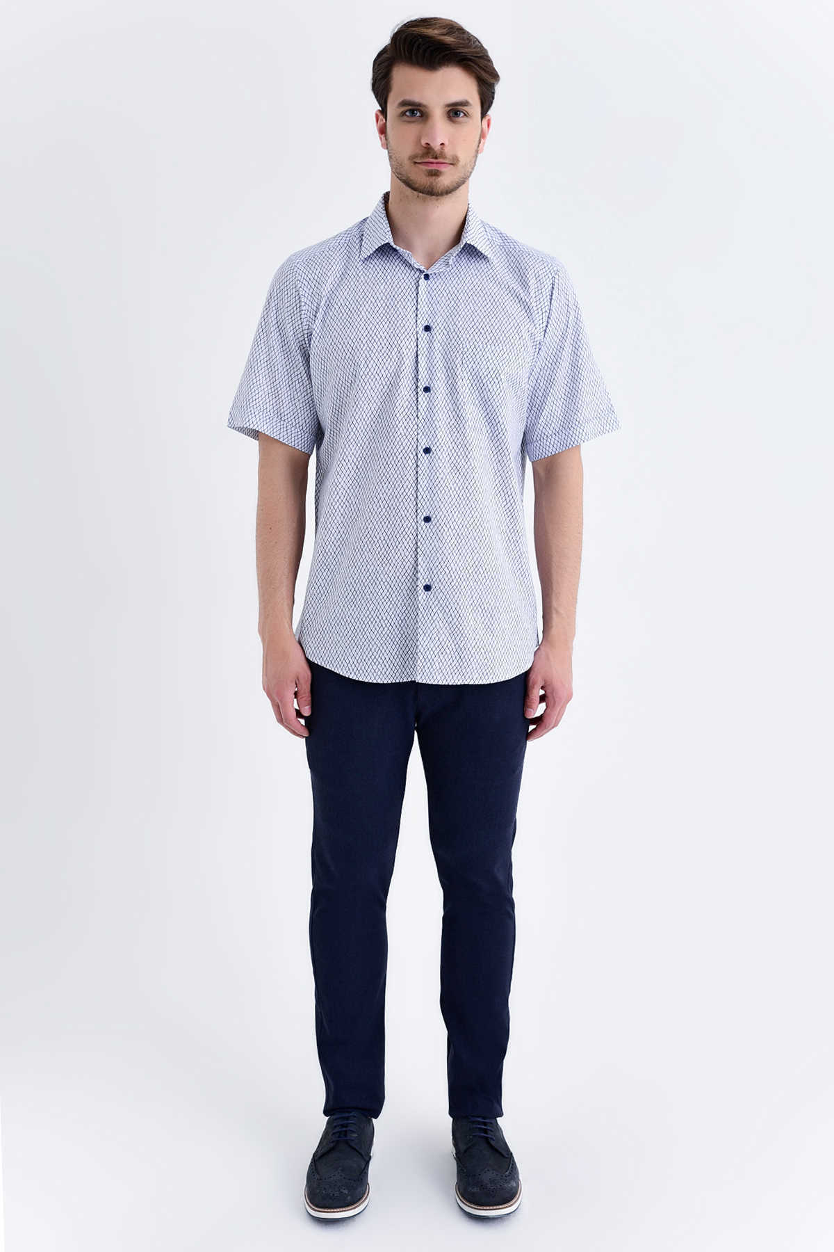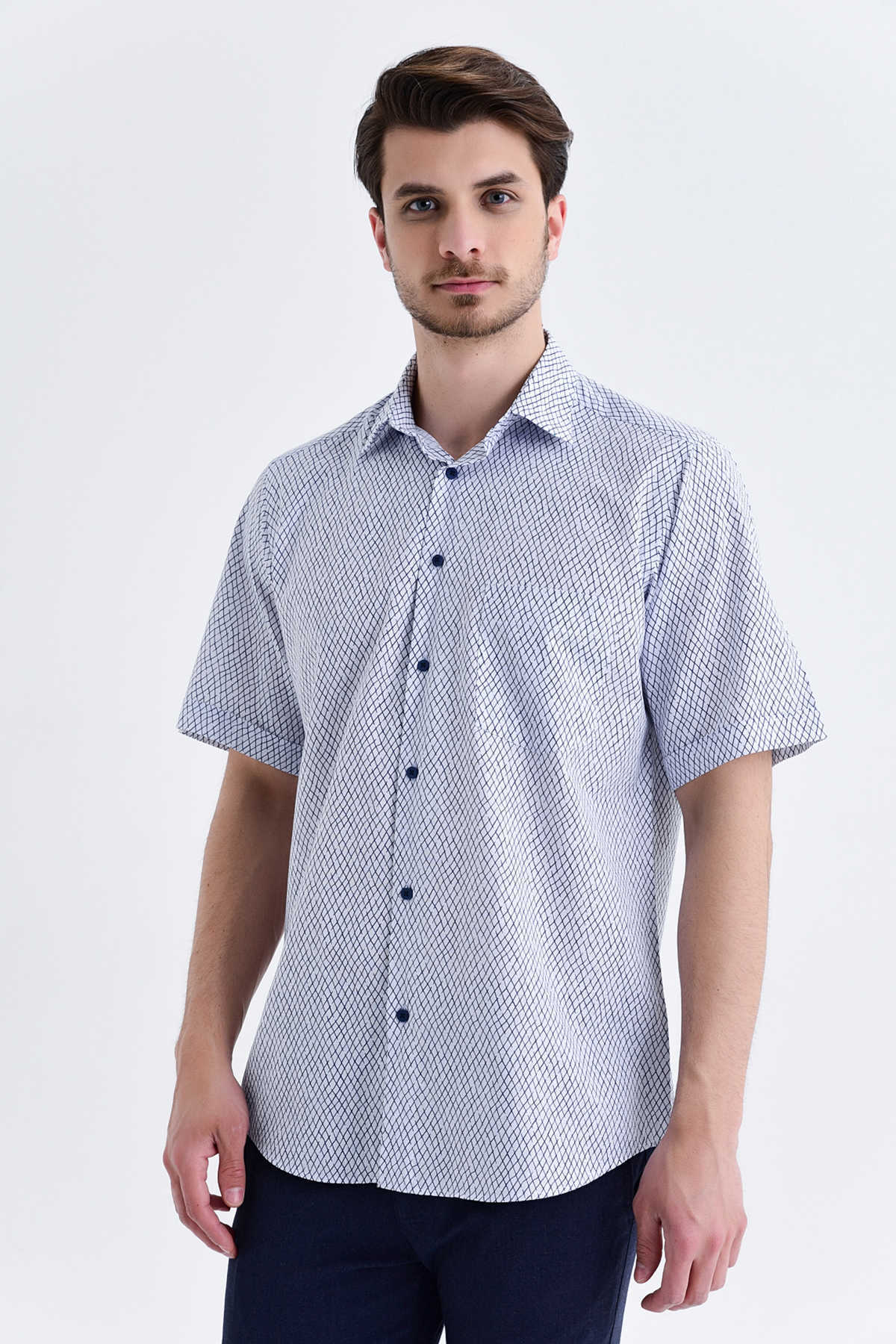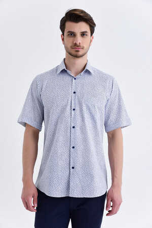 Kısa Kol Lacivert Desenli Klasik Gömlek