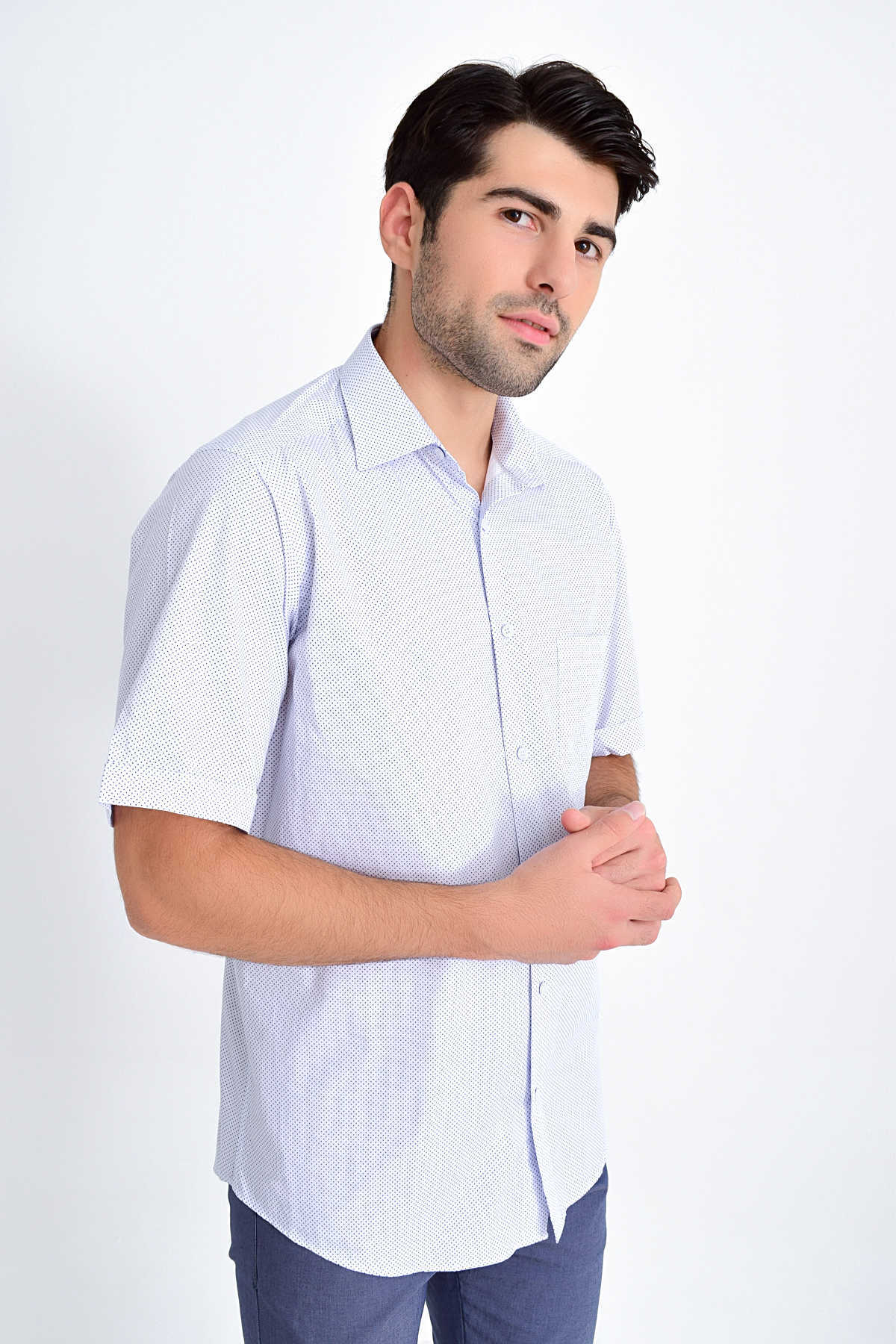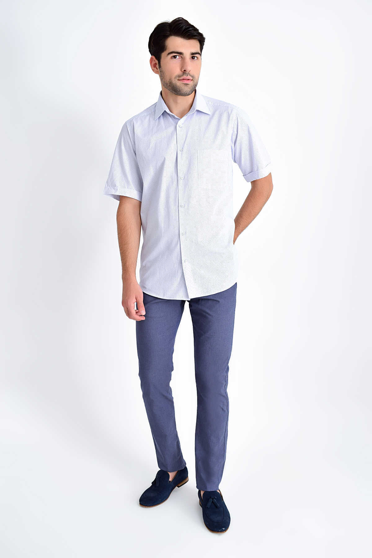 Desenli Klasik Lacivert Gömlek
