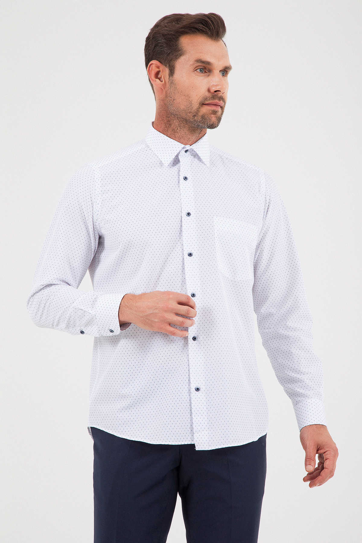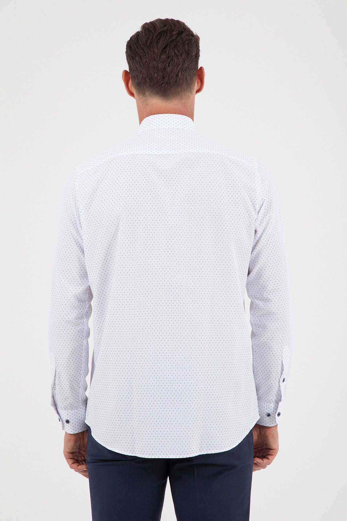 Desenli Klasik Lacivert Gömlek