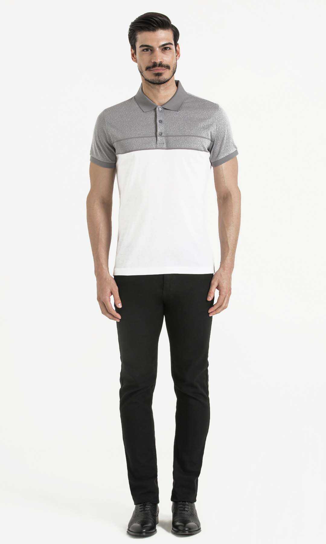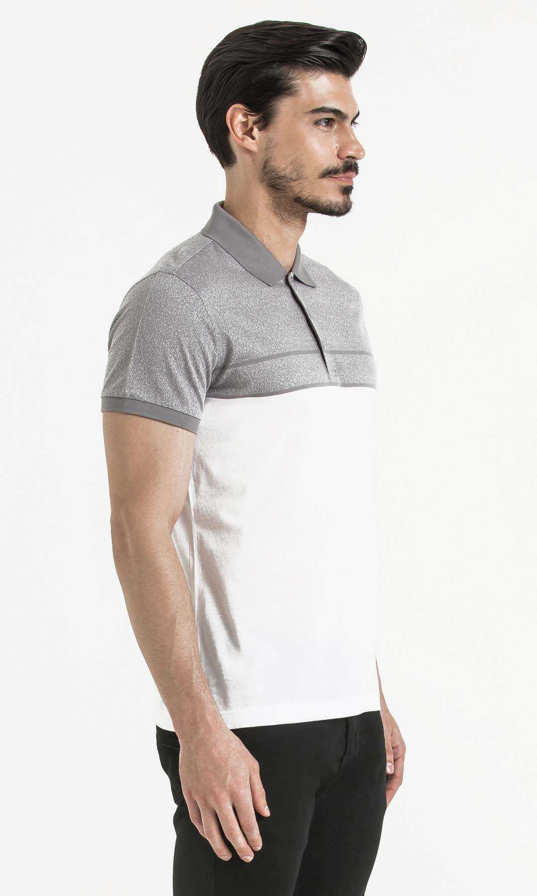 Gri Blok Desenli Polo Yaka Tişört