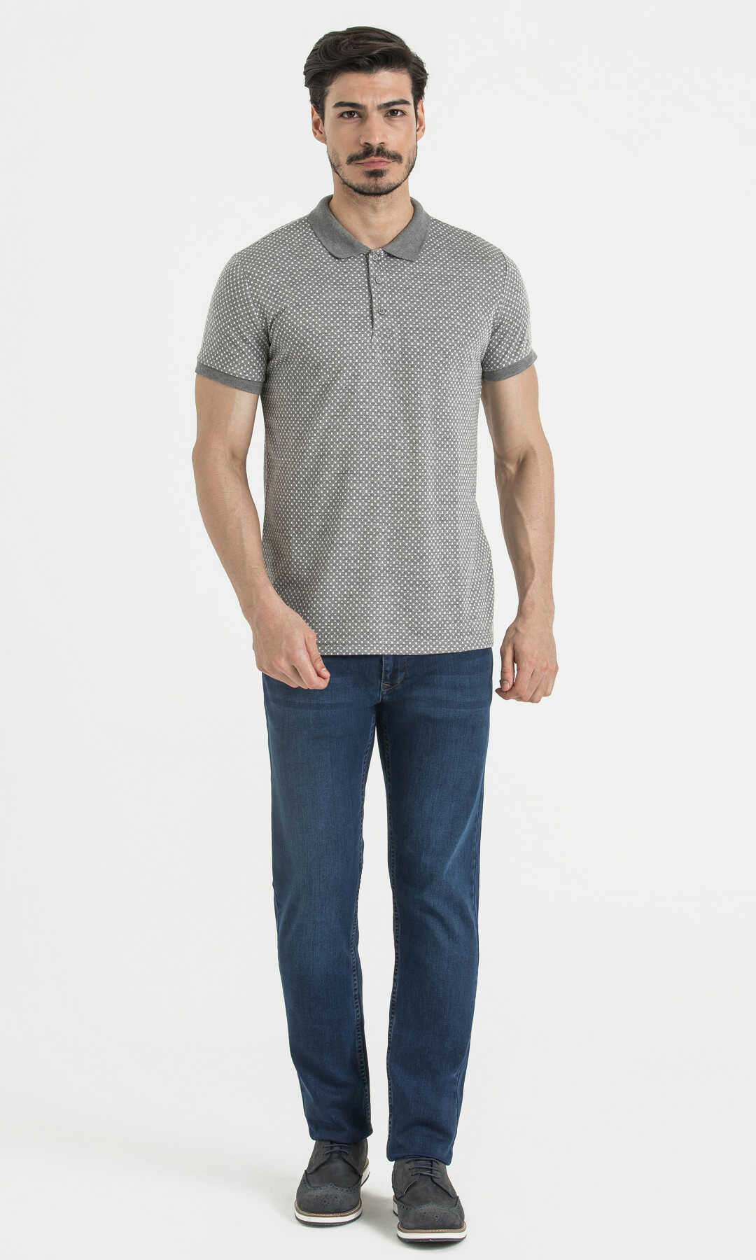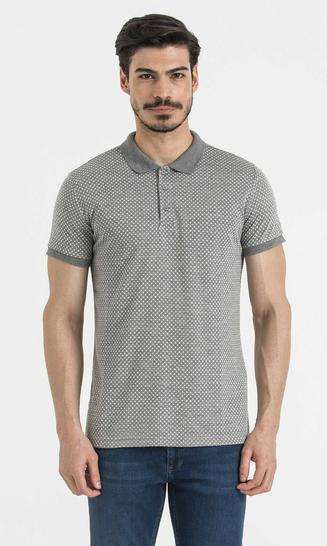 Gri Desenli Polo Yaka Tişört