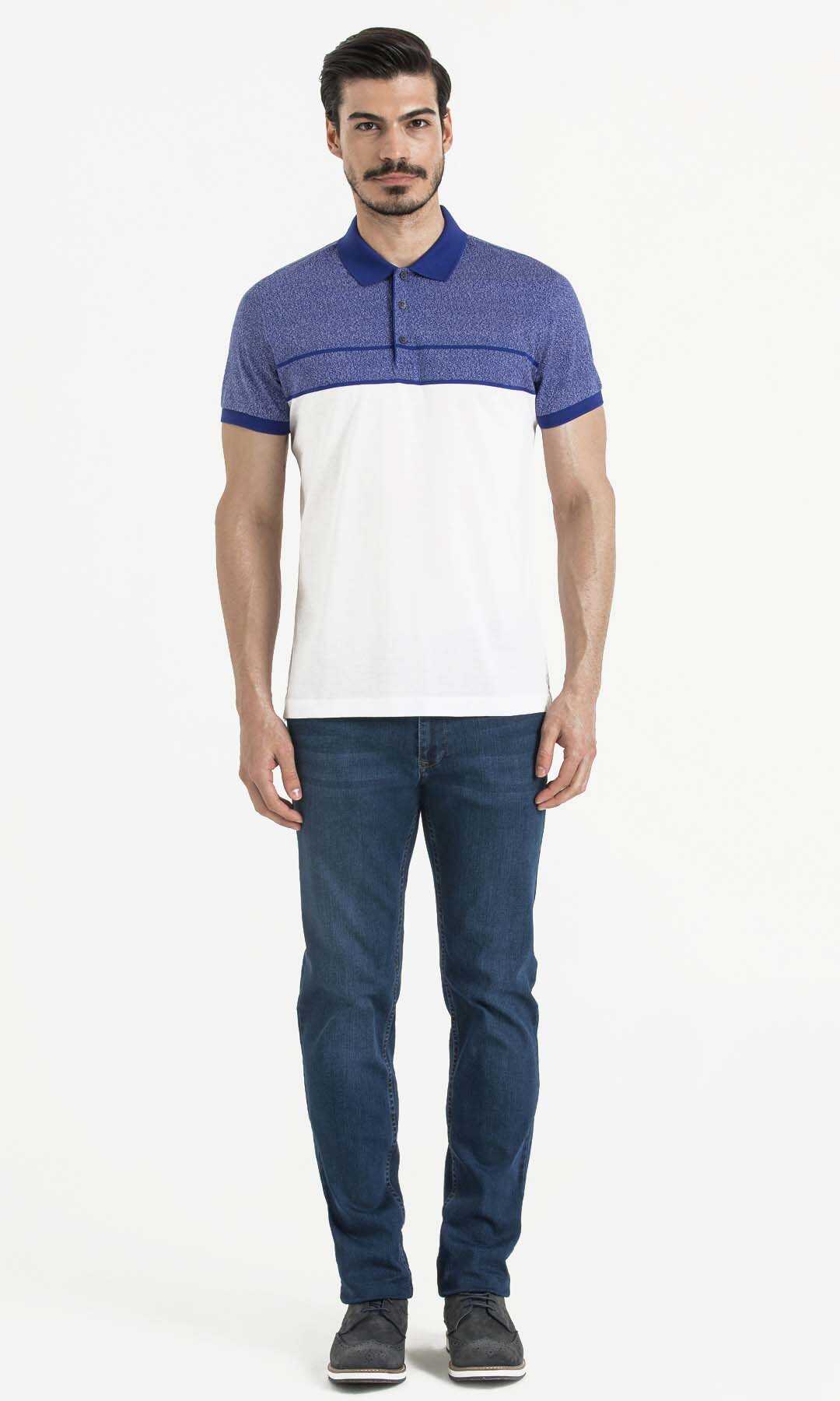 Lacivert Blok Desenli Polo Yaka Tişört