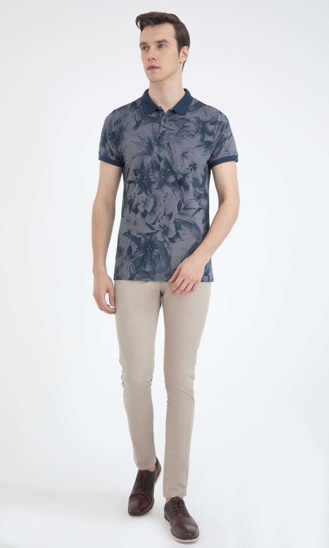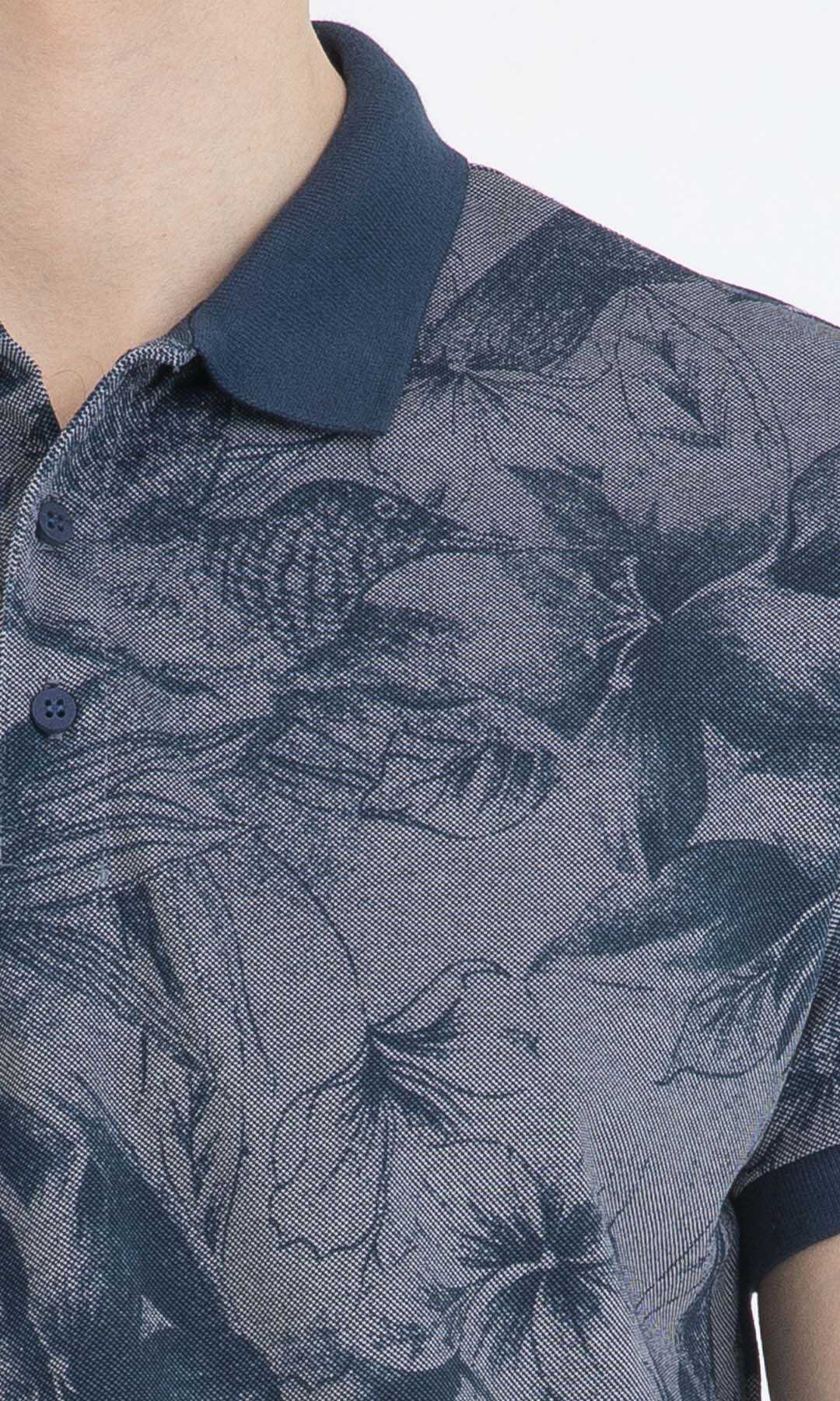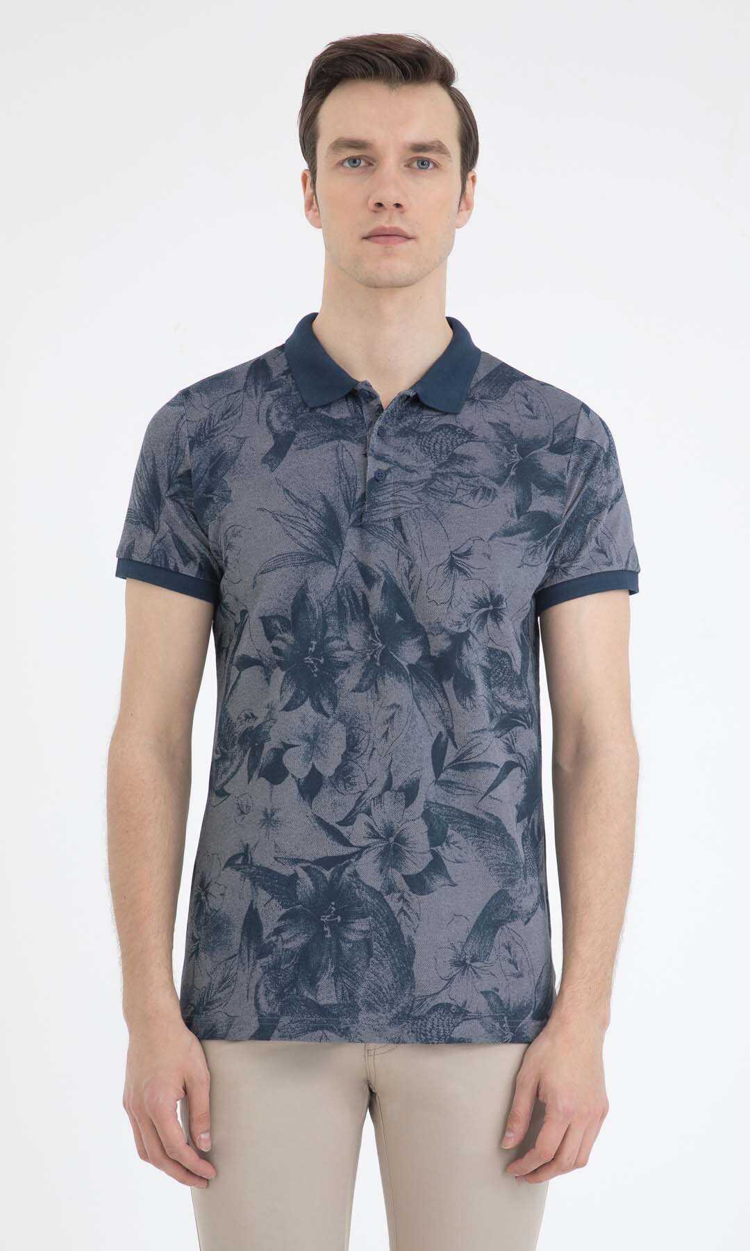 Lacivert Büyük Desenli Polo Yaka Tişört