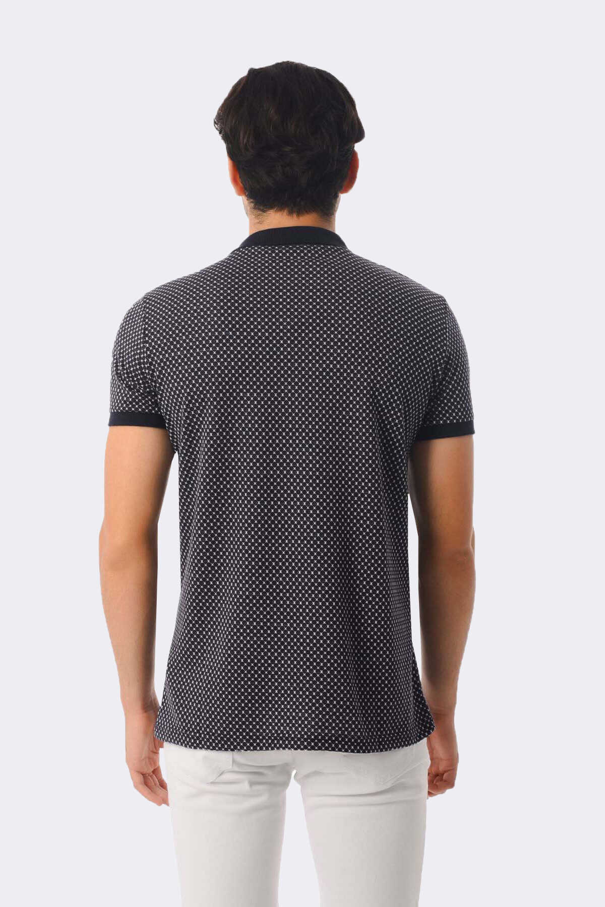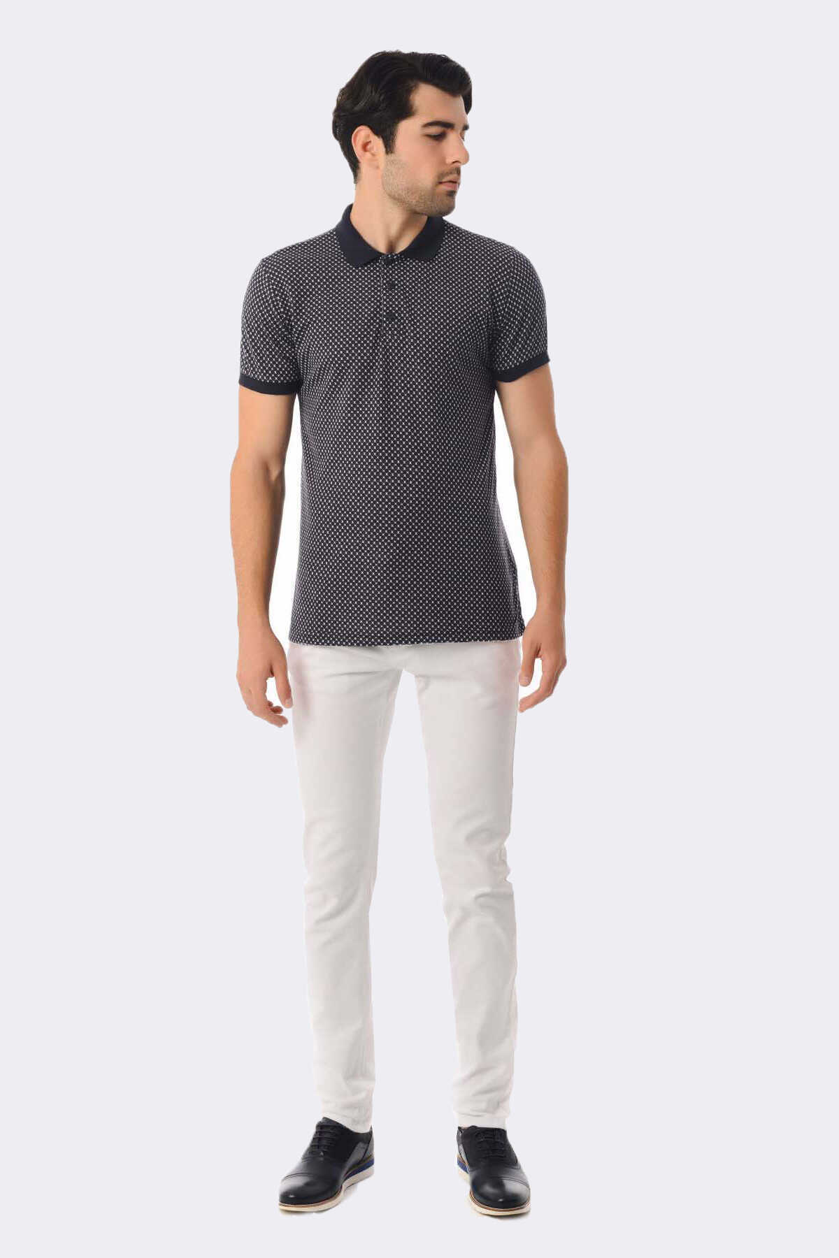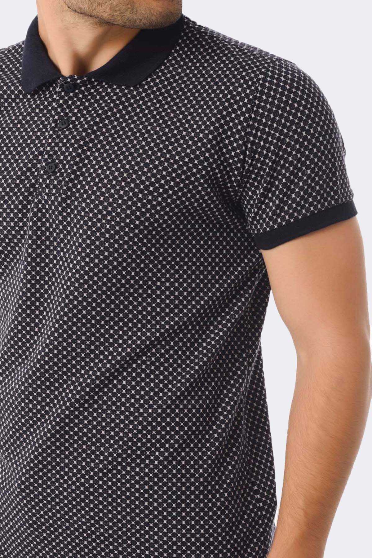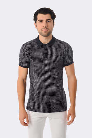 Lacivert Desenli Polo Yaka Tişört
