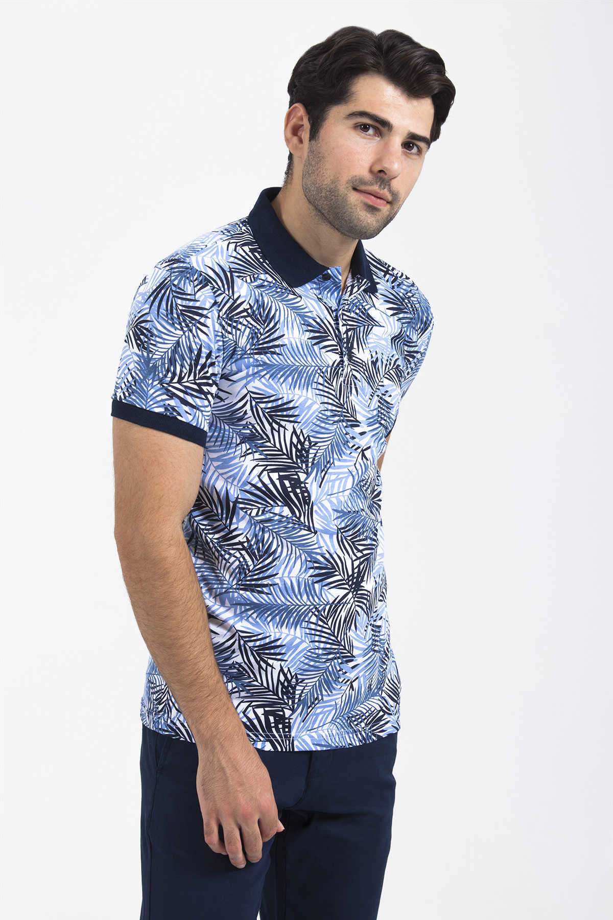 Mavi Yaprak Desenli Polo Yaka Tişört