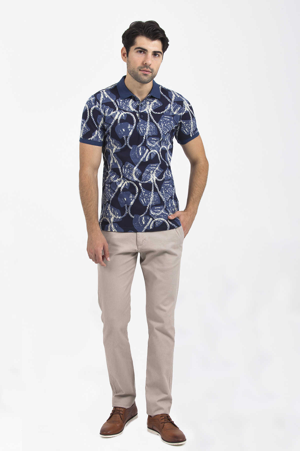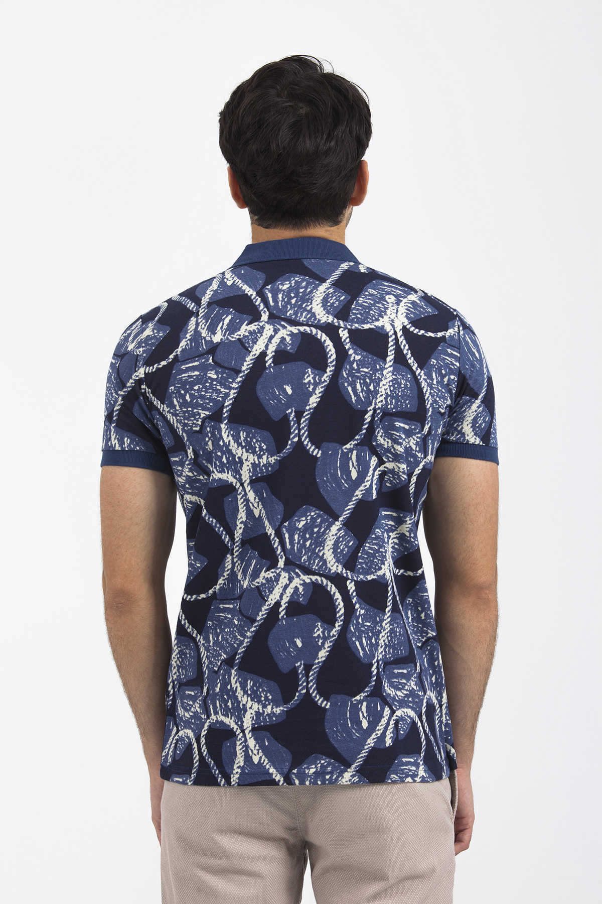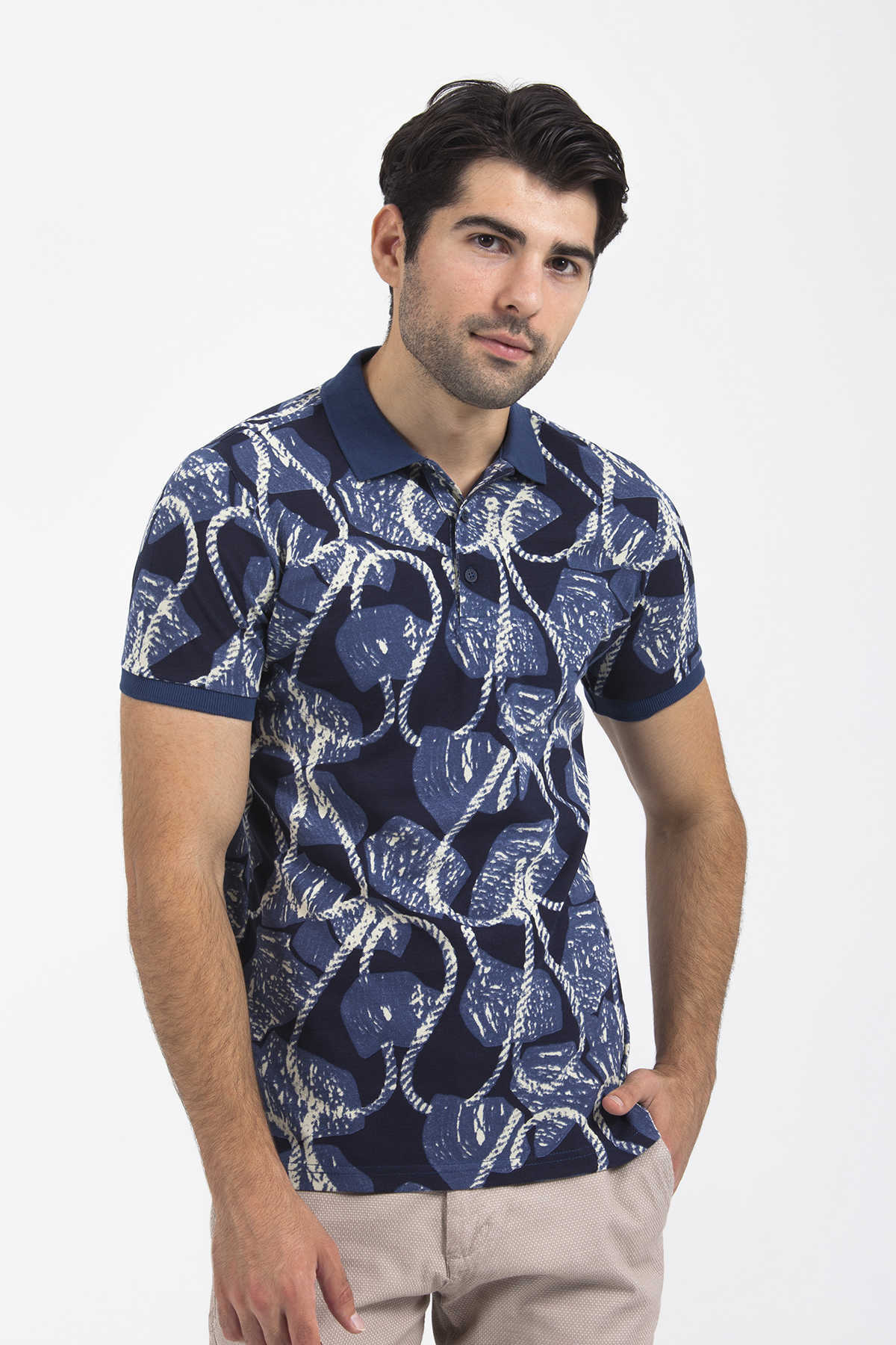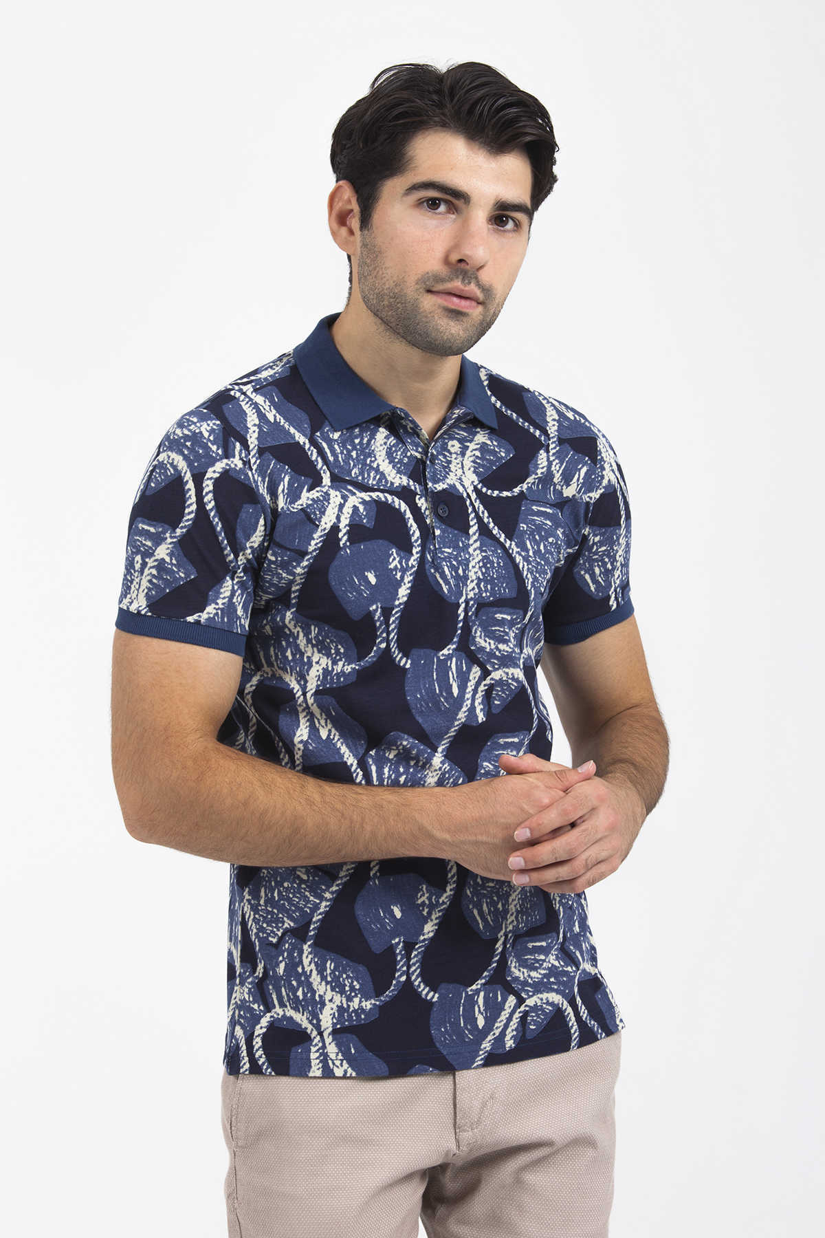 Lacivert Büyük Desenli Polo Yaka Tişört