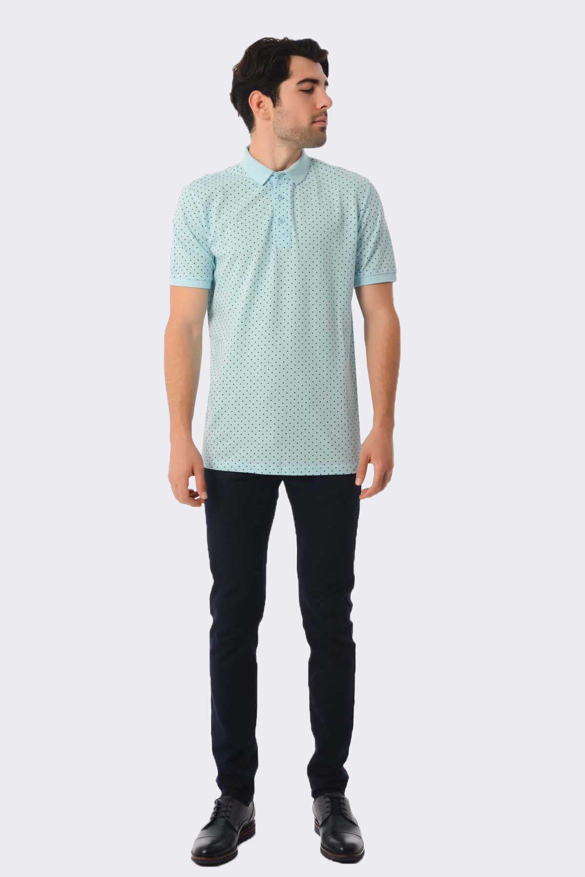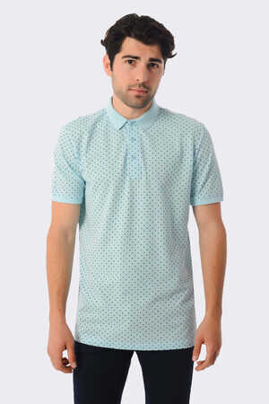 Açık Mavi Desenli Polo Yaka Tişört