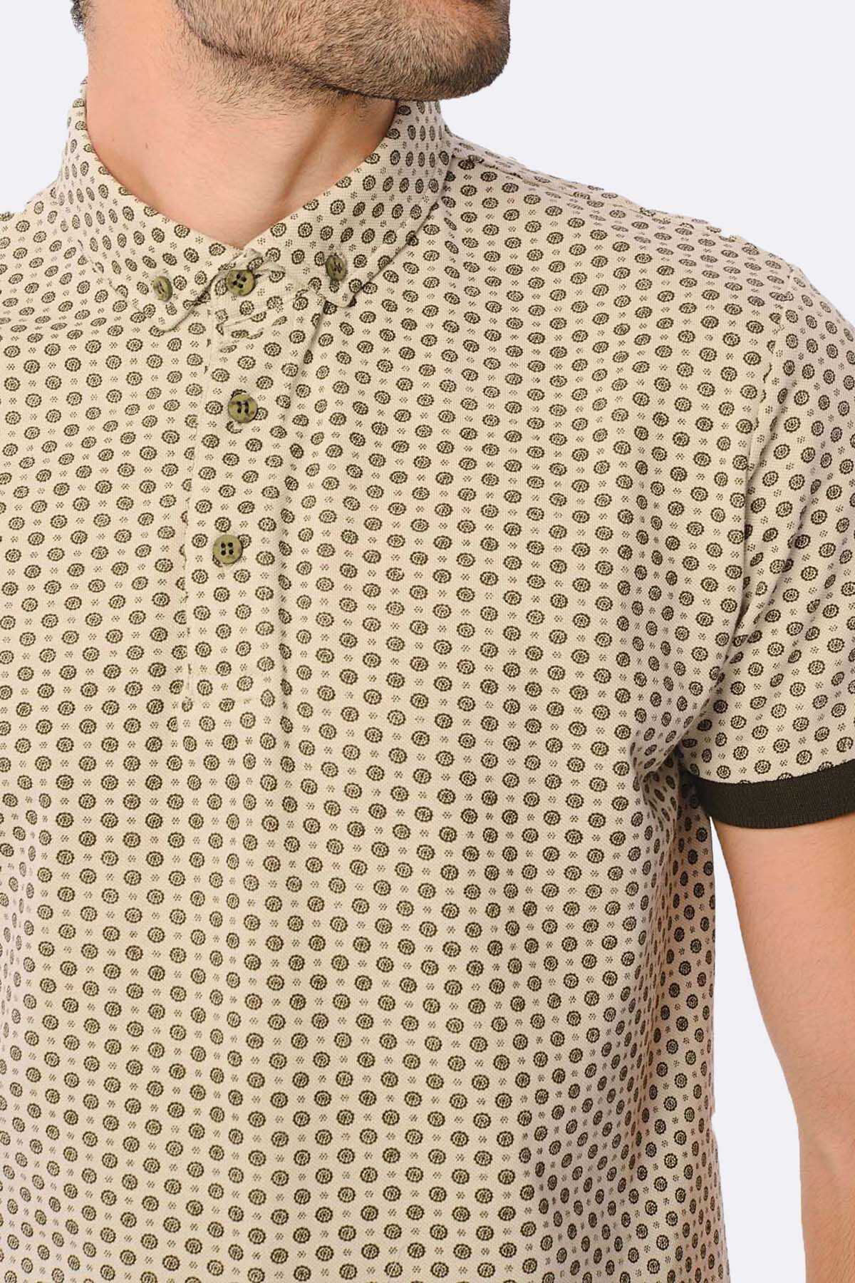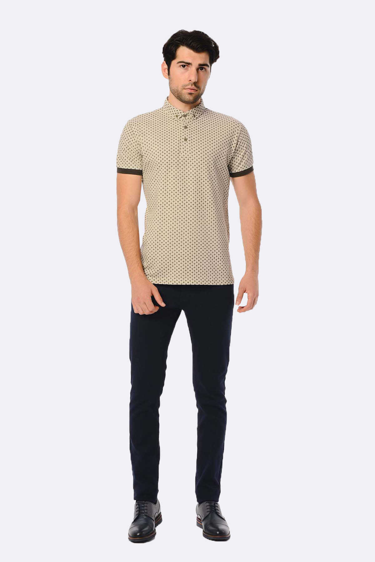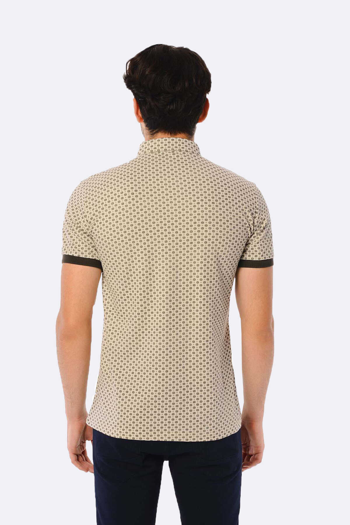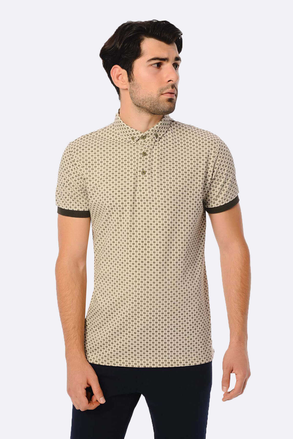 Taş Desenli Düğmeli Polo Yaka Tişört