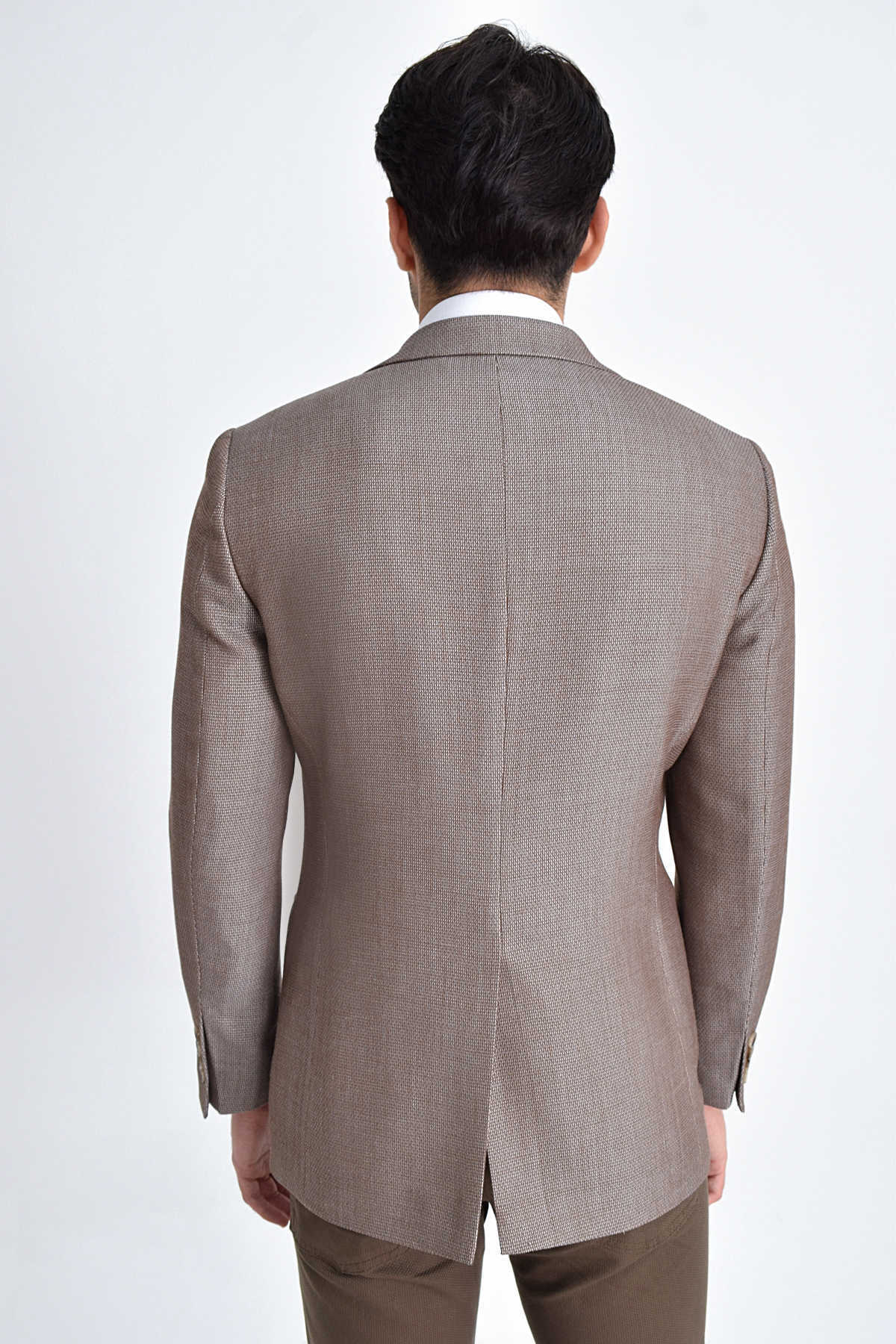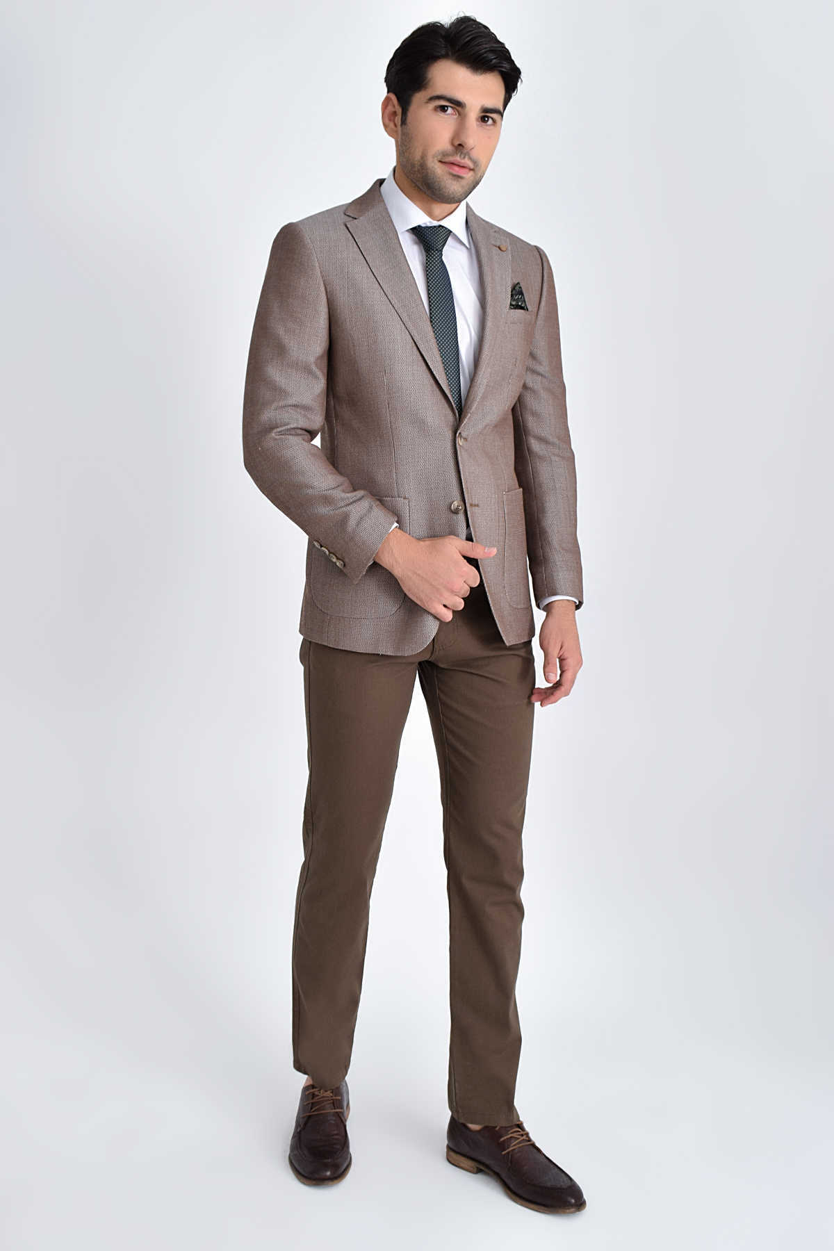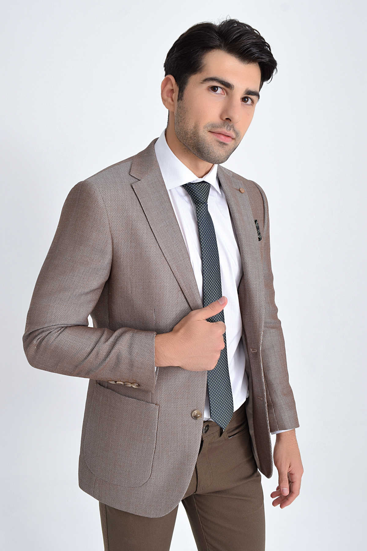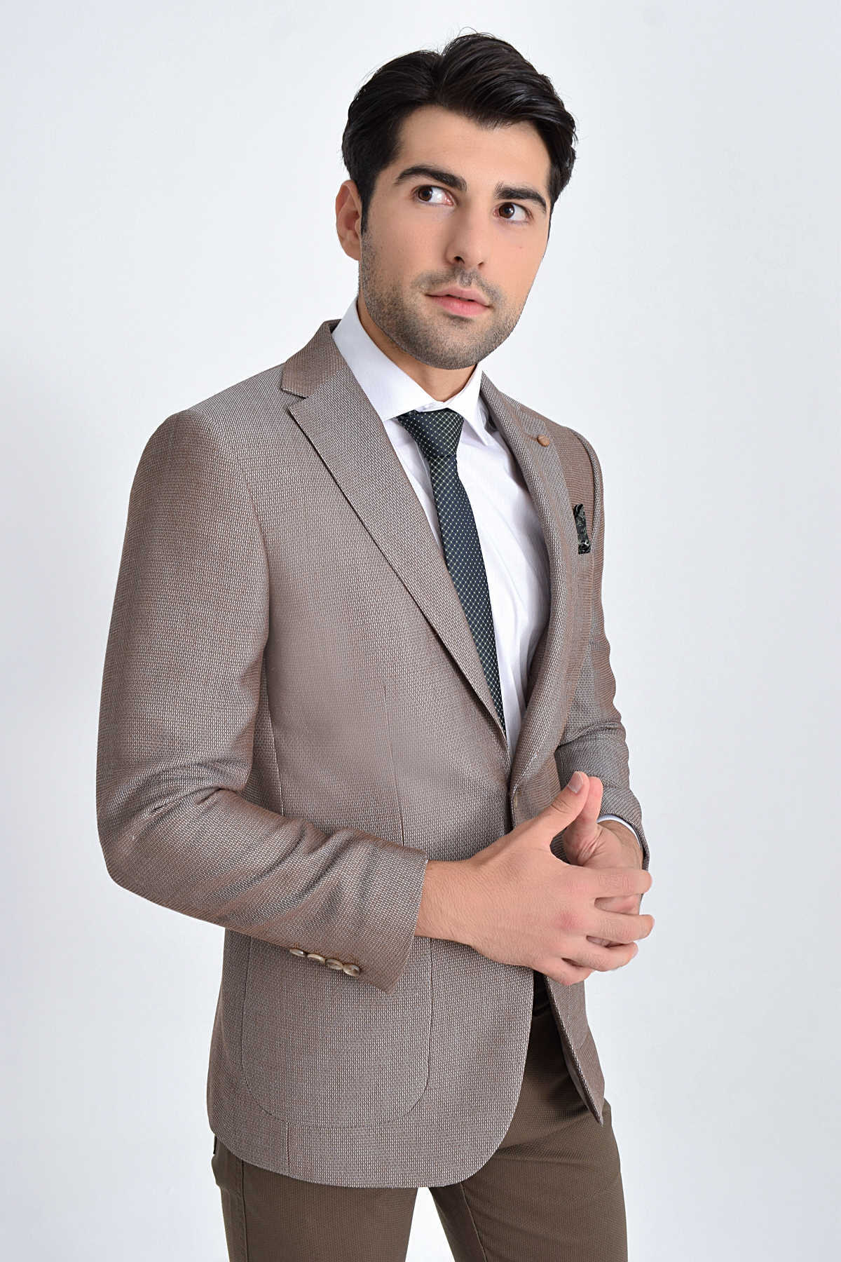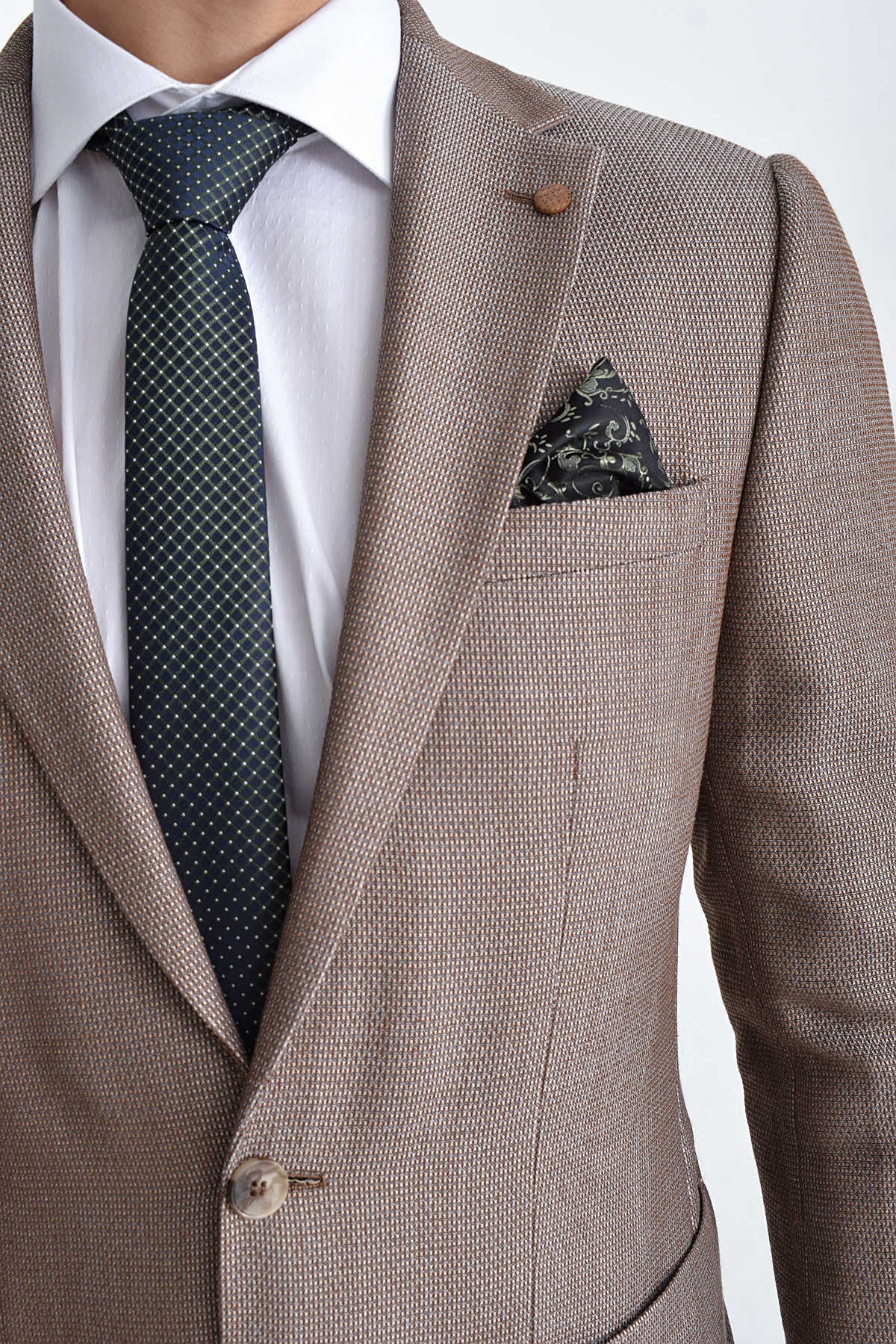 Bej Slim Fit Desenli Ceket