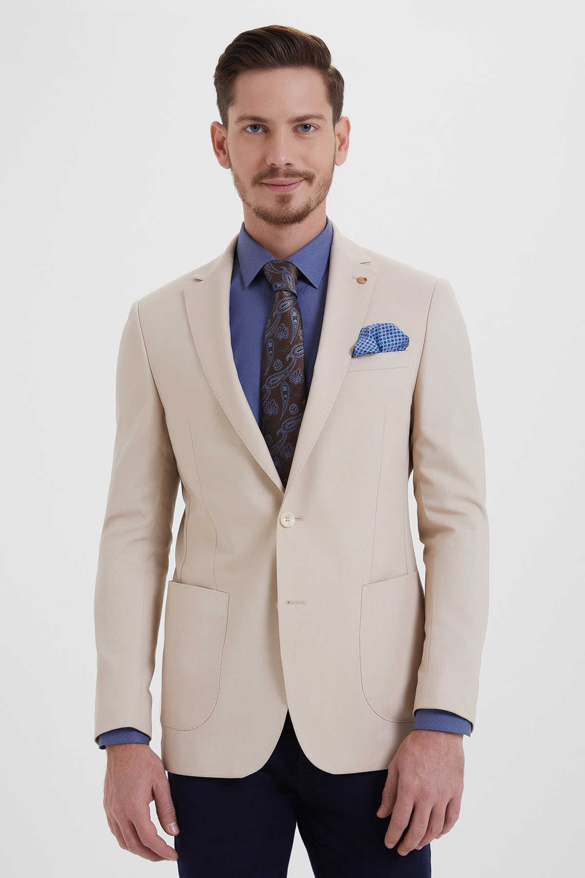 Bej Slim Fit Blazer Ceket