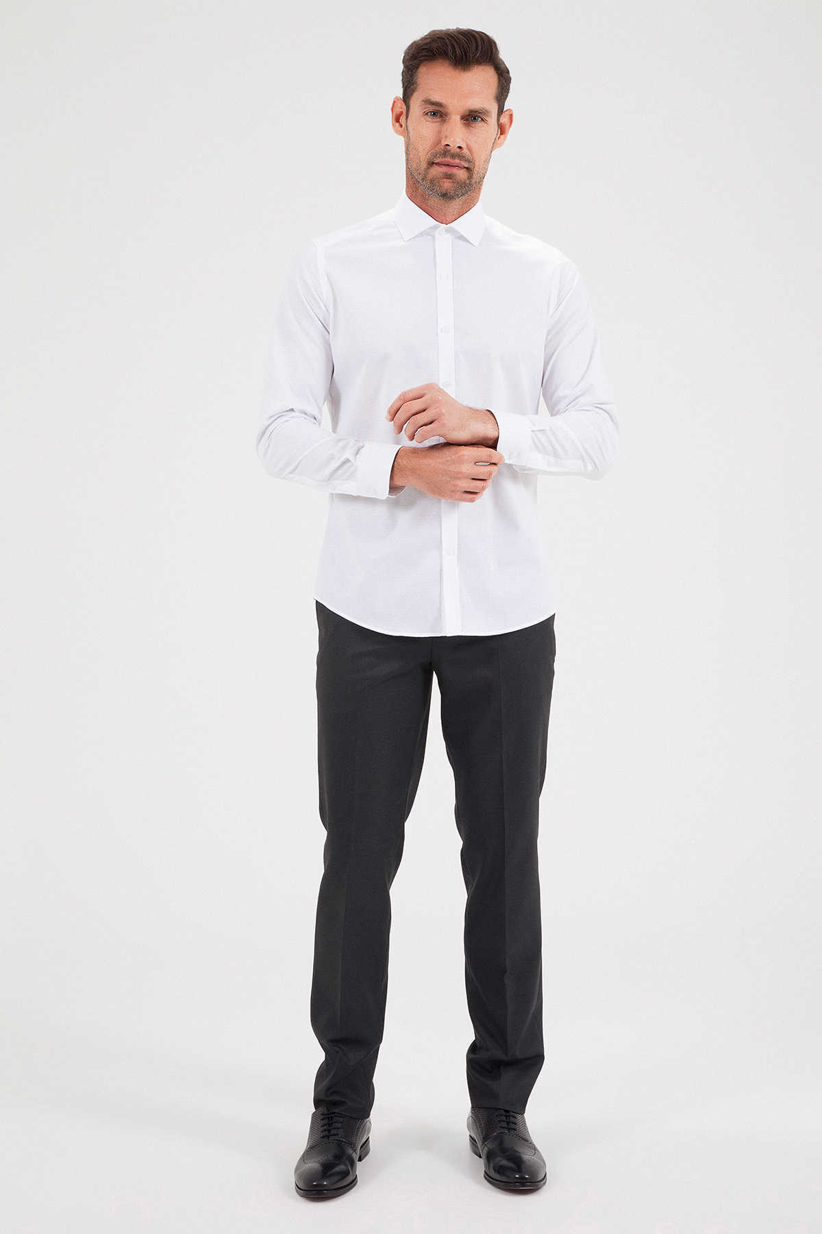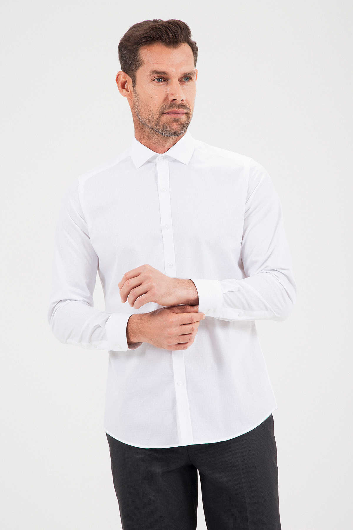 Desenli Slim Fit Beyaz Gömlek