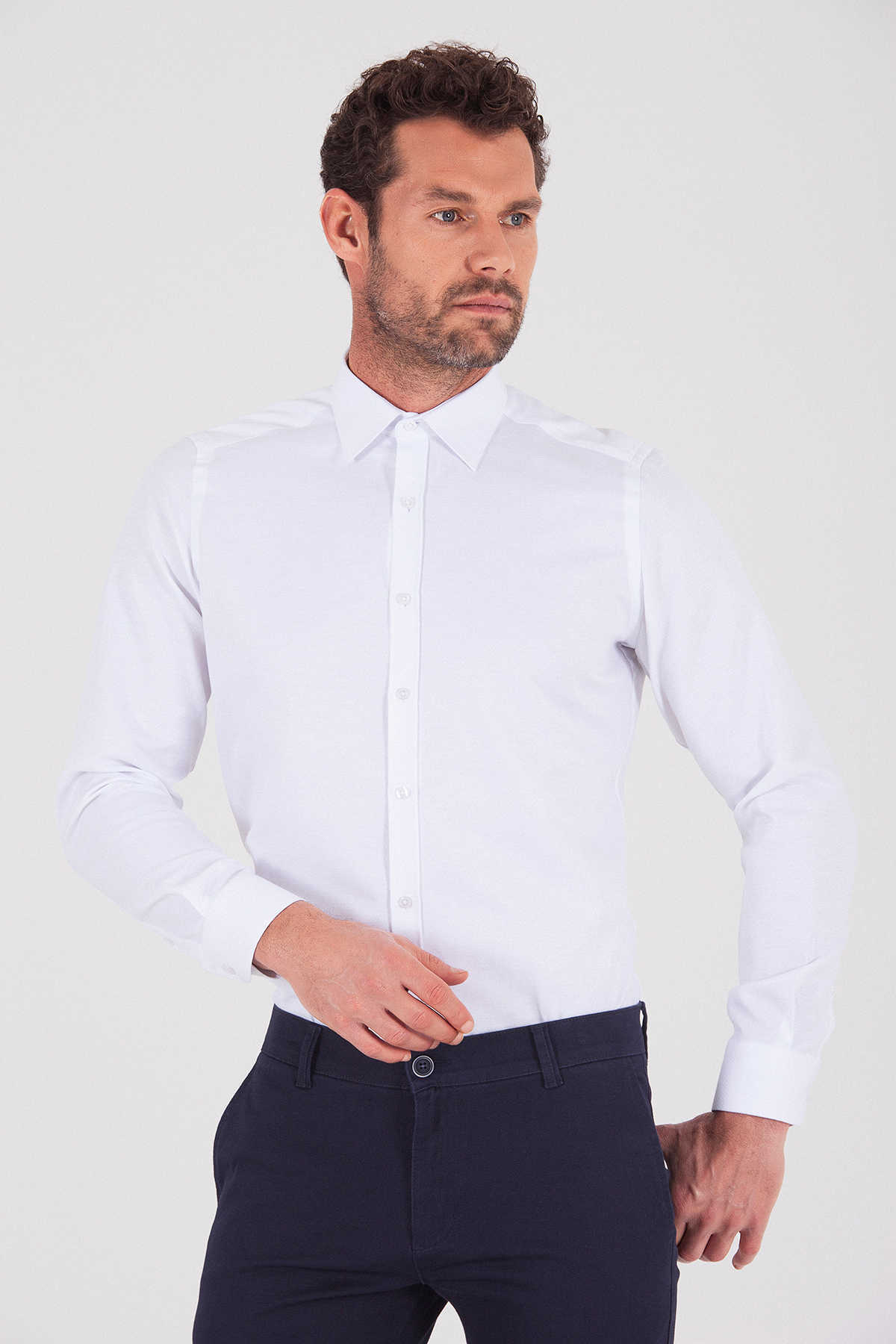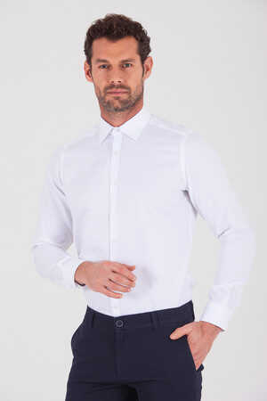 Desenli Slim Fit Beyaz Gömlek