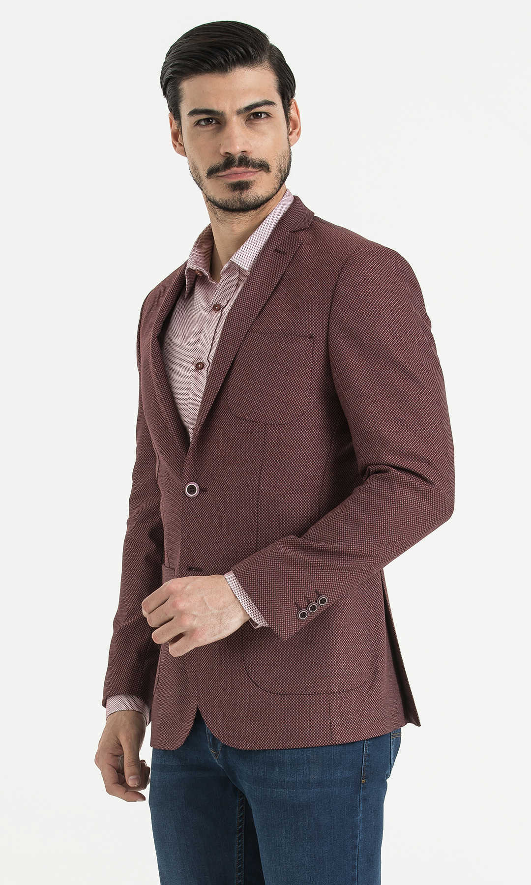 Desenli Slim Fit Bordo Ceket
