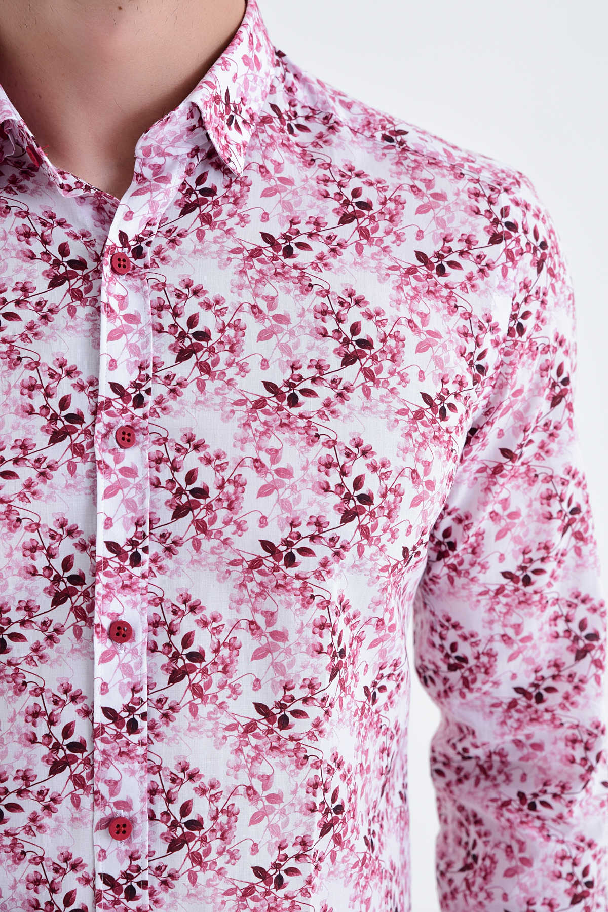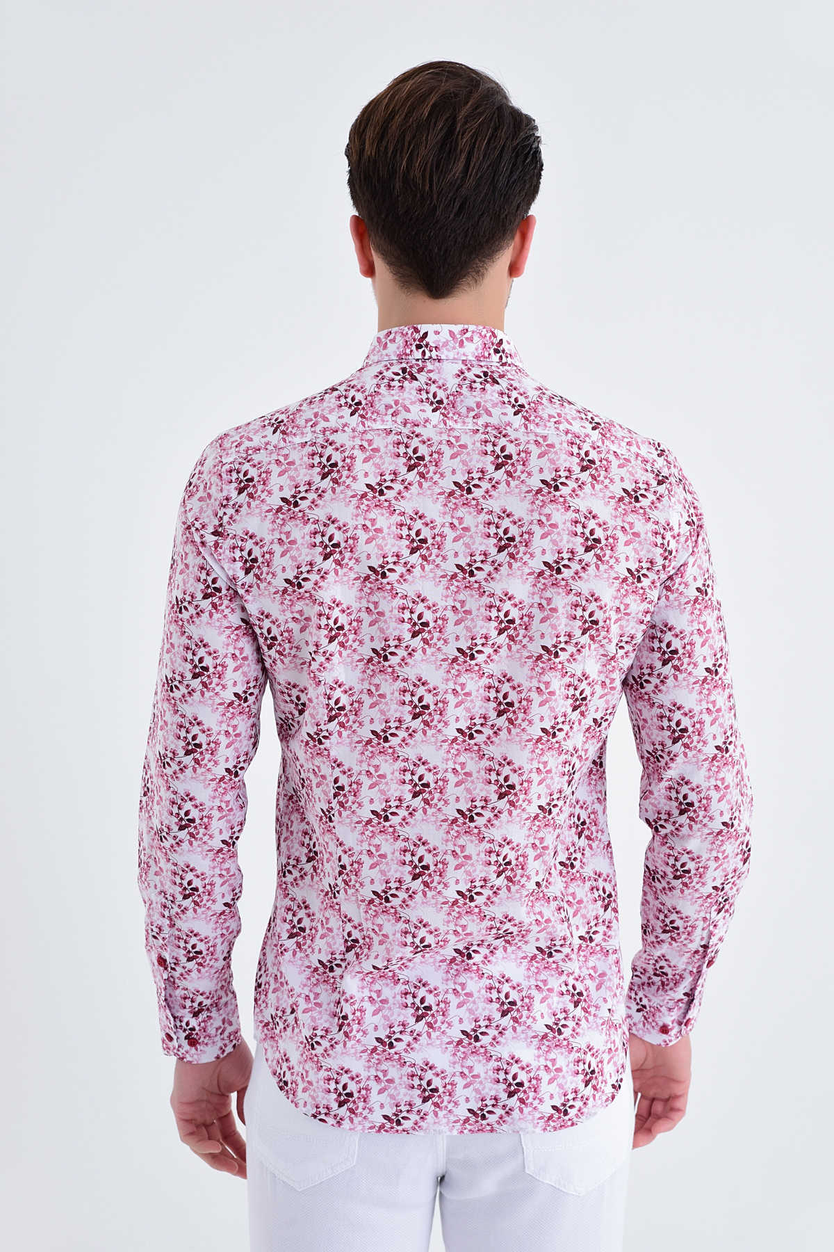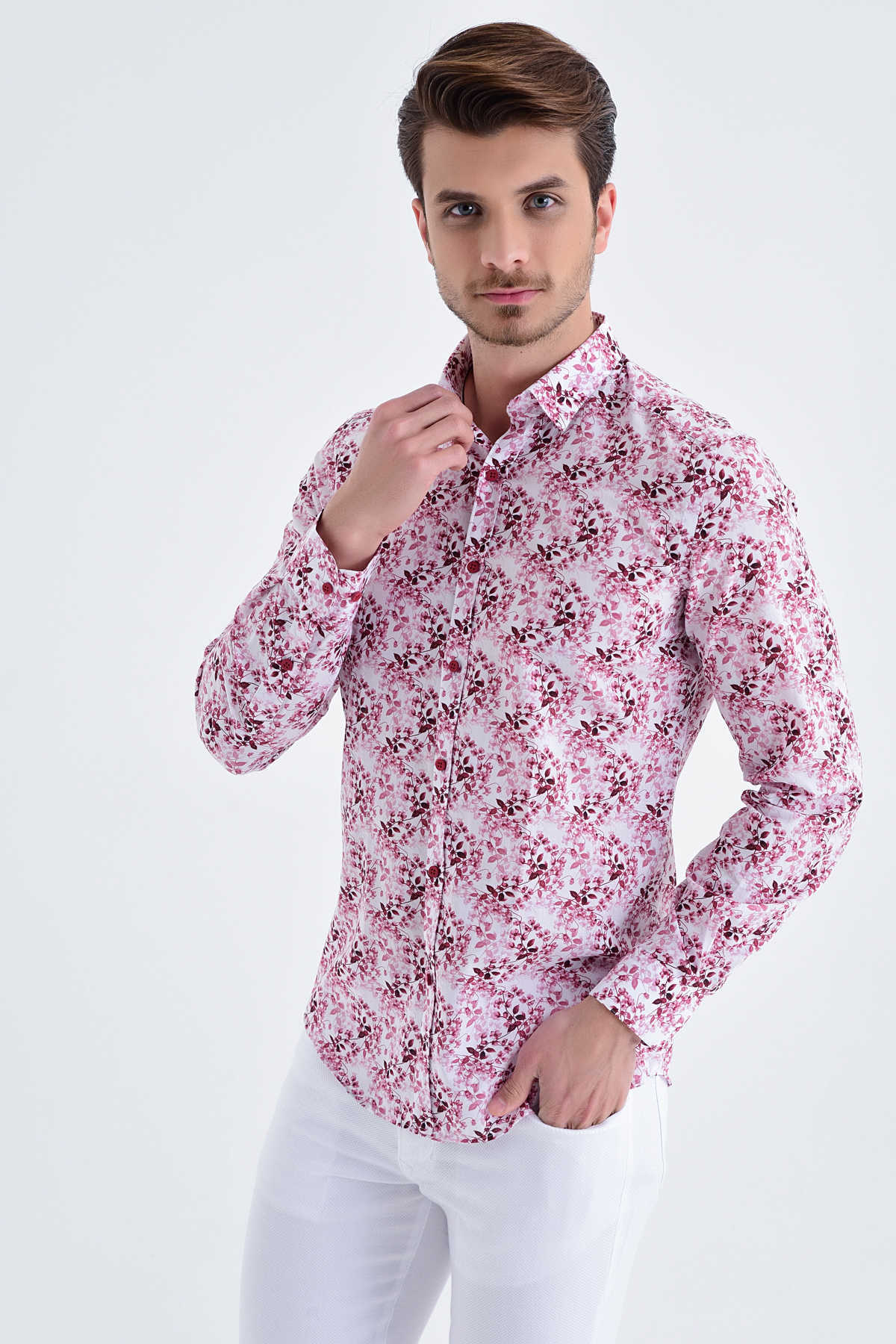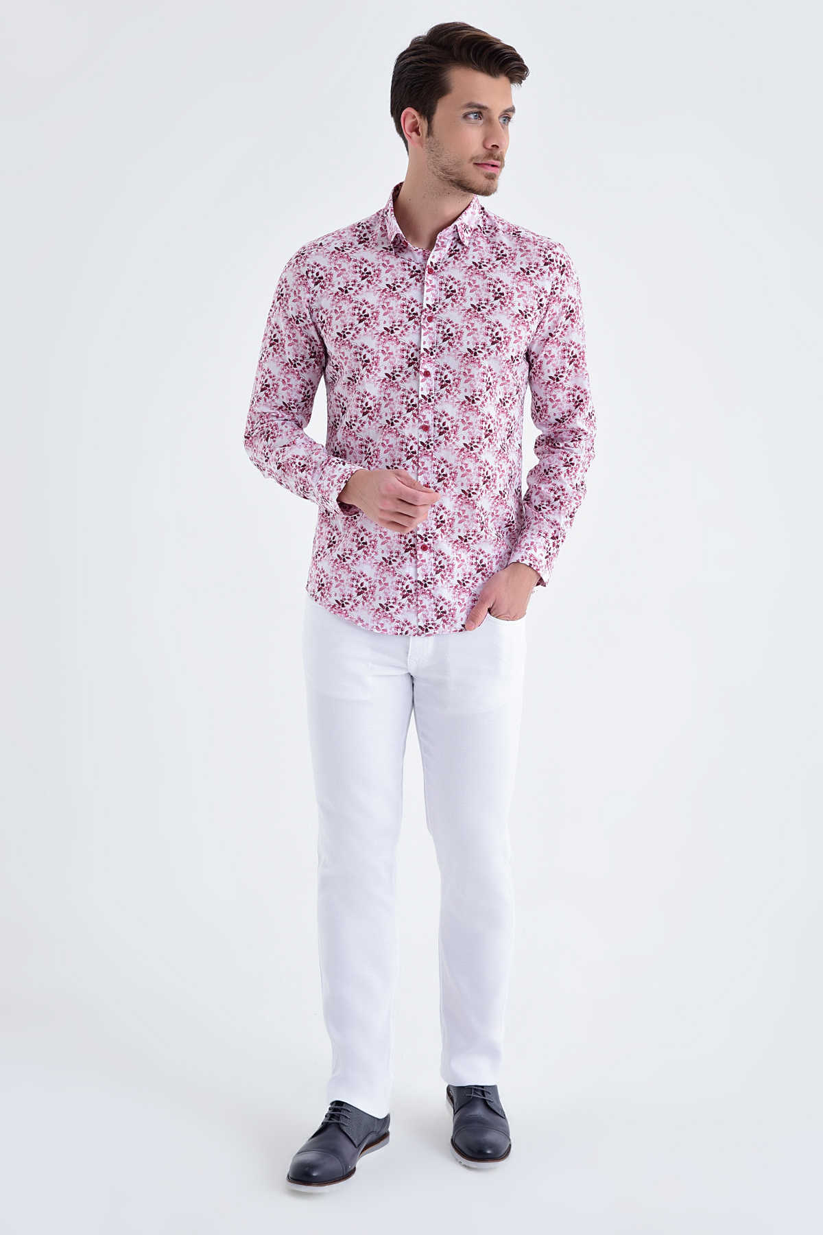 Desenli Slim Fit BORDO Gömlek