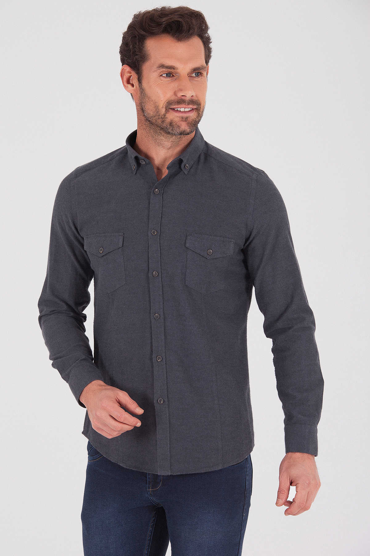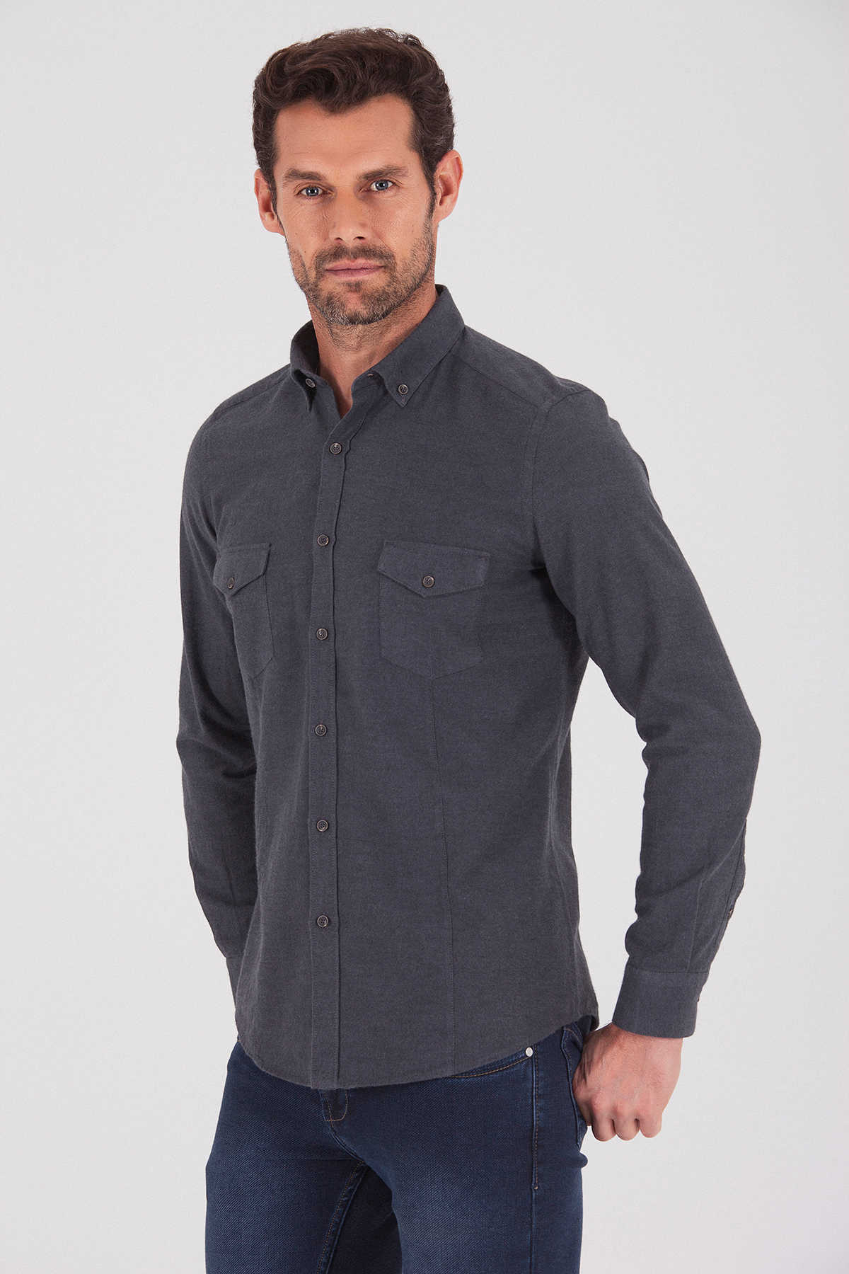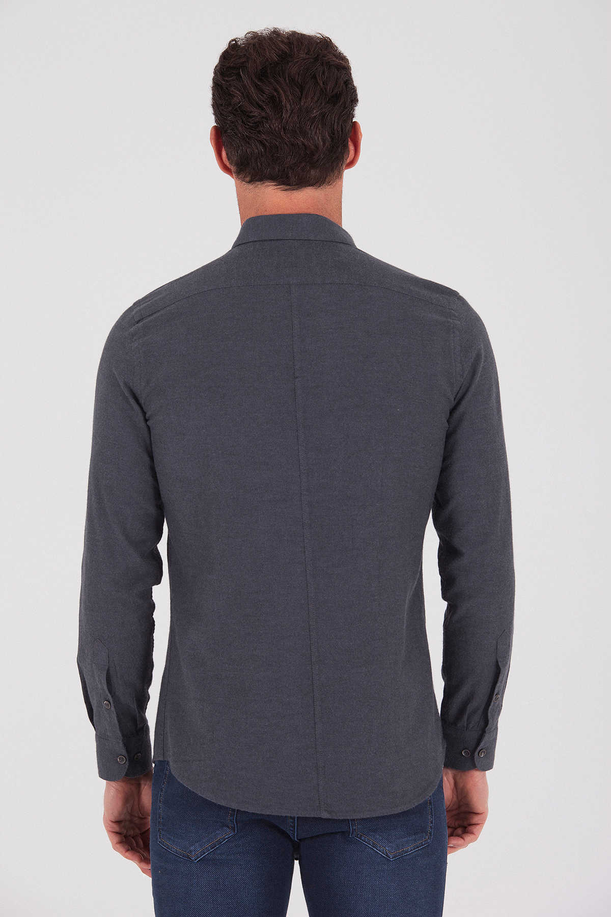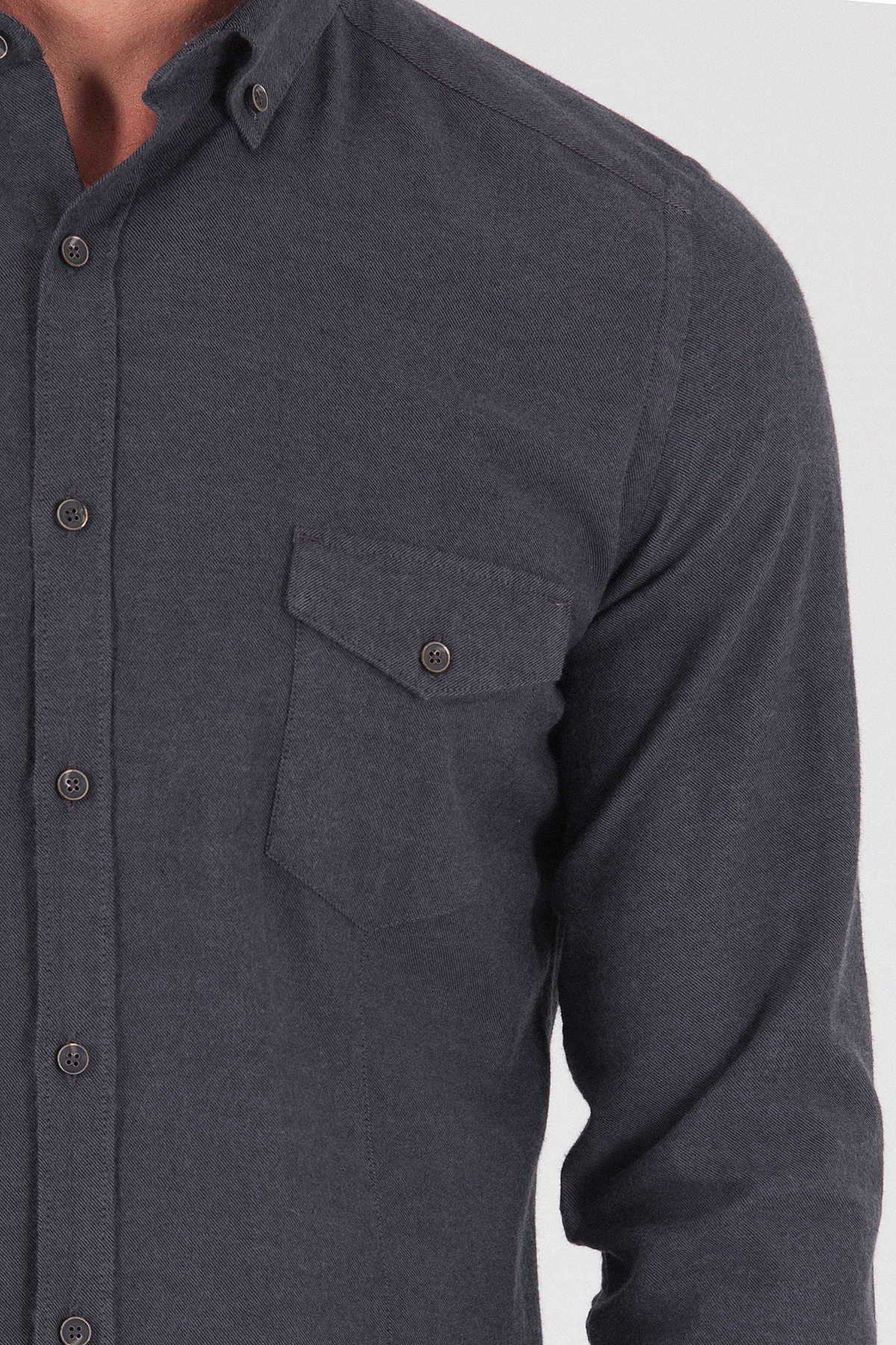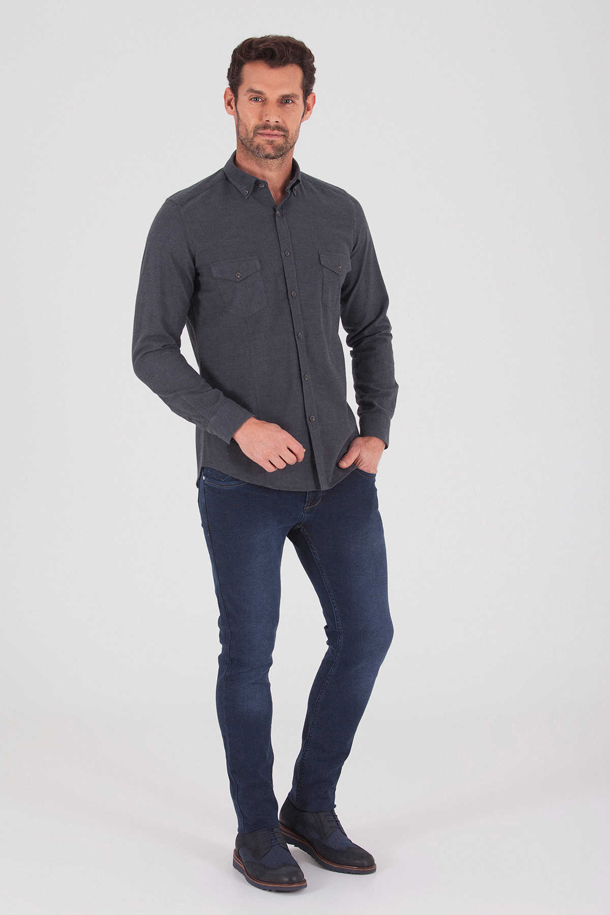 Desenli Slim Fit Gri Gömlek