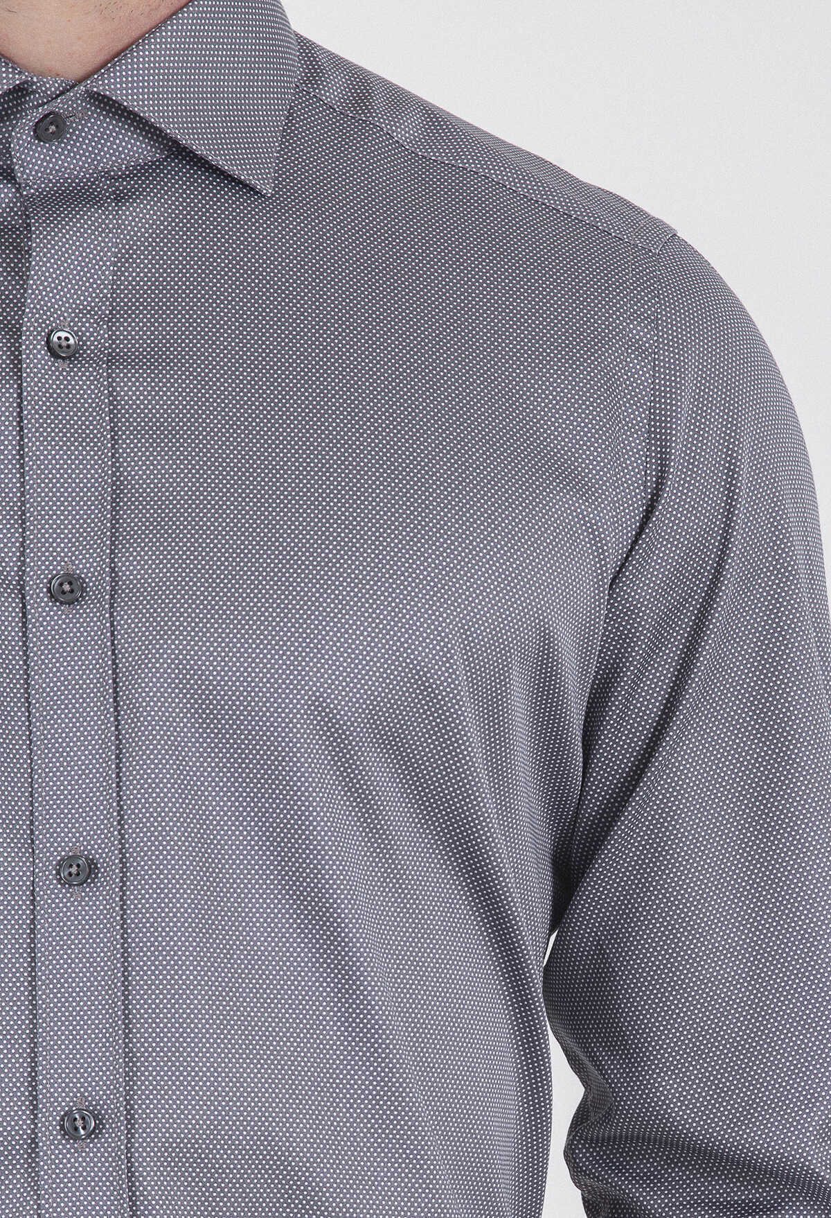 Gri Slim Fit Baskılı 100% Pamuk Uzun Kol Saten Gömlek