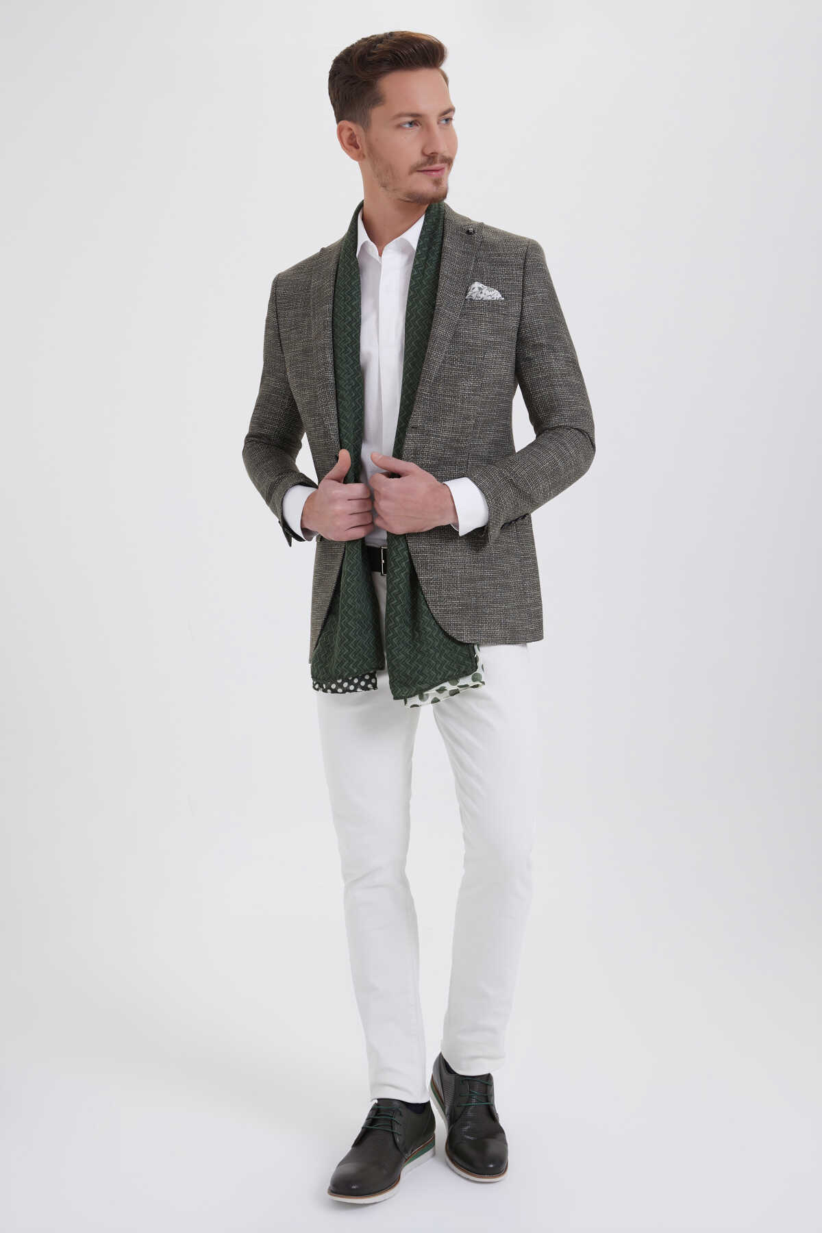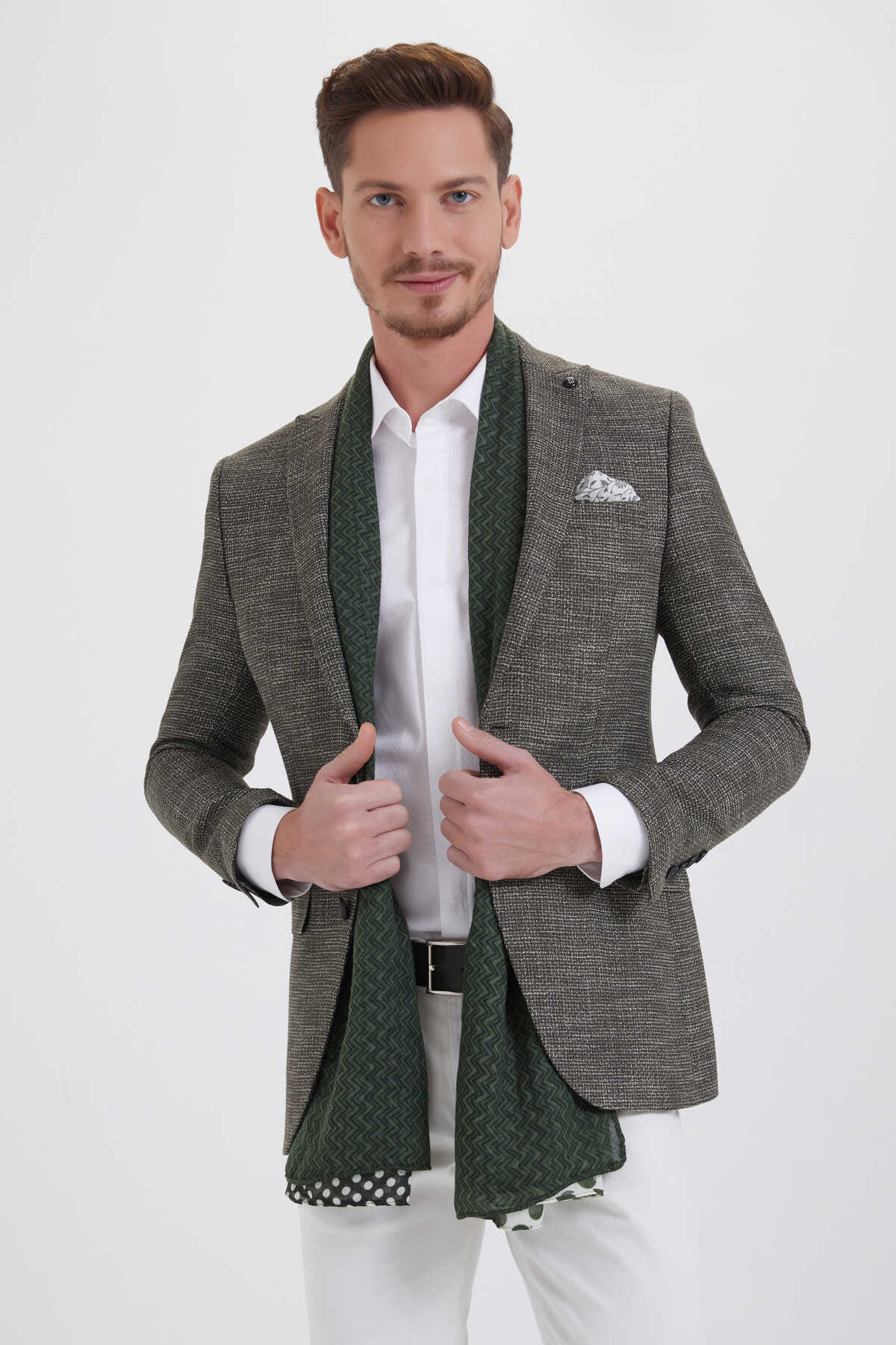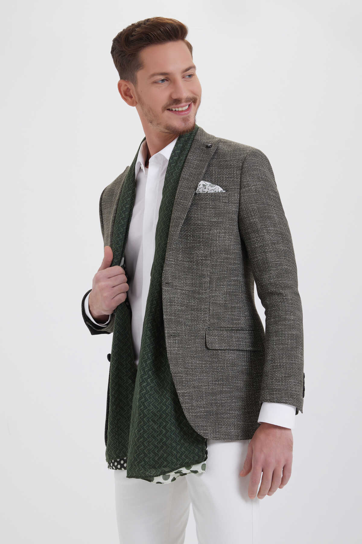 Desenli Slim Fit Haki Ceket