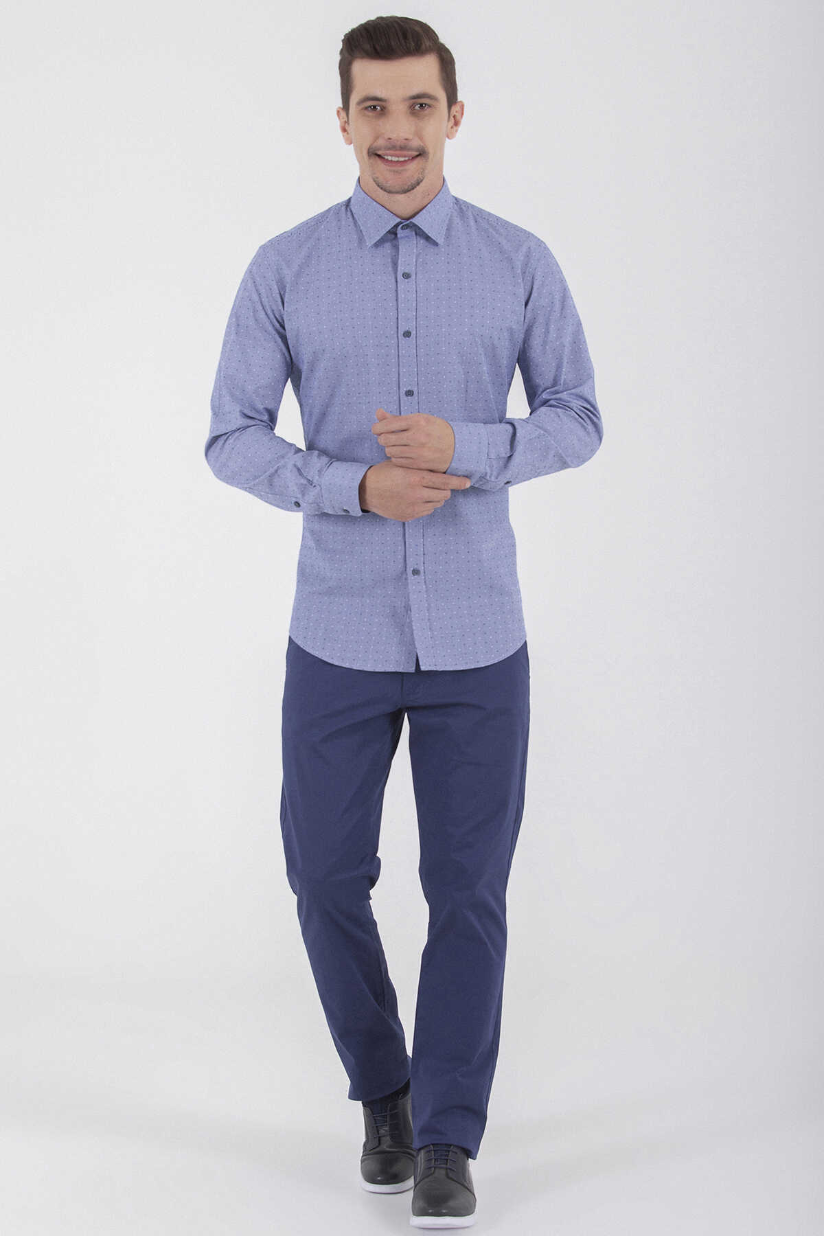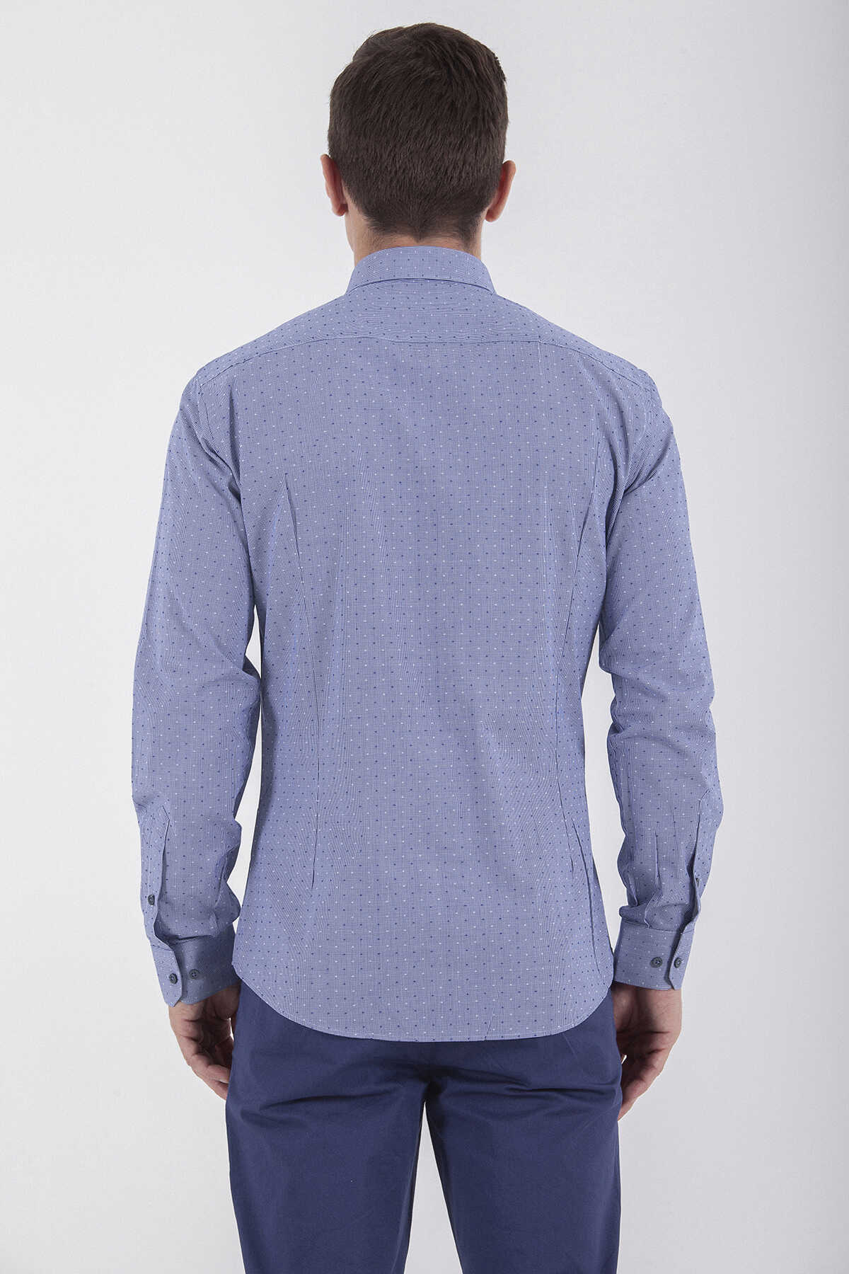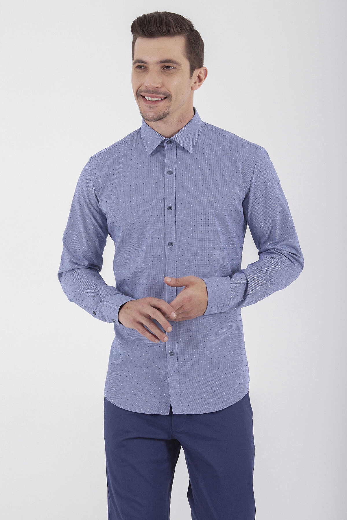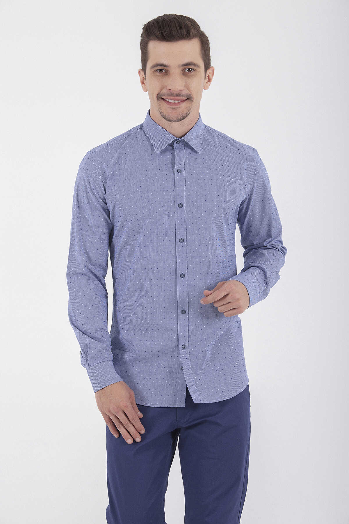 Desenli Slim Fit Lacivert Gömlek