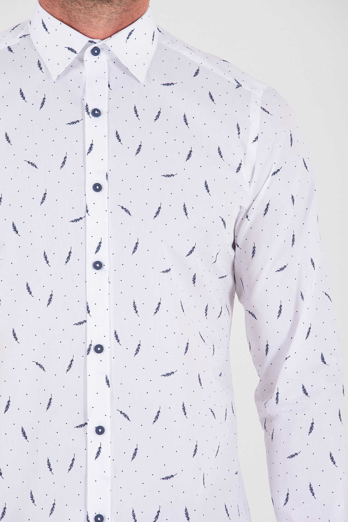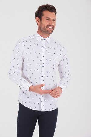 Lacivert Slim Fit Baskılı 100% Pamuk Uzun Kol Spor Gömlek