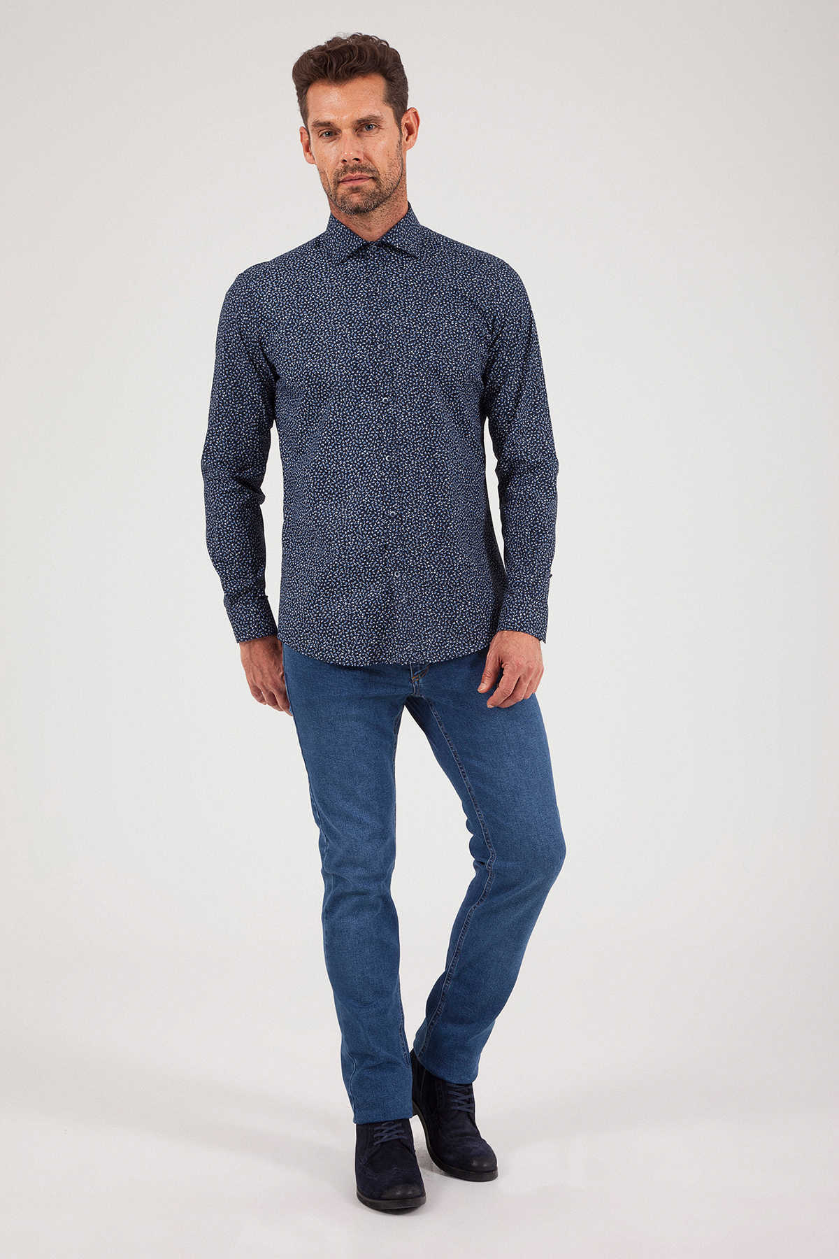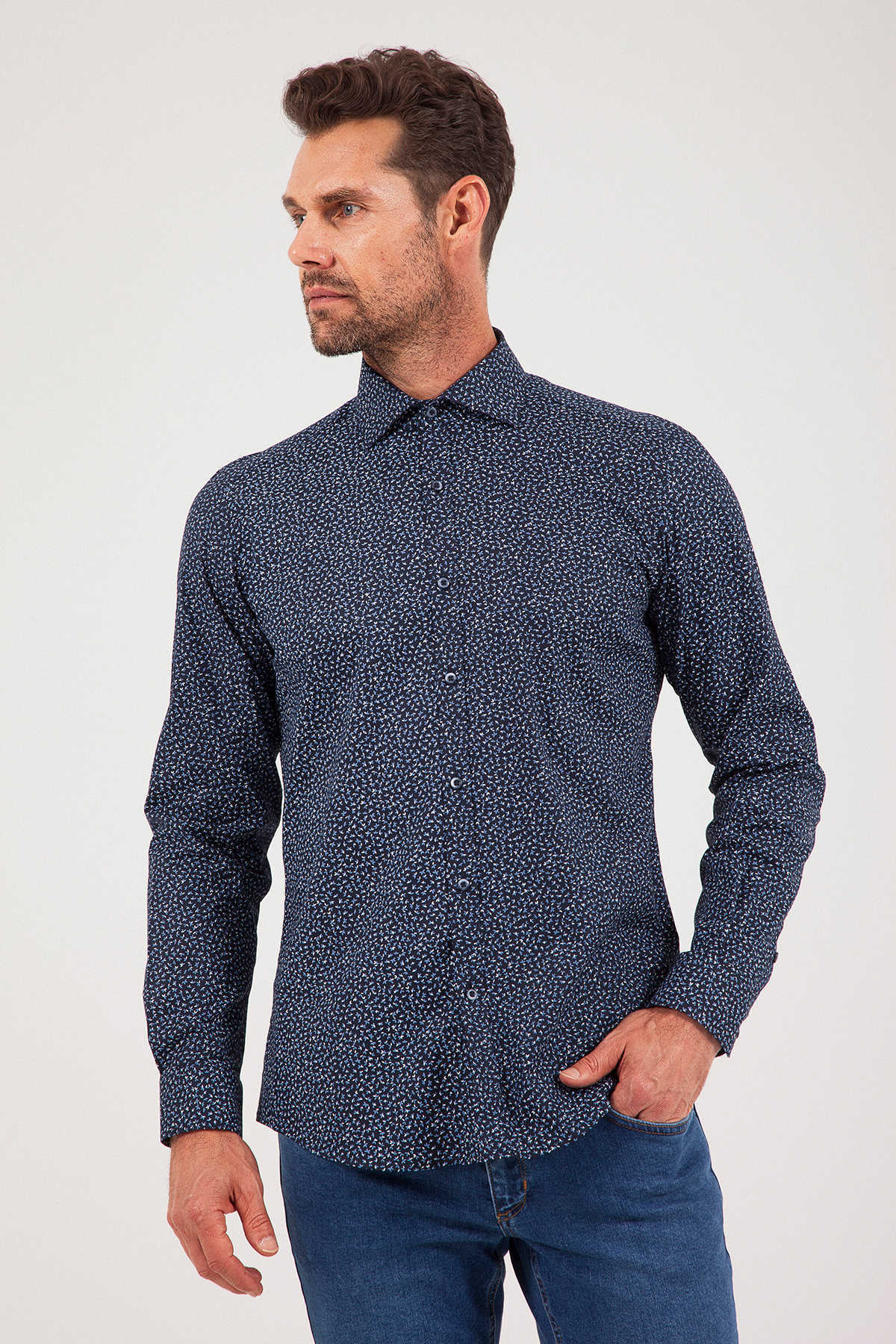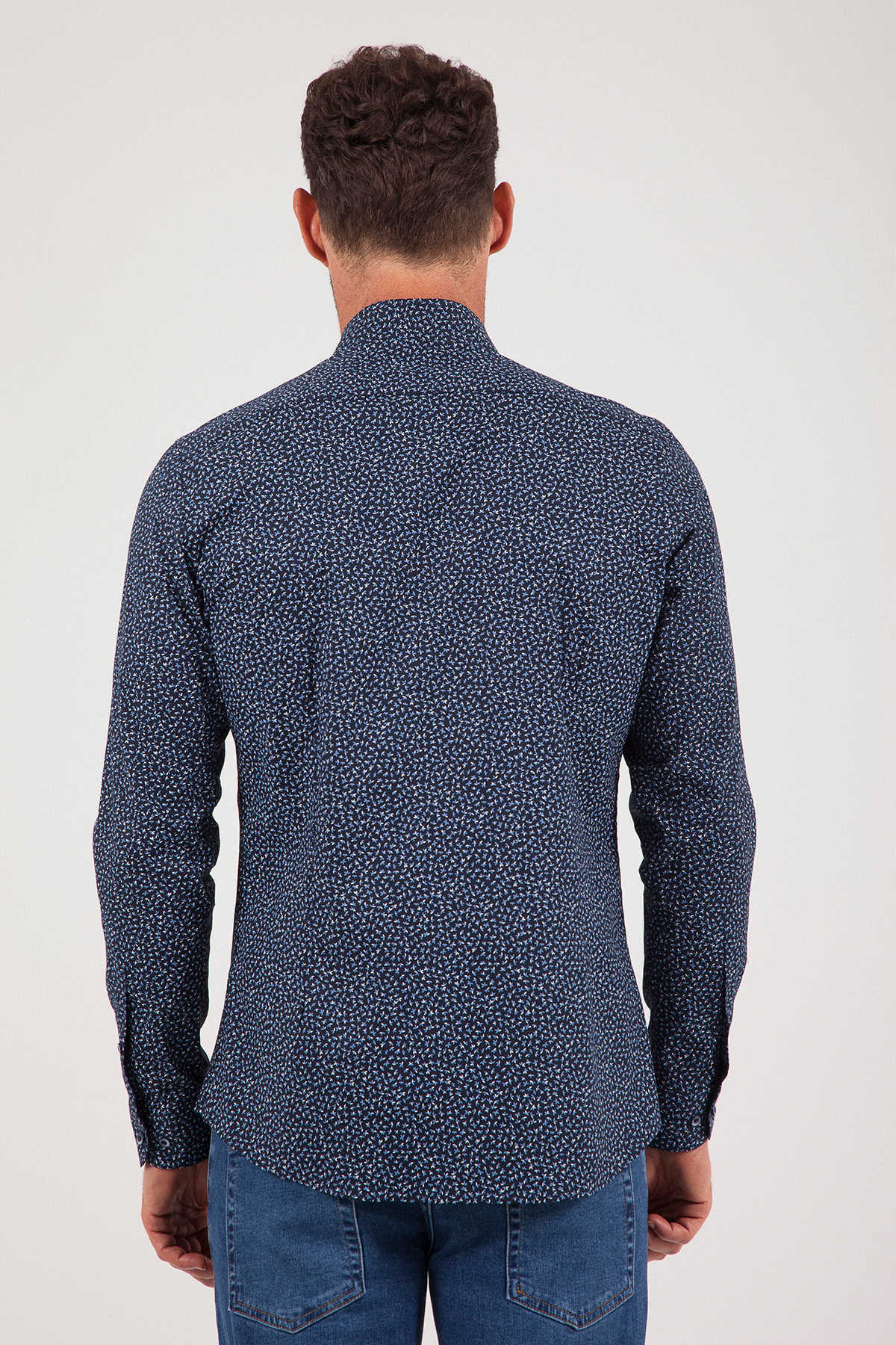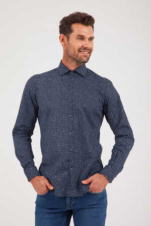Desenli Slim Fit Lacivert Gömlek