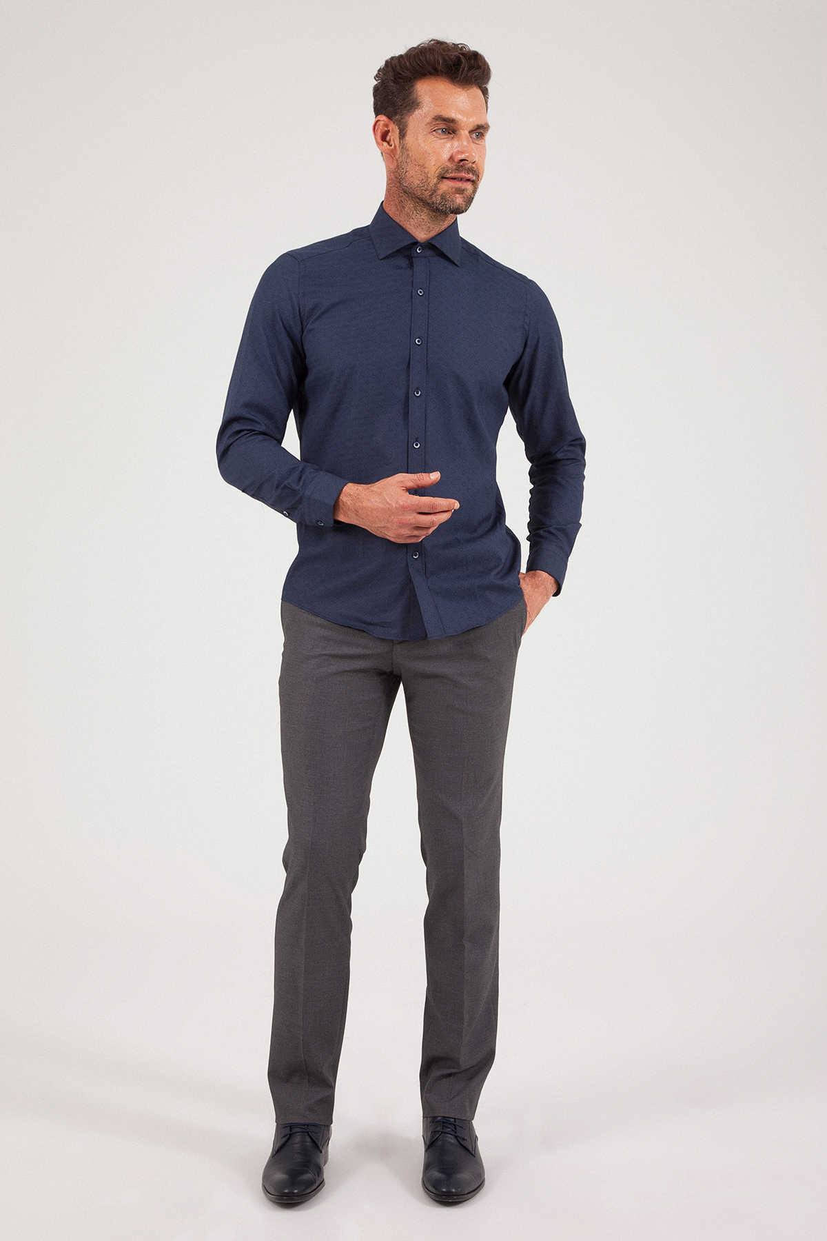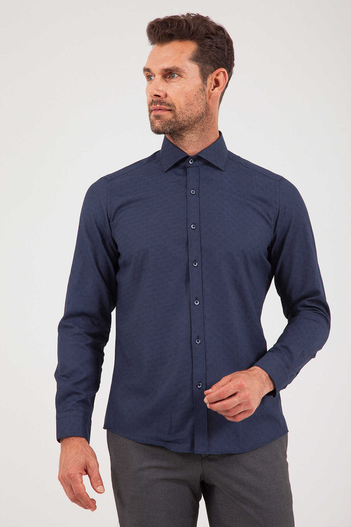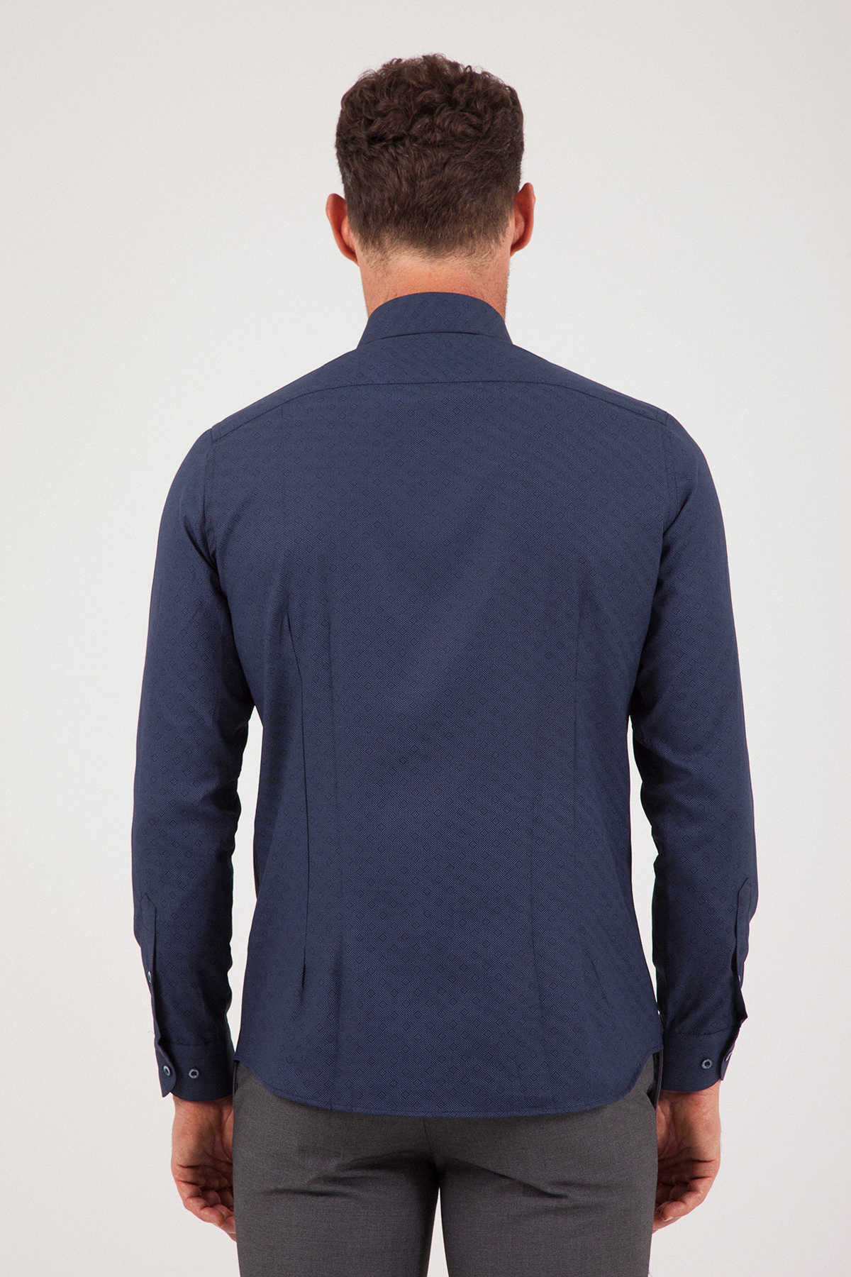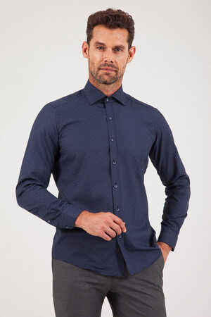 Lacivert Desenli Slim Fit Gömlek