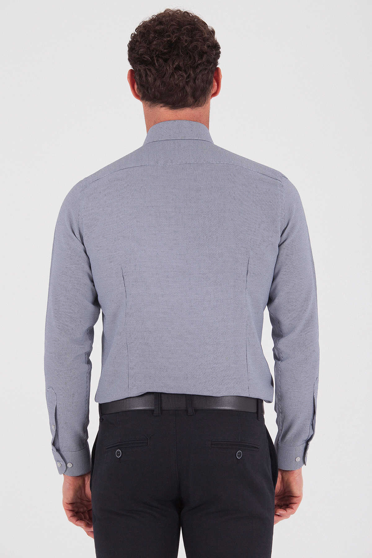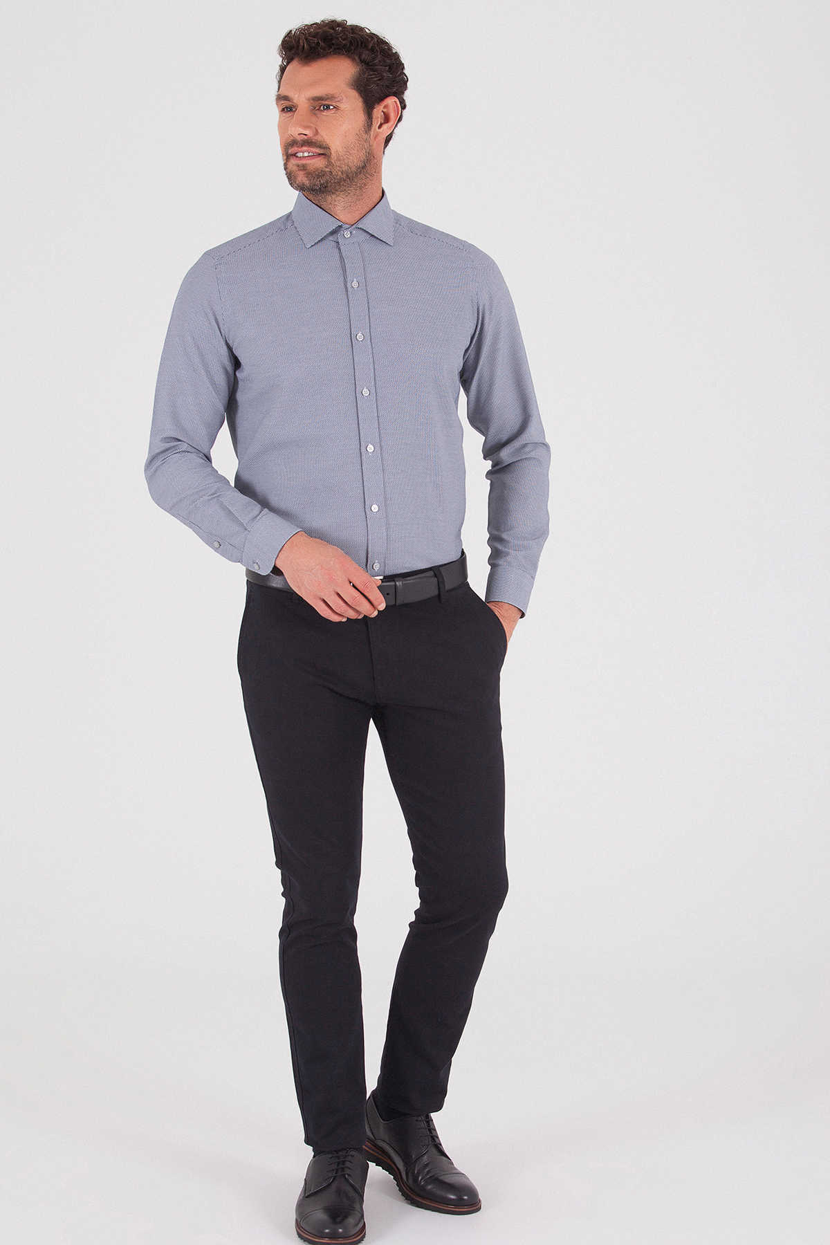 Lacivert Slim Fit Düz Pamuklu Uzun Kol Spor Gömlek