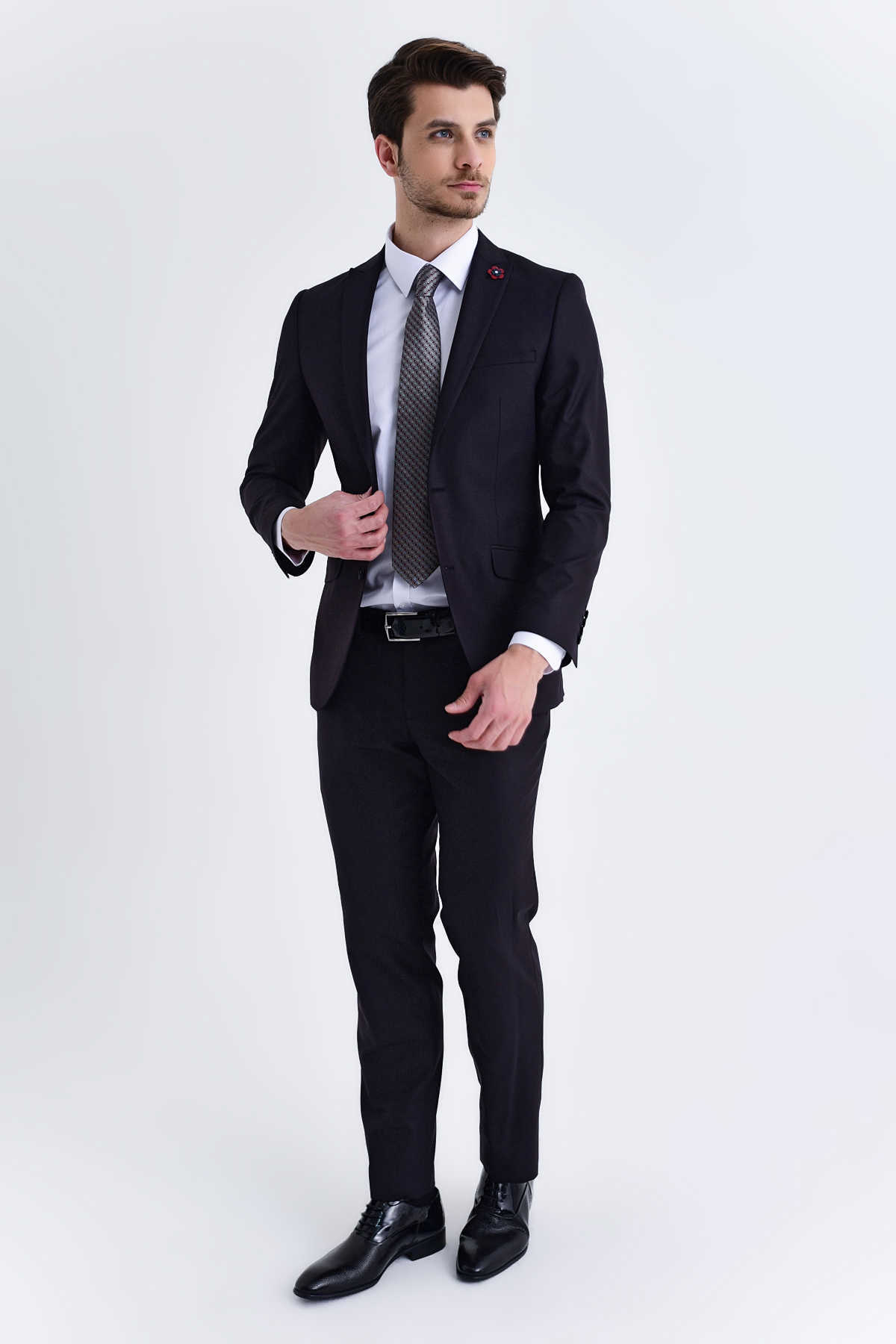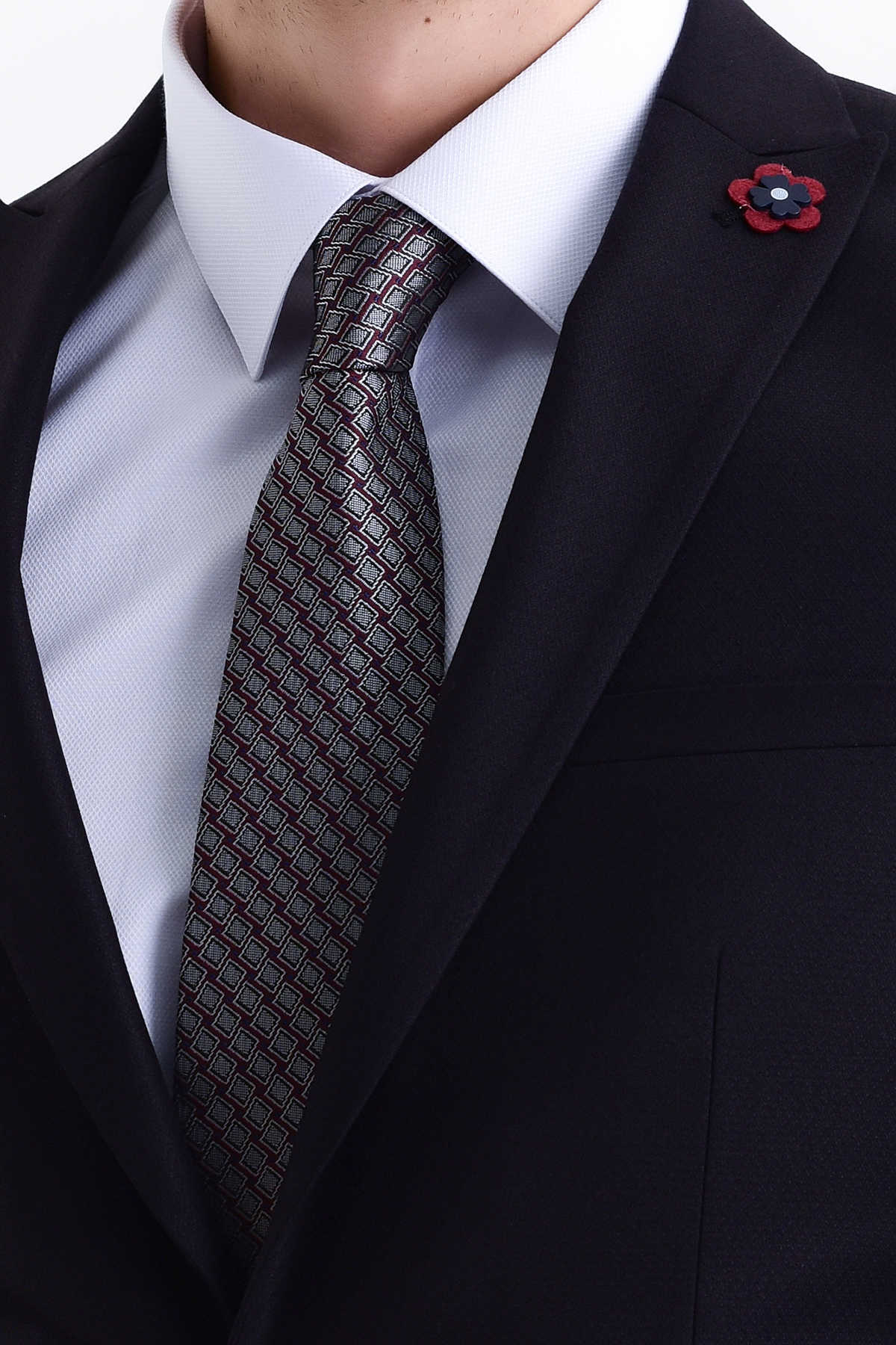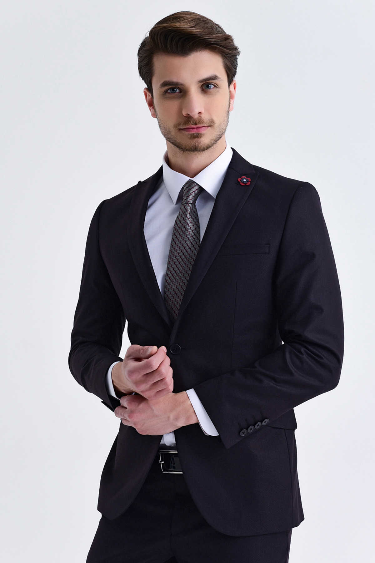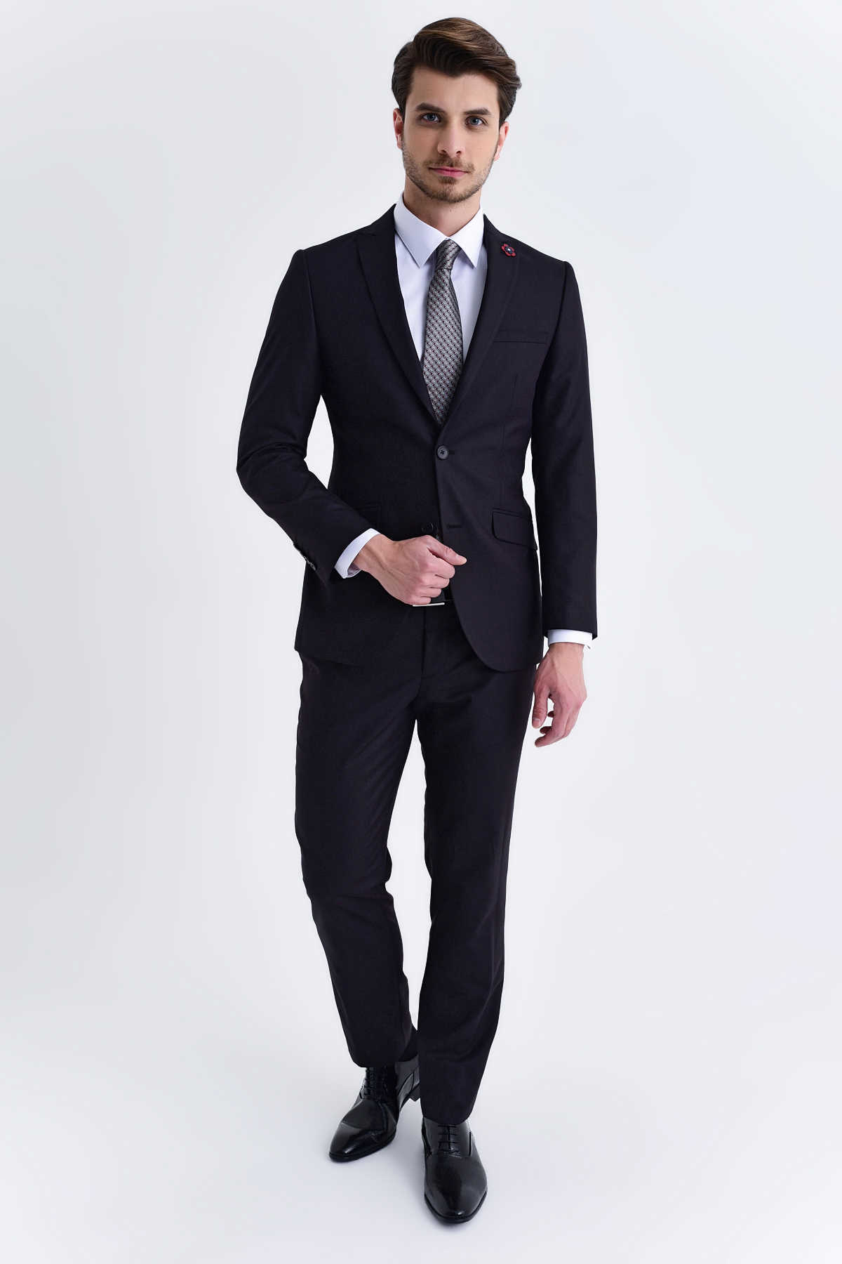 Lacivert Desenli Slim Fit Takım Elbise