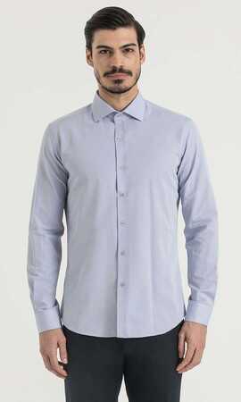 Lila Slim Fit Desenli Pamuklu Uzun Kol Spor Gömlek