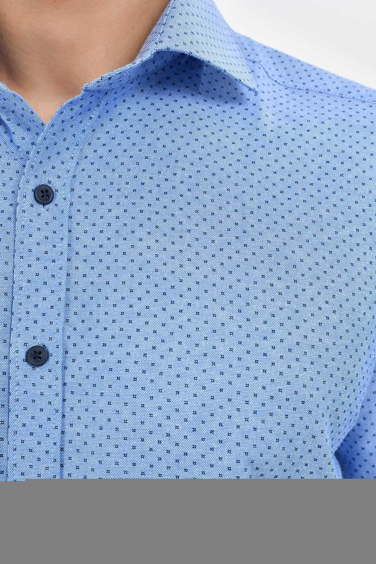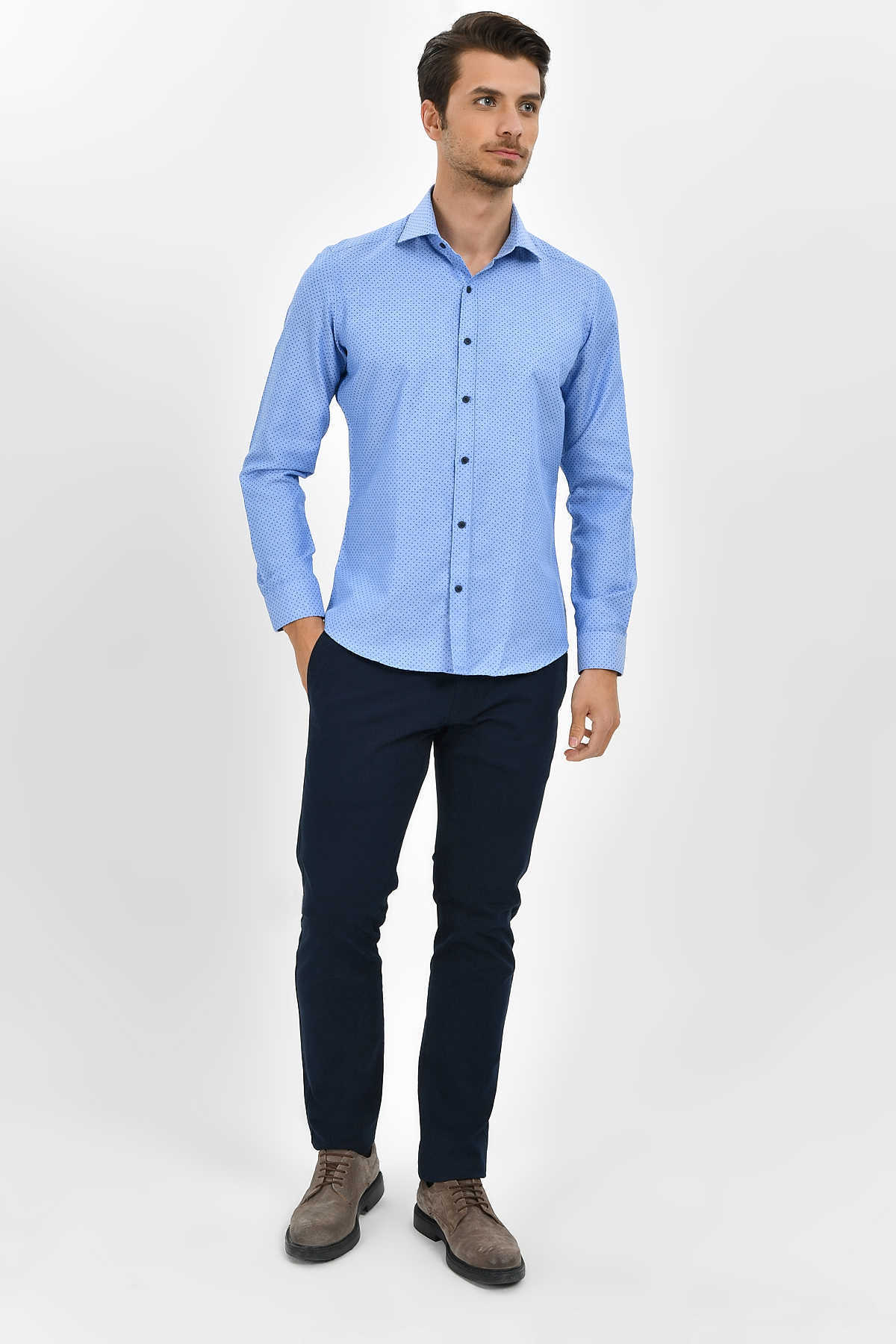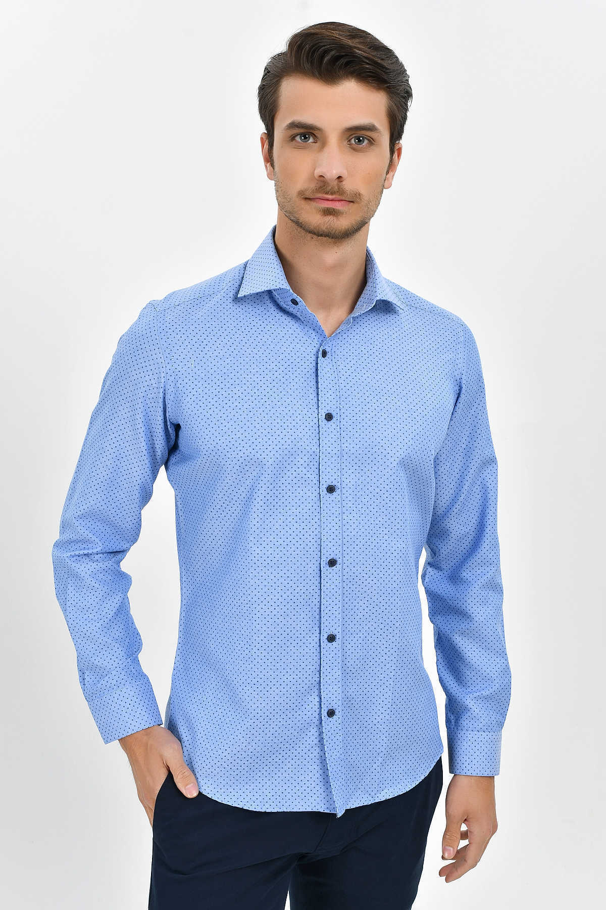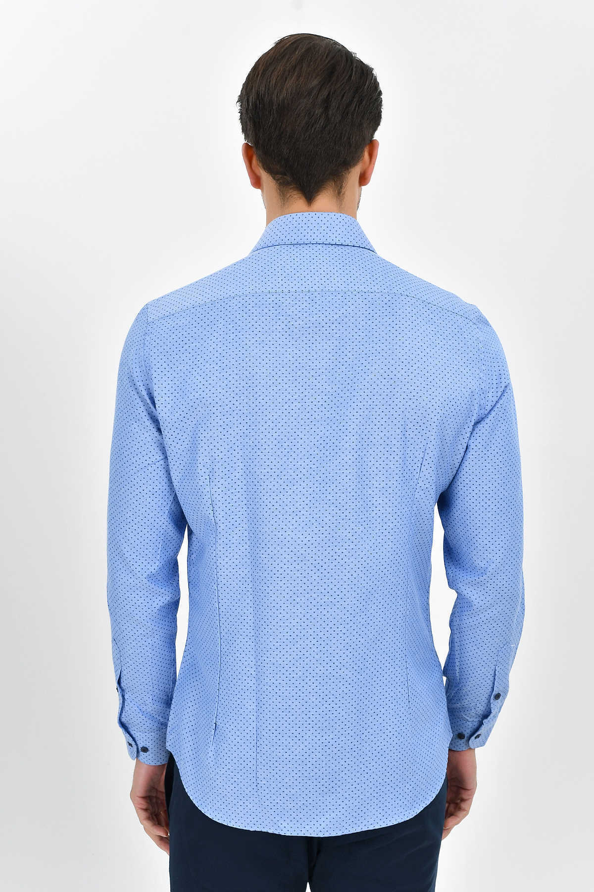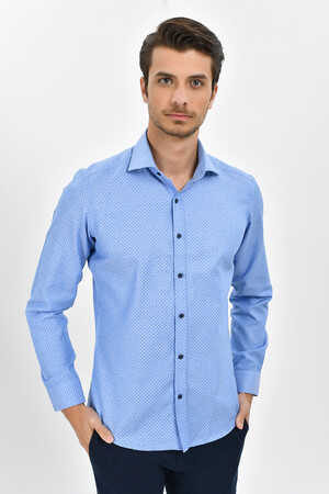 Desenli Slim Fit Mavi Gömlek