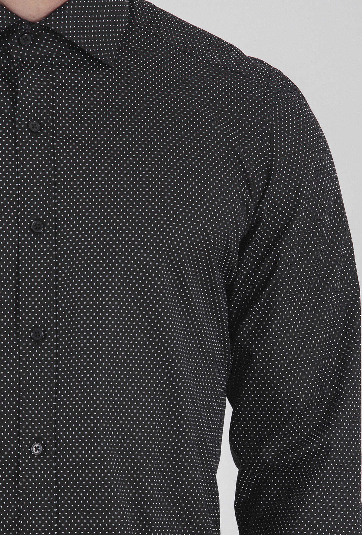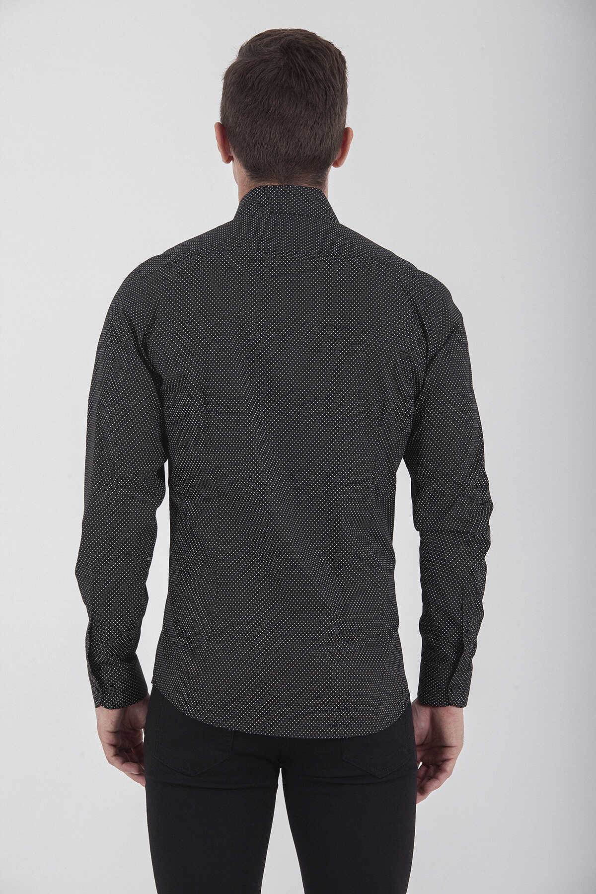 Siyah Slim Fit Baskılı 100% Pamuk Uzun Kol Spor Gömlek