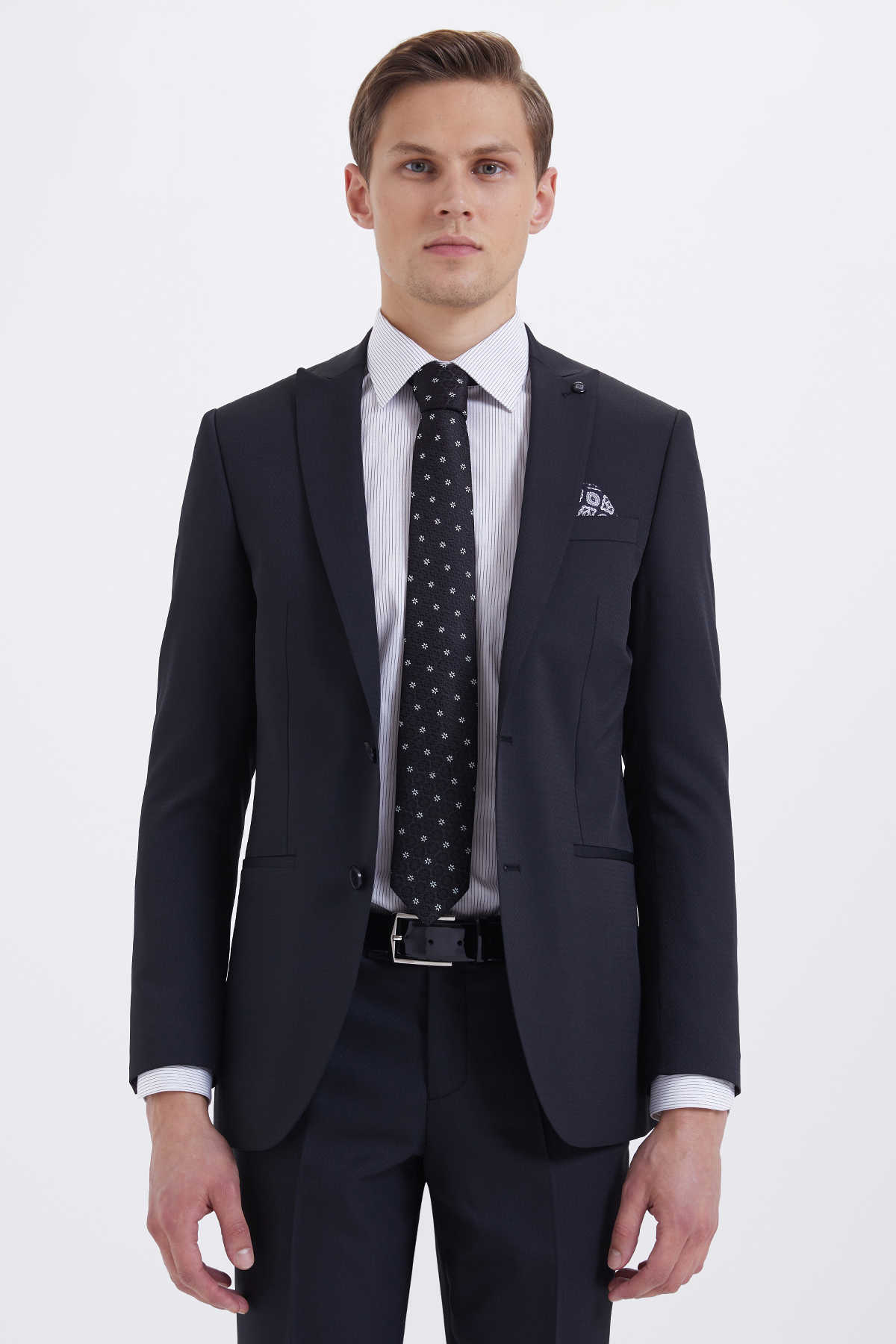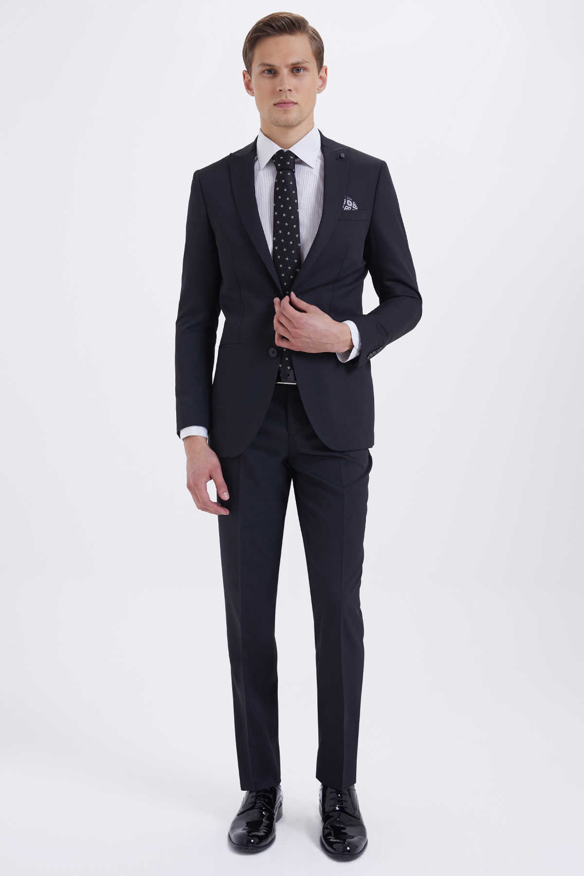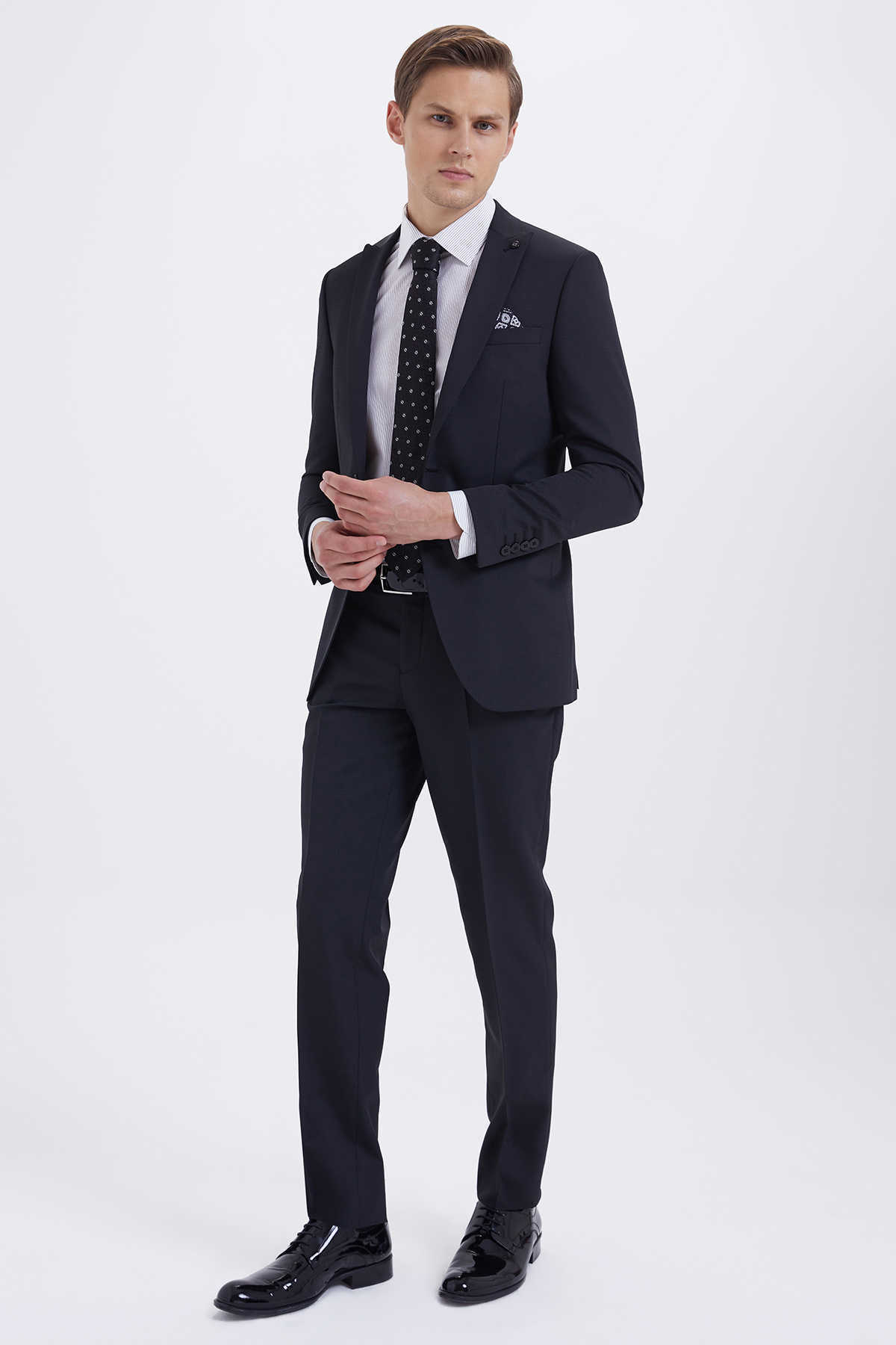 Desenli Slim Fit Siyah Takım Elbise