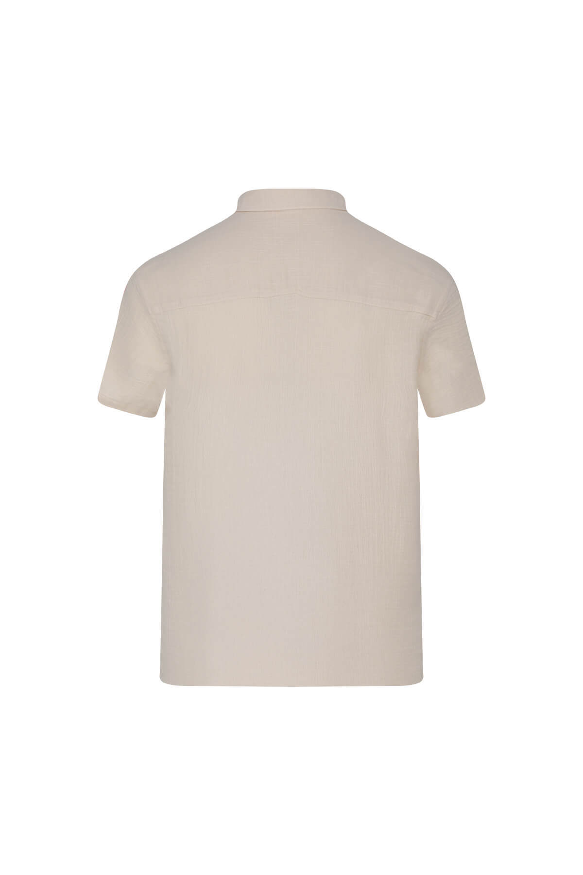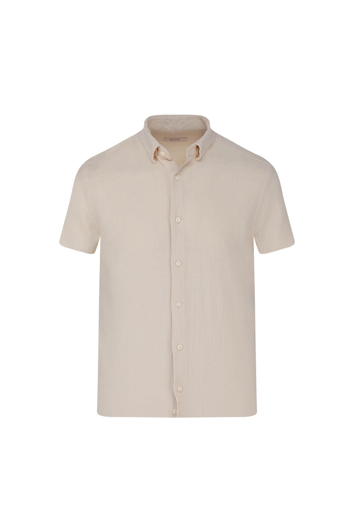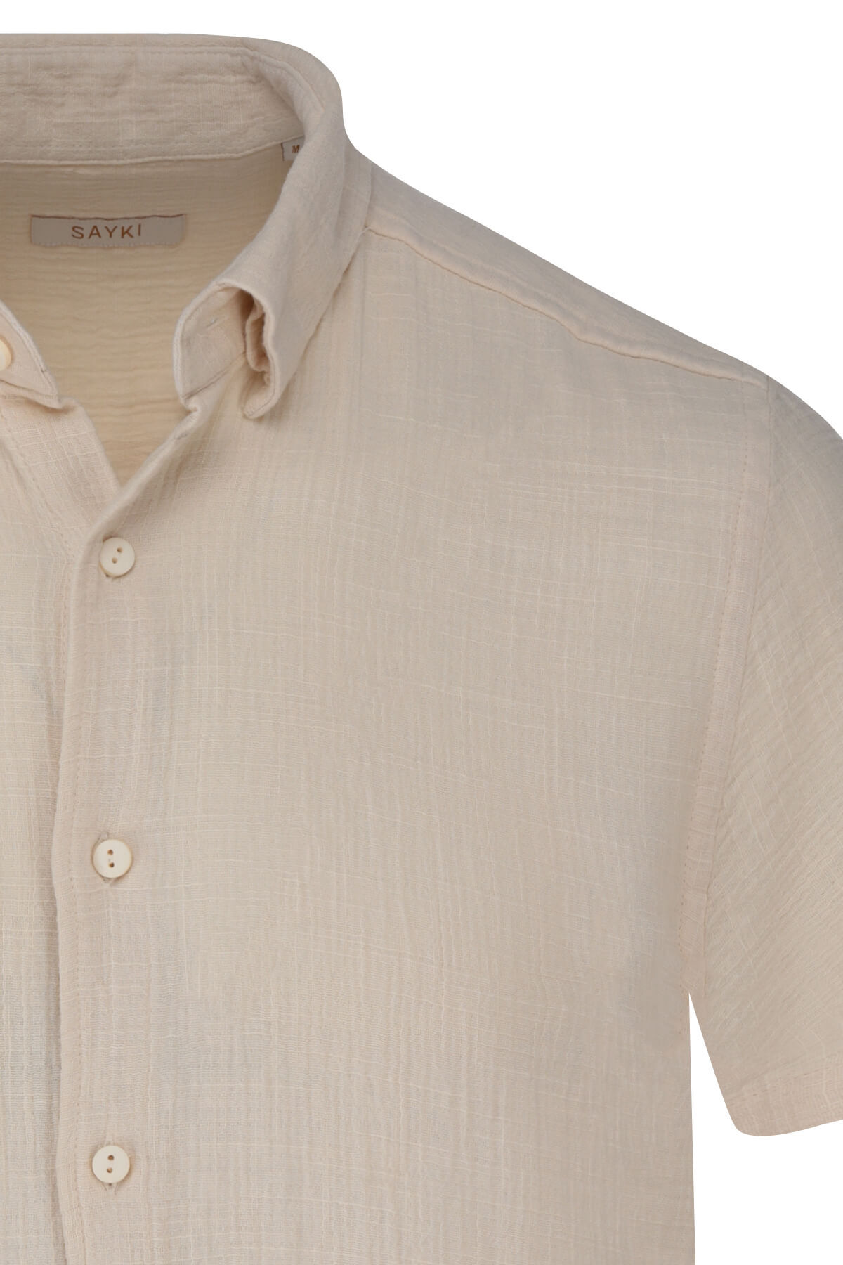 Ekru Düğmeli Yaka Kısa Kollu Gömlek, sıcak havaların vazgeçilmezi olacak zarif bir parçadır. Doğal ekru rengi ve %100 pamuklu kumaşı sayesinde hem şık bir görünüm sunar hem de gün boyu ferahlık sağlar. Sade ve modern tasarımı, bu gömleği her türlü kombin için ideal bir seçenek haline getirir.