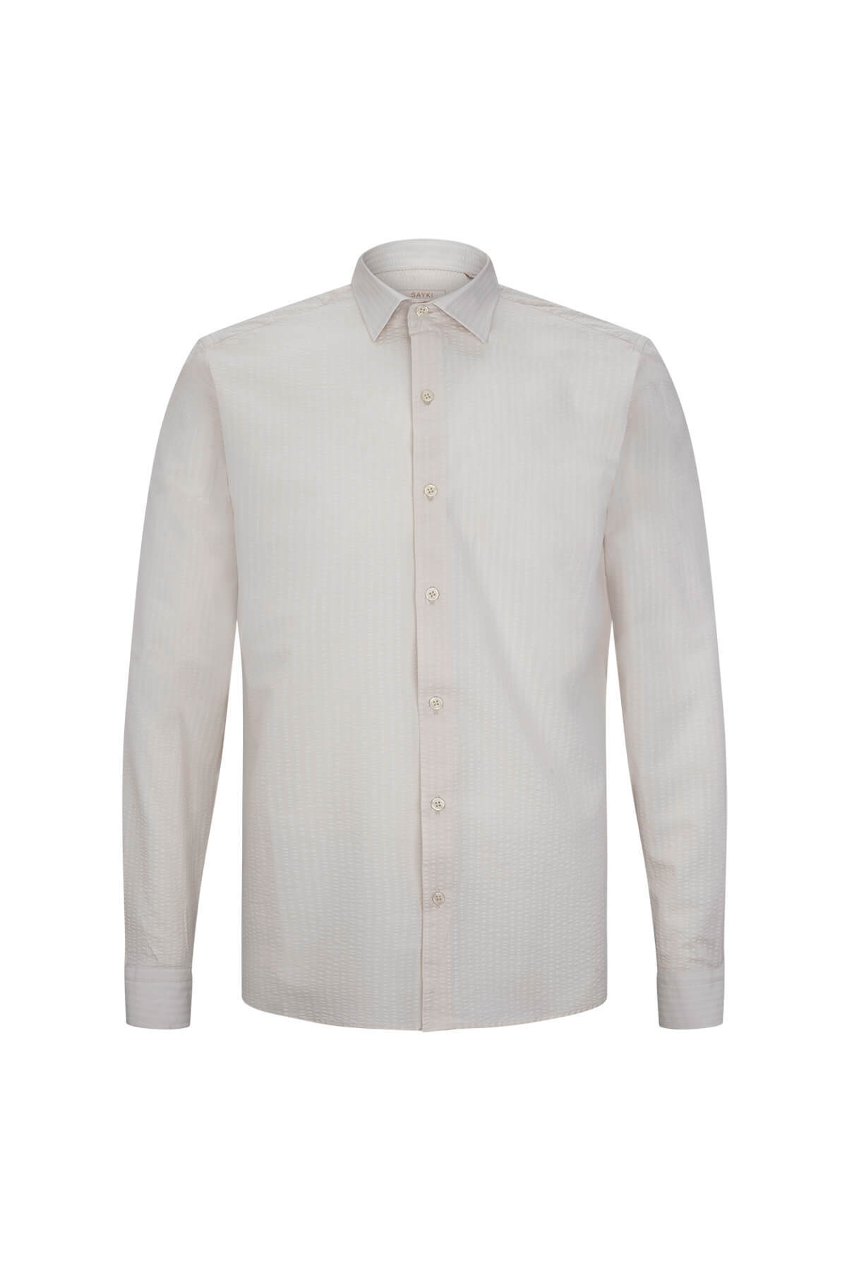 Ekru Comfort Fit 100% Pamuk Slim Yaka Uzun Kollu Spor Gömlek
