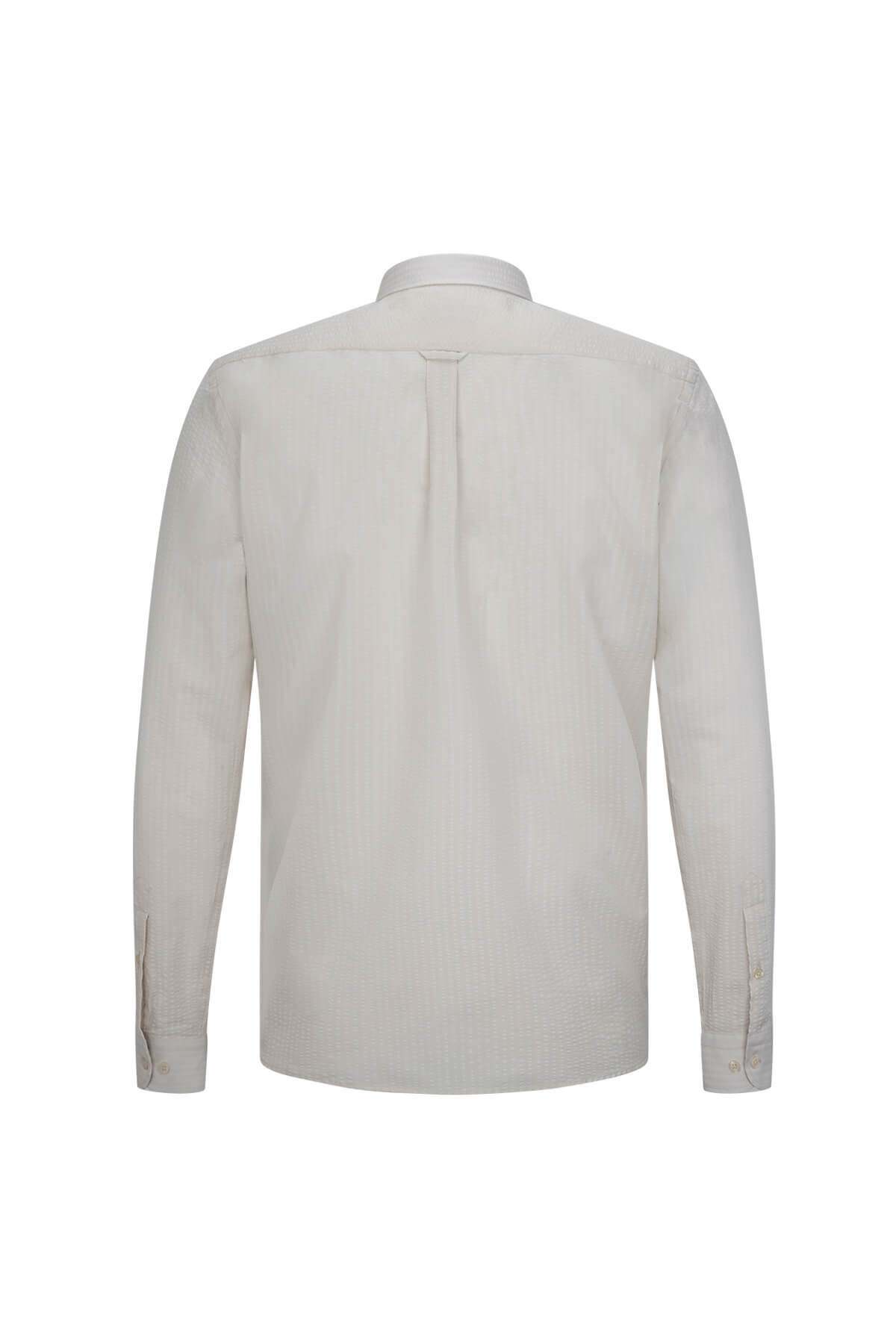 Ekru Comfort Fit 100% Pamuk Slim Yaka Uzun Kollu Spor Gömlek - 2
