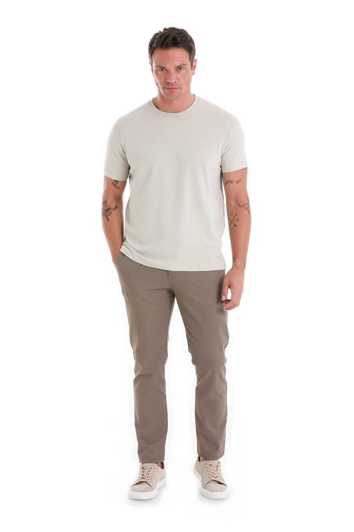 Ekru Regular Fit Bisiklet Yaka Pamuklu Tişört