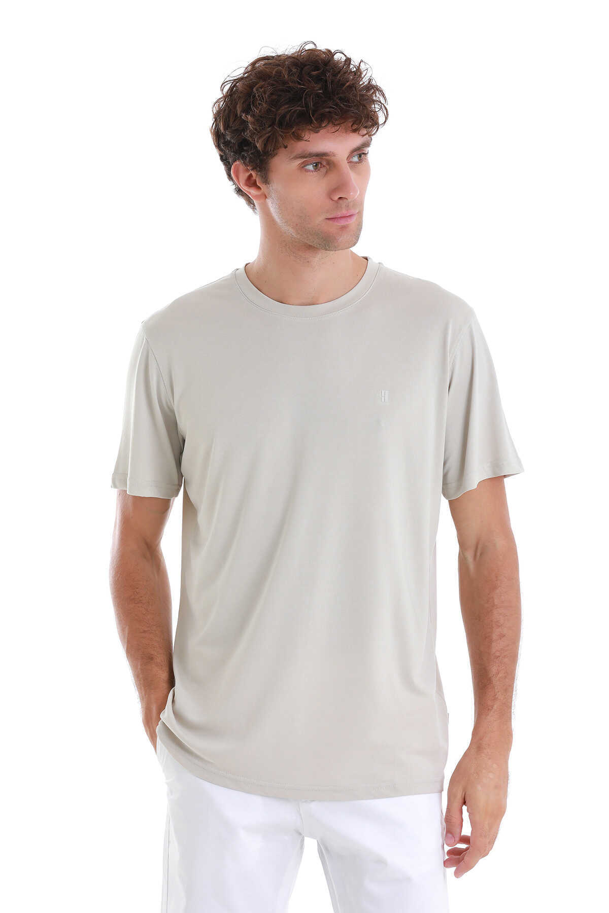 Ekru Regular Fit Bisiklet Yaka Tişört