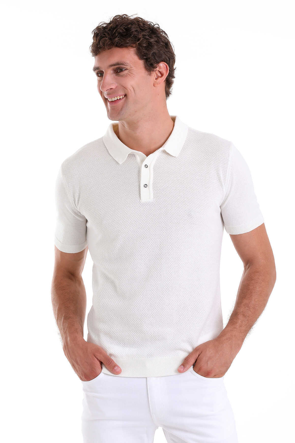 Ekru Regular Fit jakarlı Pamuklu Polo Yaka Tişört